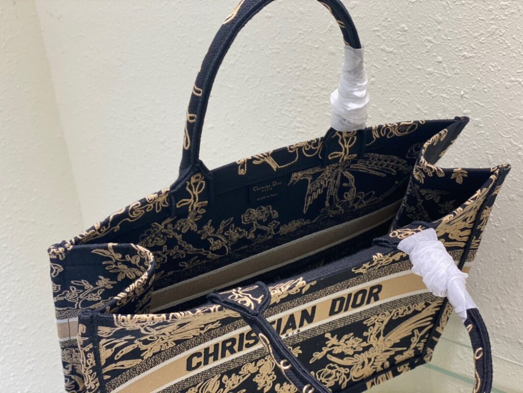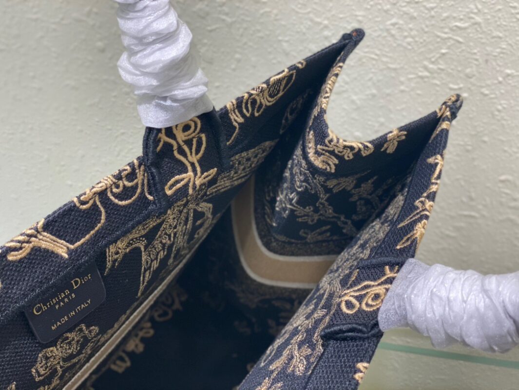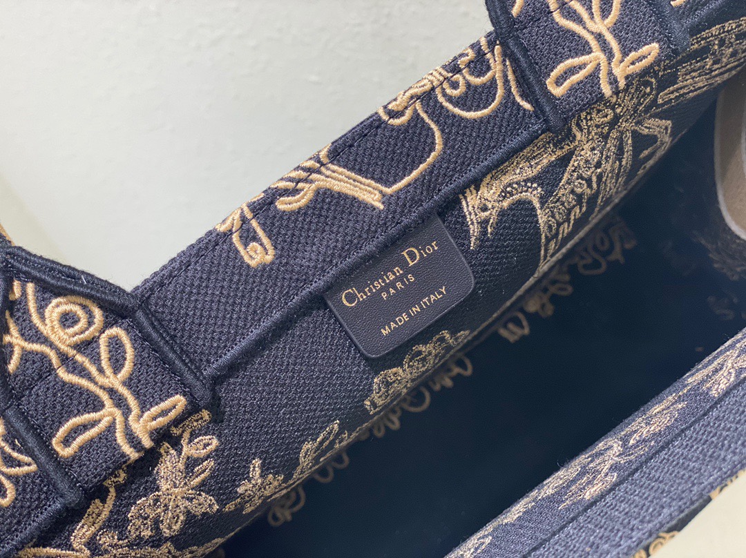 Designed by Dior Womenswear Creative Director Maria Grazia Chiuri, the Book Tote bag is a staple of Dior’s aesthetic. Crafted in black fabric and embroidered with a stitch-effect Dior Jardin d’Hiver pattern throughout, it is a poetic interpretation of Mr. Dior’s tapestries, which can hold all kinds of everyday items. The large model, with the “CHRISTIAN DIOR PARIS” signature on the front, reflects Dior’s unique craftsmanship, and can be carried by hand or on the shoulder. Dimensions: 41x 35 x 18.5 cm “CHRISTIAN DIOR PARIS” logo on the front Dust bag included Made in Italy
