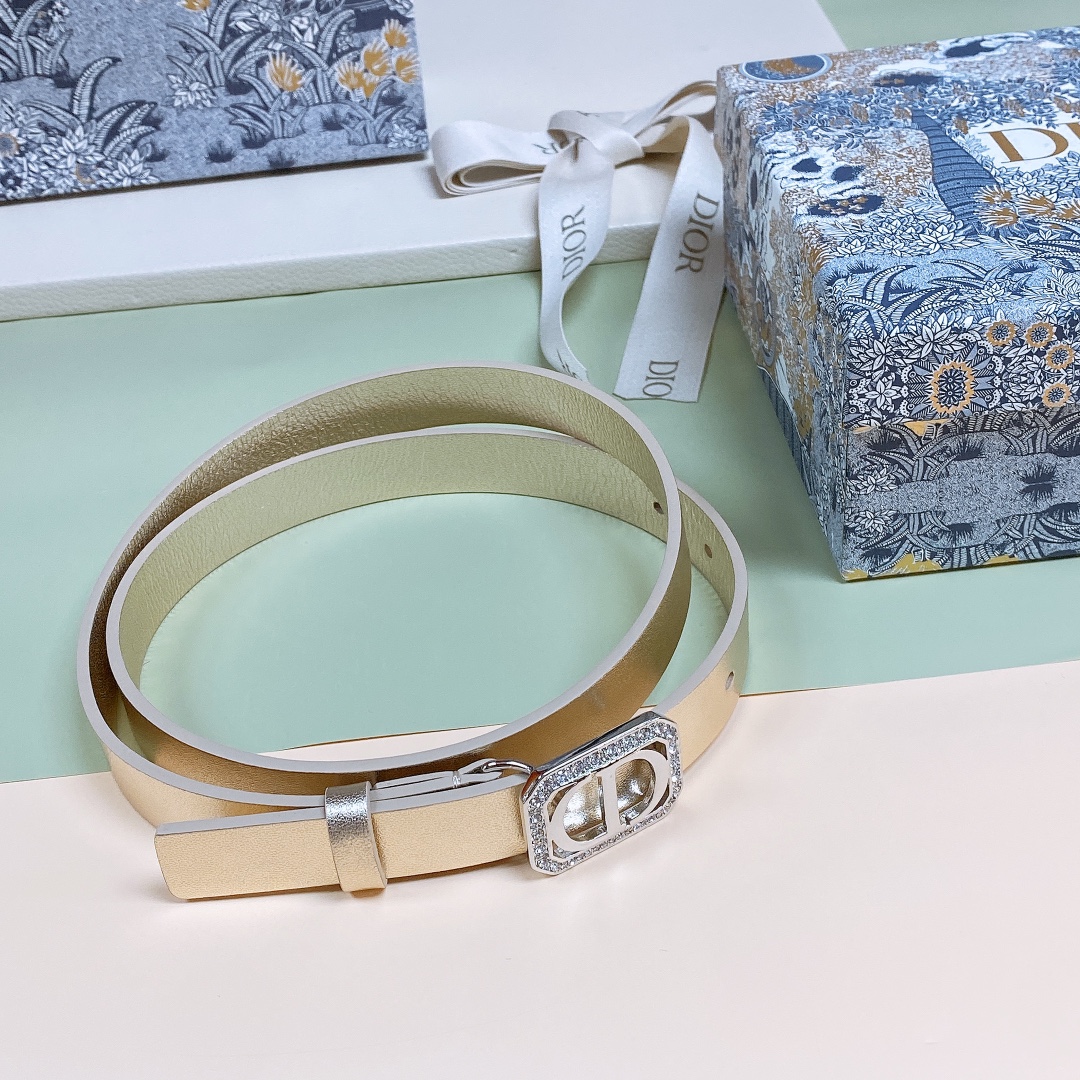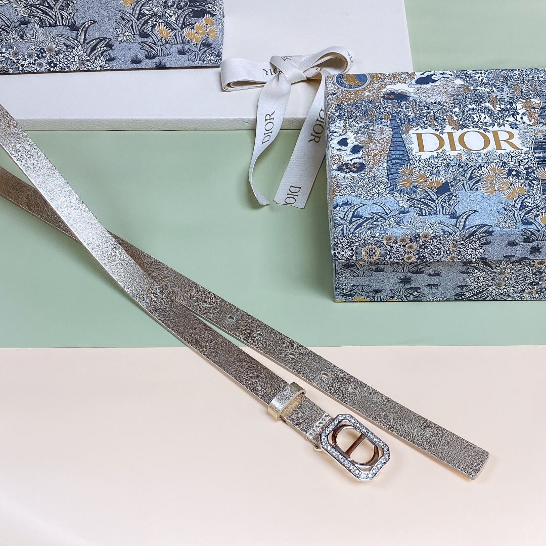 Dior CD Square Buckle Sylver Tone Crystal 20mm Belt