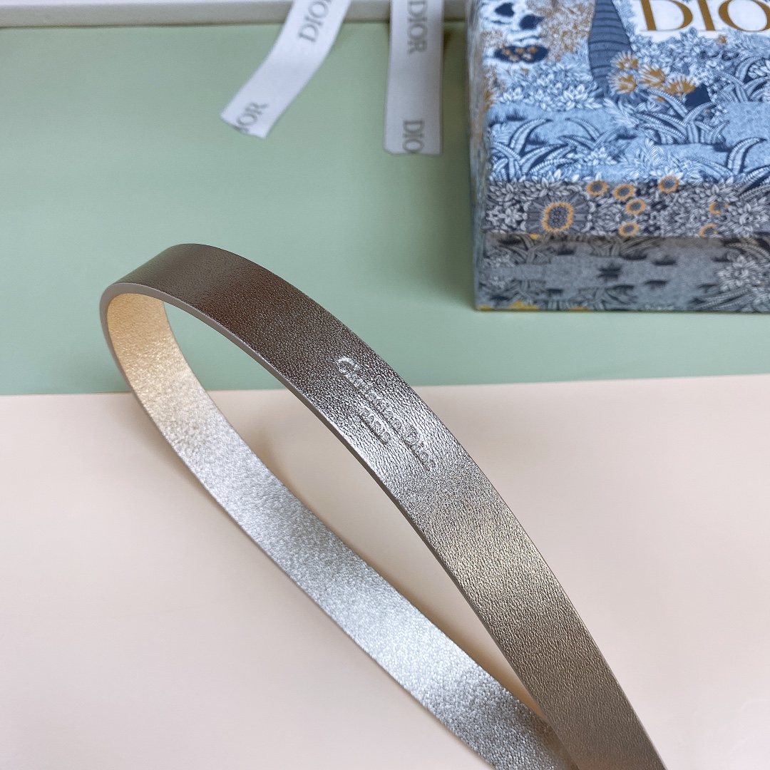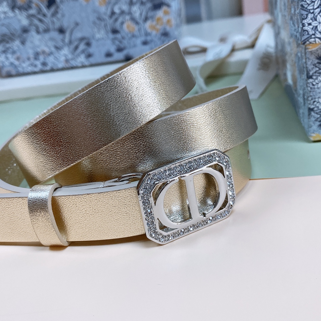 Dior 22 Silver tone crystal “CD” square buckle belt. “Christian Dior Paris” signature on the inside, metal details in lustrous gold finish. Calfskin double sided gold. Excellent hand feeling. Width: 2cm. 26087876