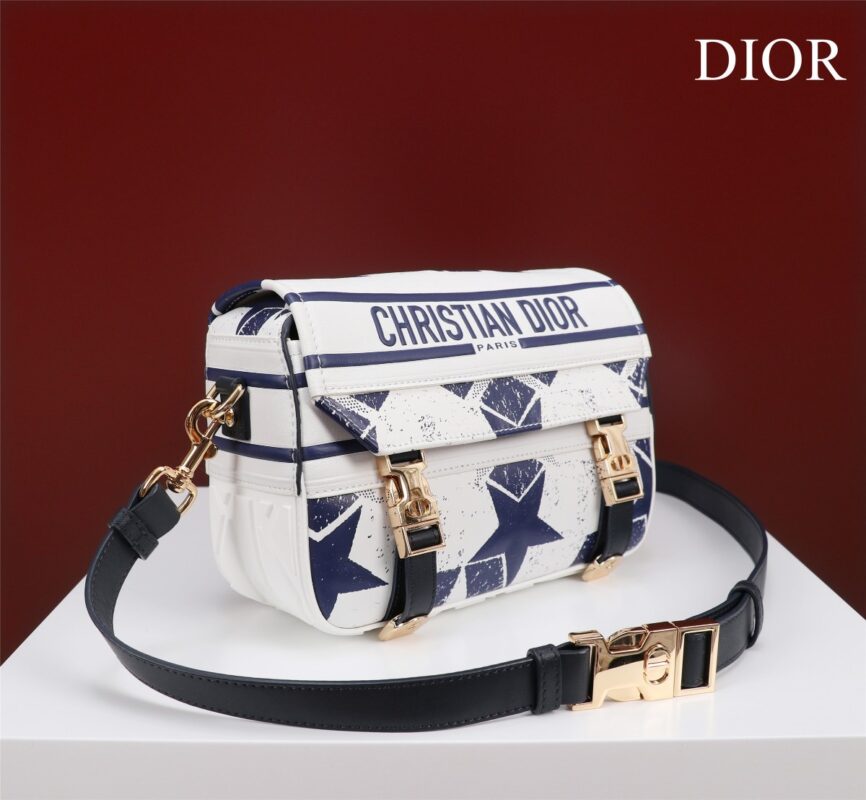 Based on the classic messenger bag, the Diorcamp bag by Maria Grazia Chiuri incorporates Dior’s signature elements for a casual, chic look. Featuring a blue Oblique print throughout, this small bag is enhanced by a ‘CHRISTIAN DIOR’ signature flap and a sporty ‘CD’ buckle. The compact style features an adjustable, detachable shoulder strap that can be worn over the shoulder or cross-body, making it the ideal companion for urban looks. Size 23cm “CHRISTIAN DIOR” logo on the front “CD” buckle Detachable and adjustable shoulder strap Dust bag included Made in Italy