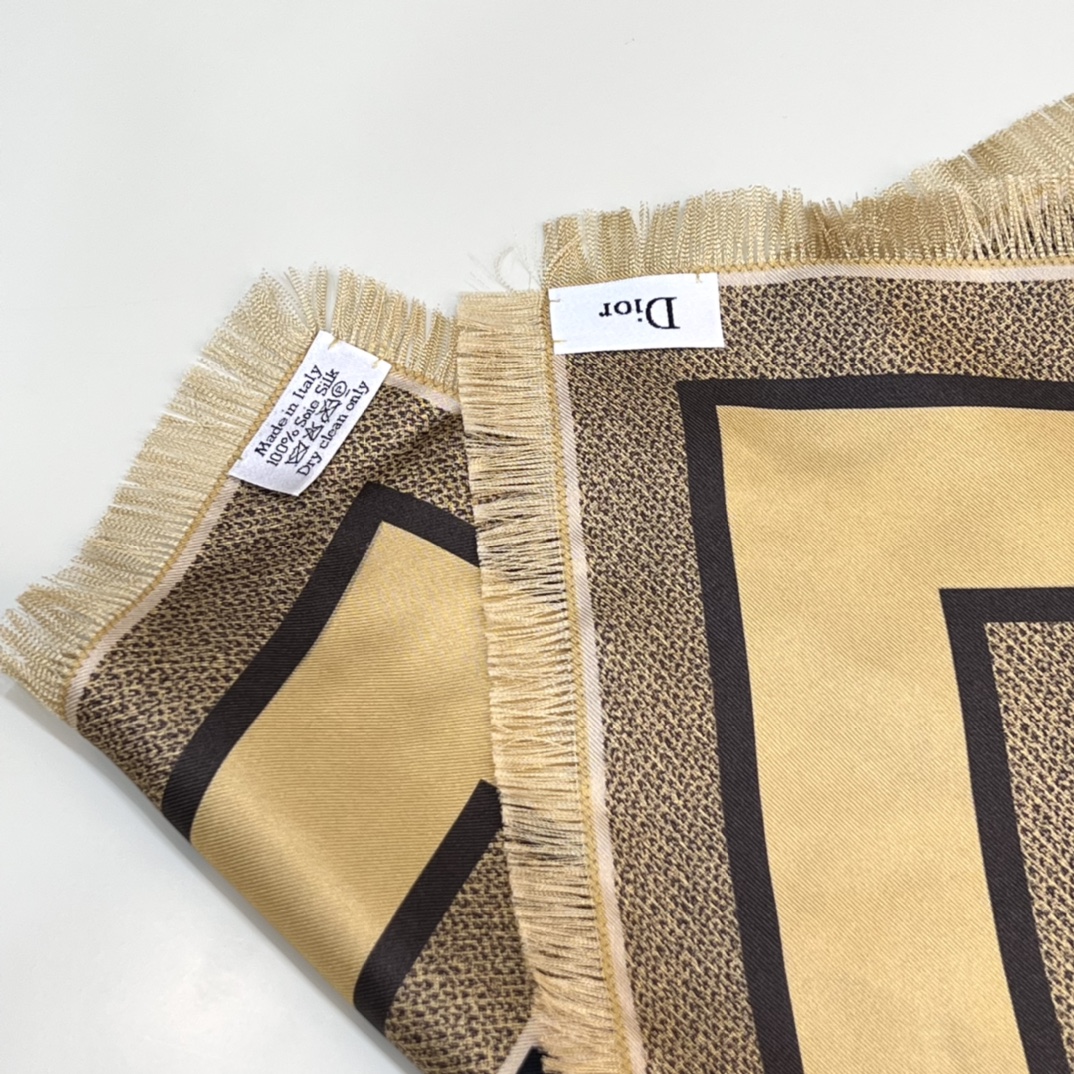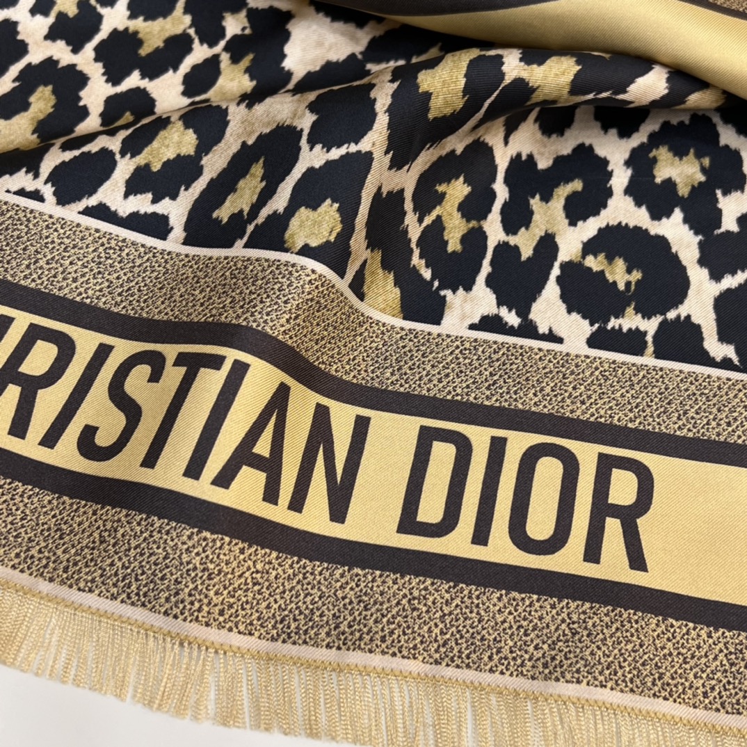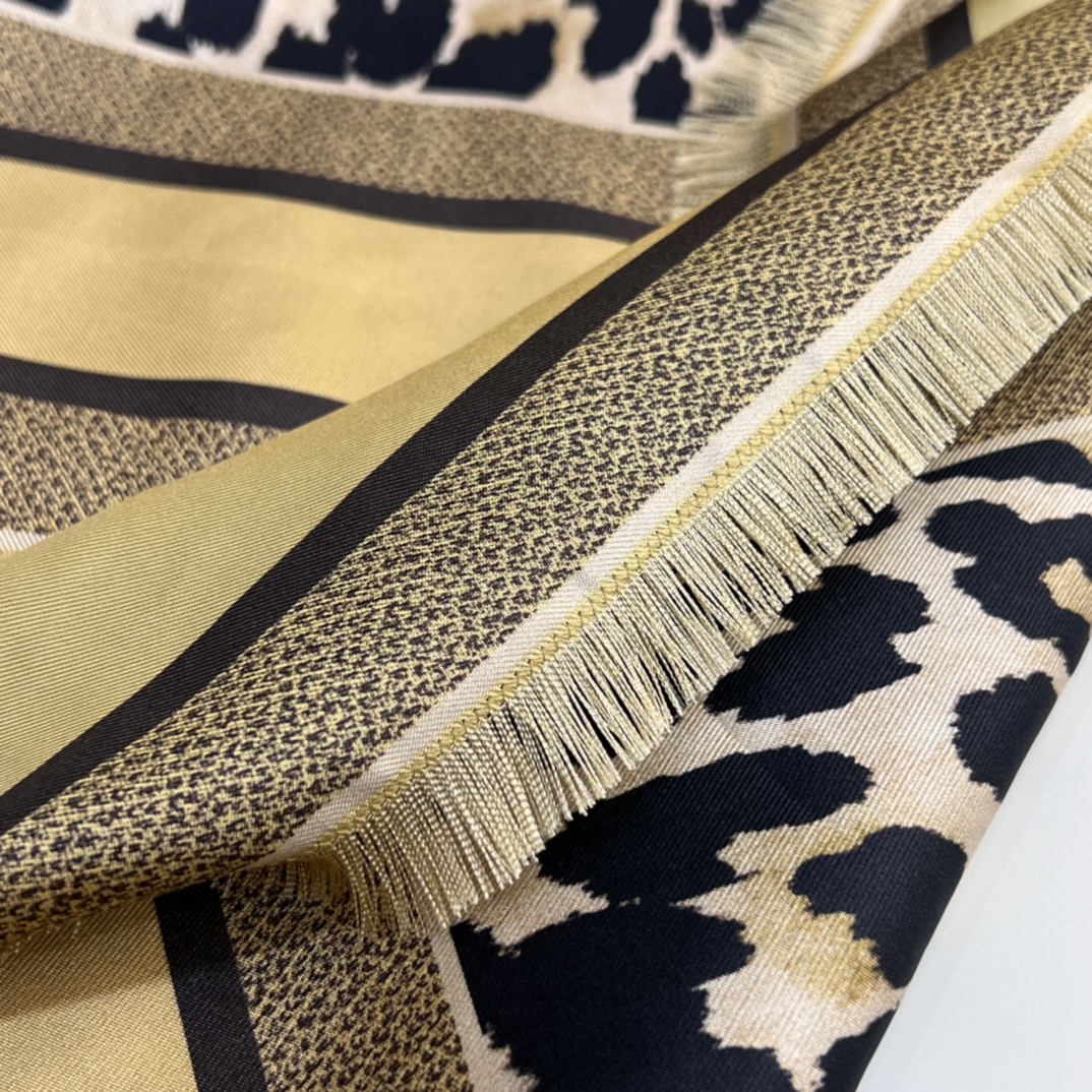 Dior classic mink pattern, 90*90cm, 100% silk, fringed trim