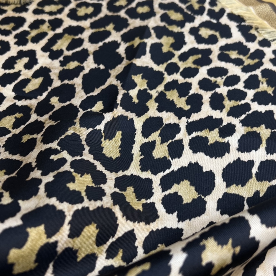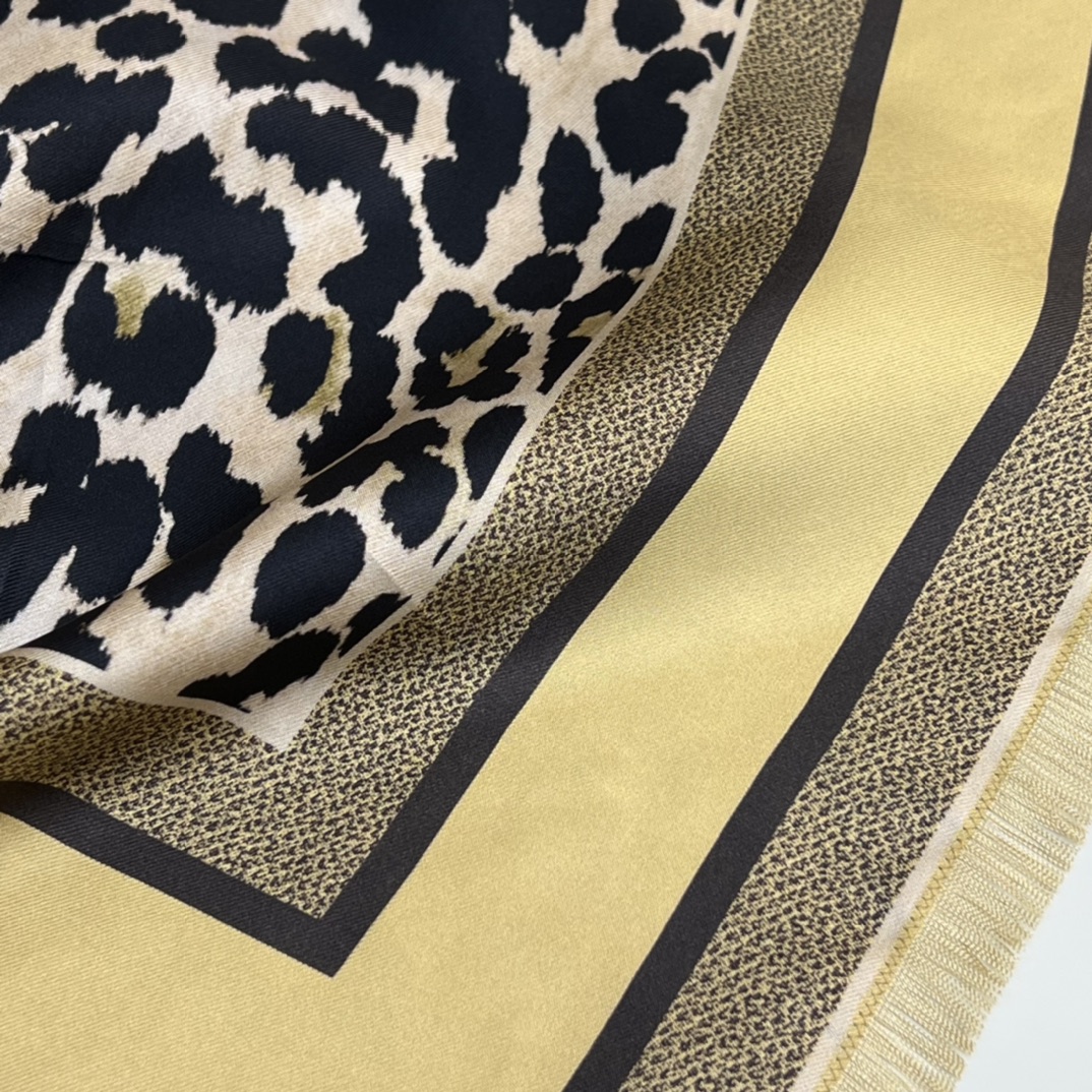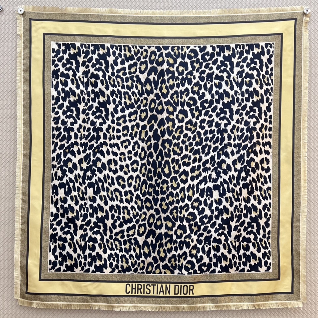 Dior classic mink pattern, 90*90cm, 100% silk, fringed trim