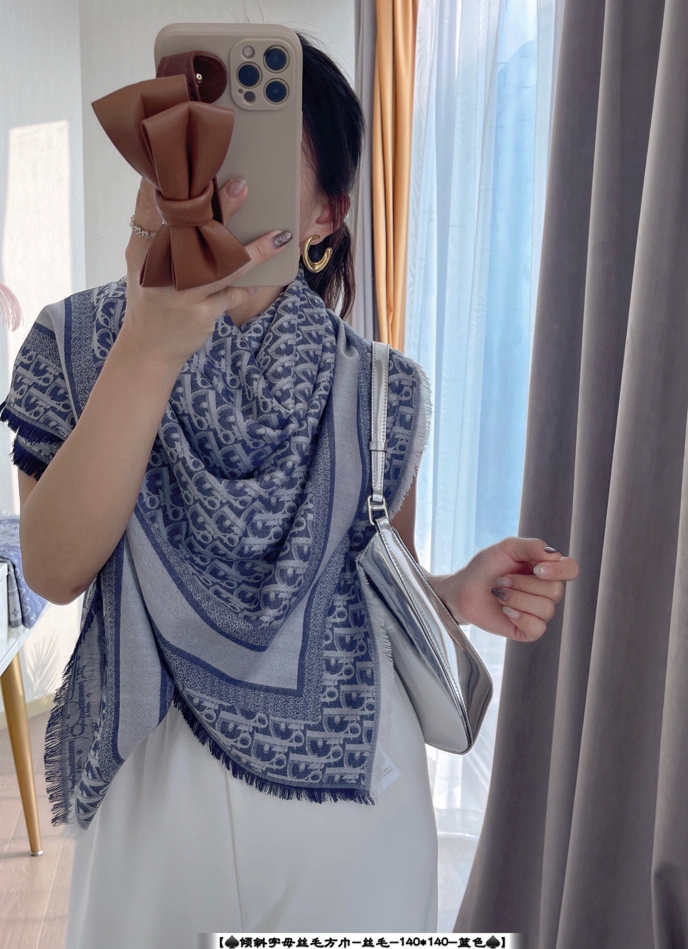 Dior Classic Old Flower Square. 140*140cm. 56% Wool 31% Mulberry Silk 13% Cotton