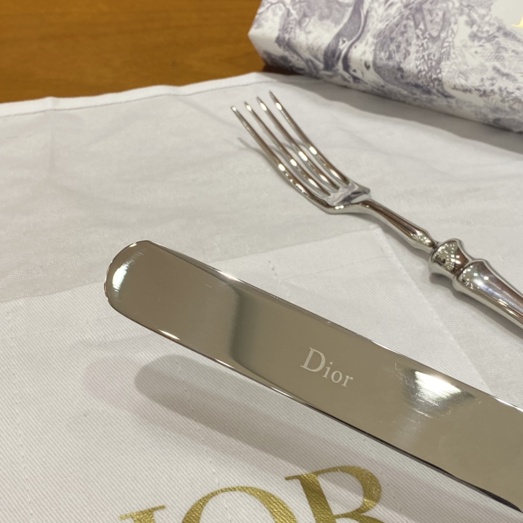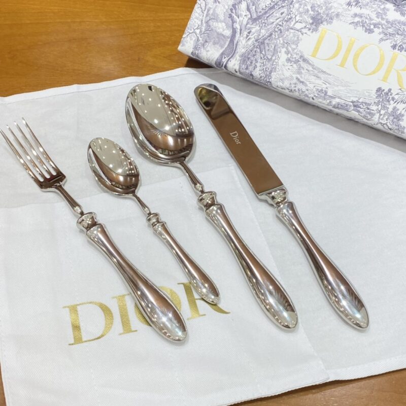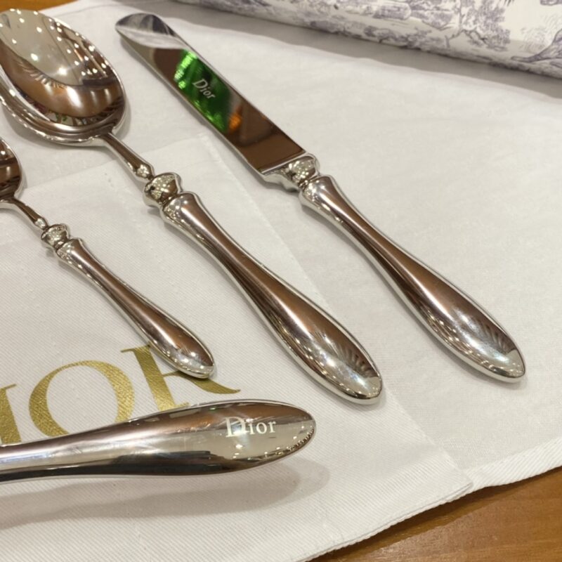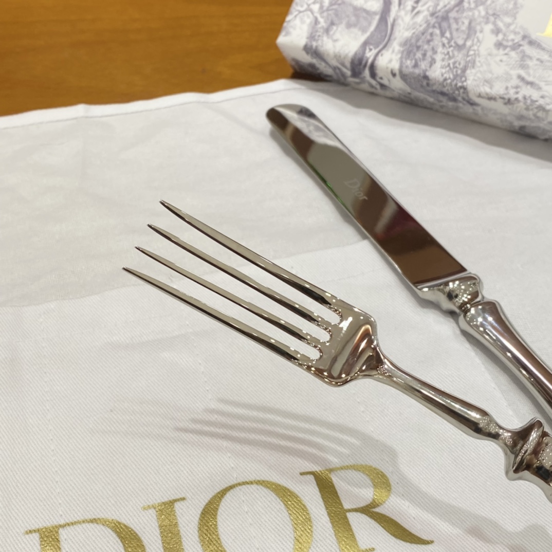 Dior imported 304 stainless steel knife and fork silver With a full set of packaging Main cutlery size: 22cm Main fork size: 20cm Main spoon size: 21cm Small tea size: 14.5cm