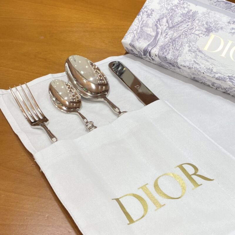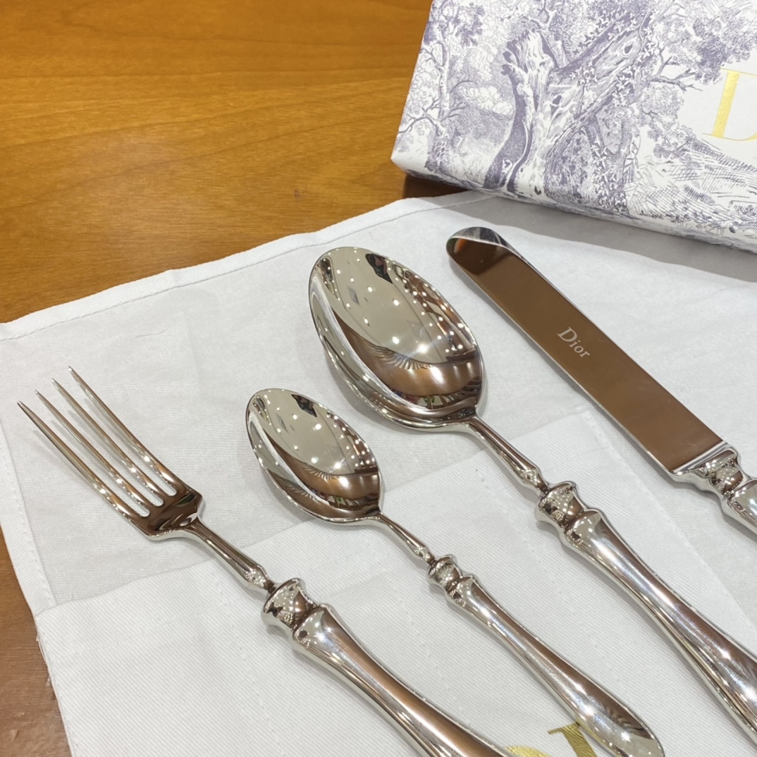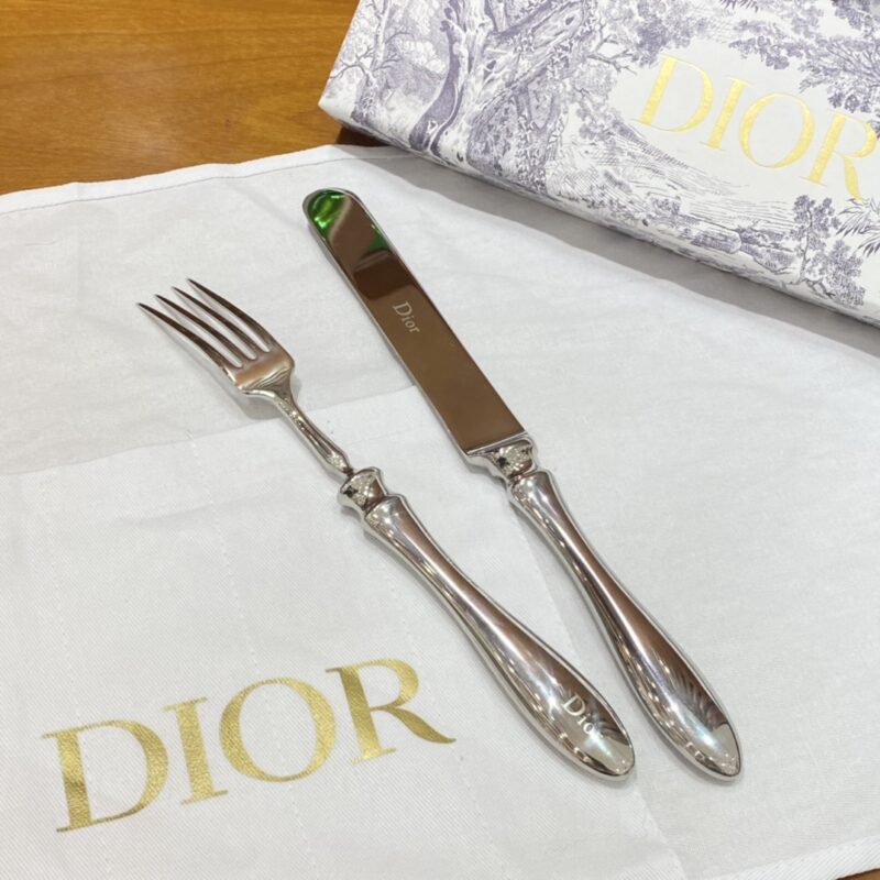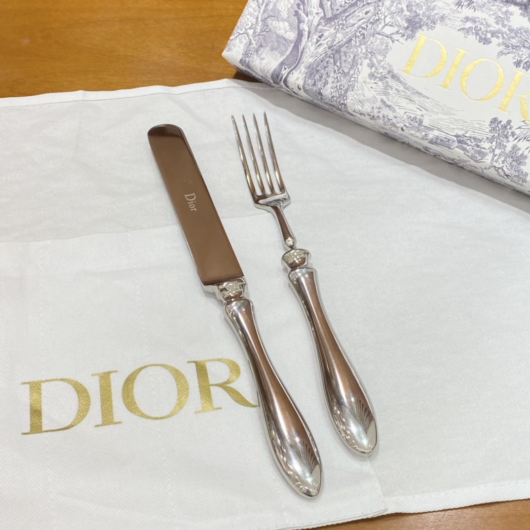 Dior imported 304 stainless steel knife and fork silver With a full set of packaging Main cutlery size: 22cm Main fork size: 20cm Main spoon size: 21cm Small tea size: 14.5cm