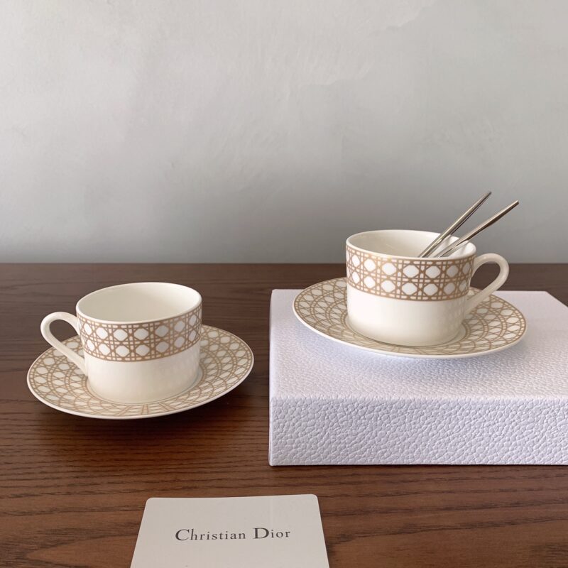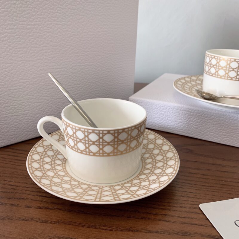 Two cups and two saucers of black tea/coffee set series. 18K Matte Gold. Made of top-grade bone china embryos exported to Europe and the United States, mineral pigments from major international companies (same origin as the materials used by all major brands), beautiful with noble temperament, with gift box packaging.