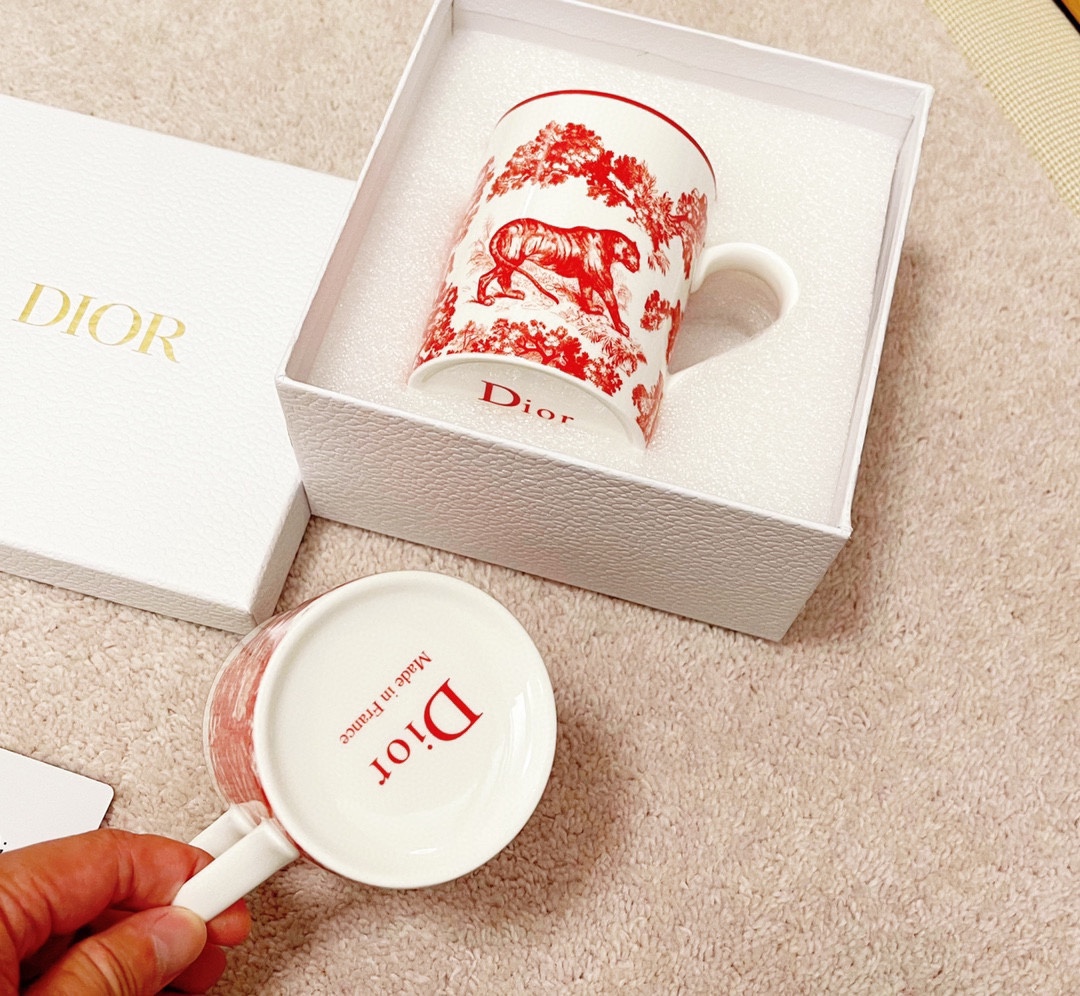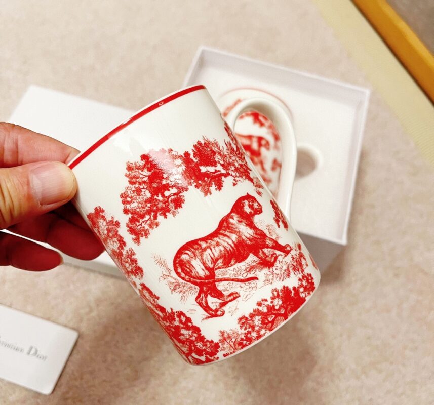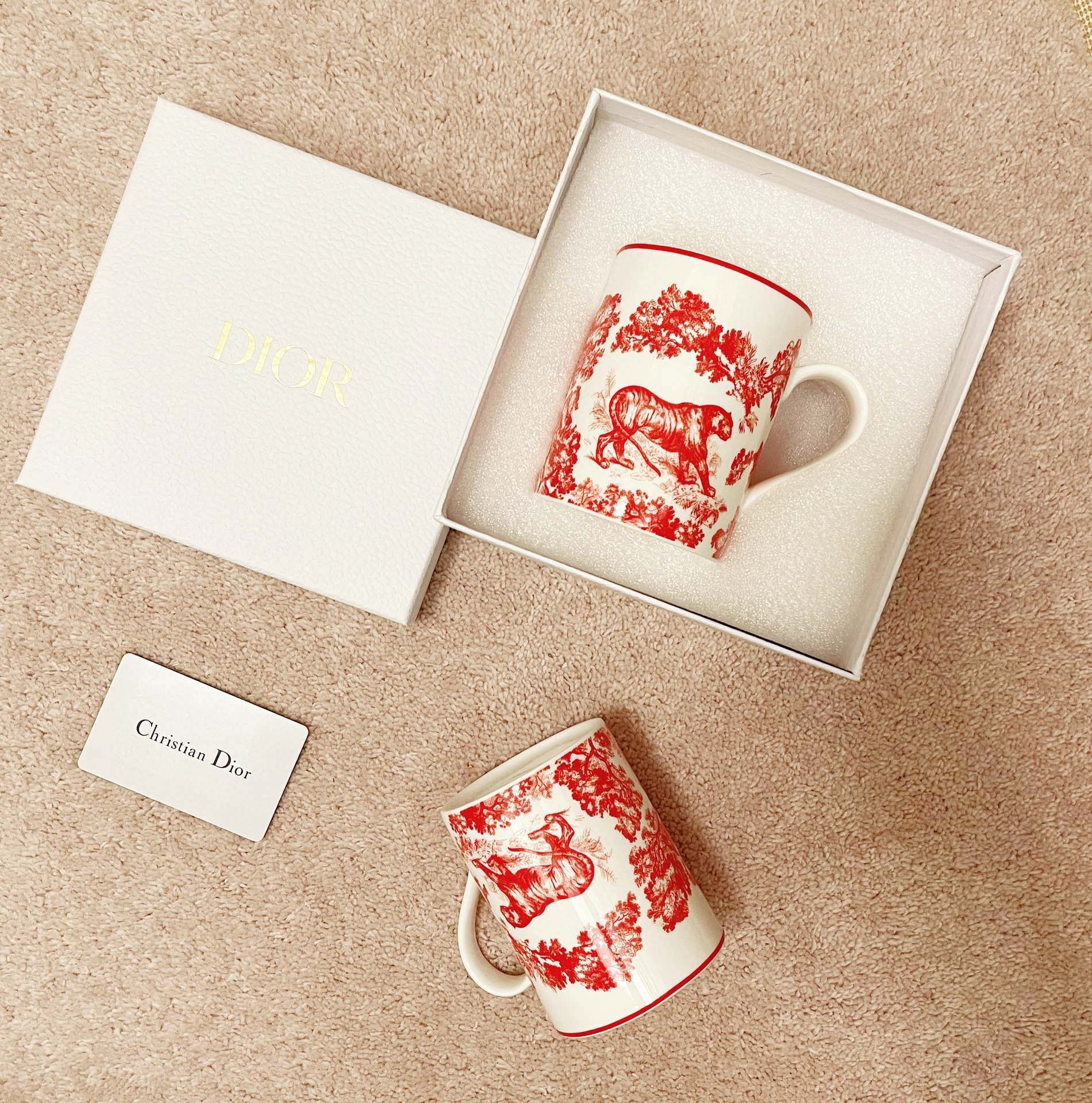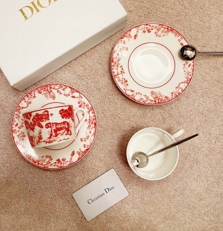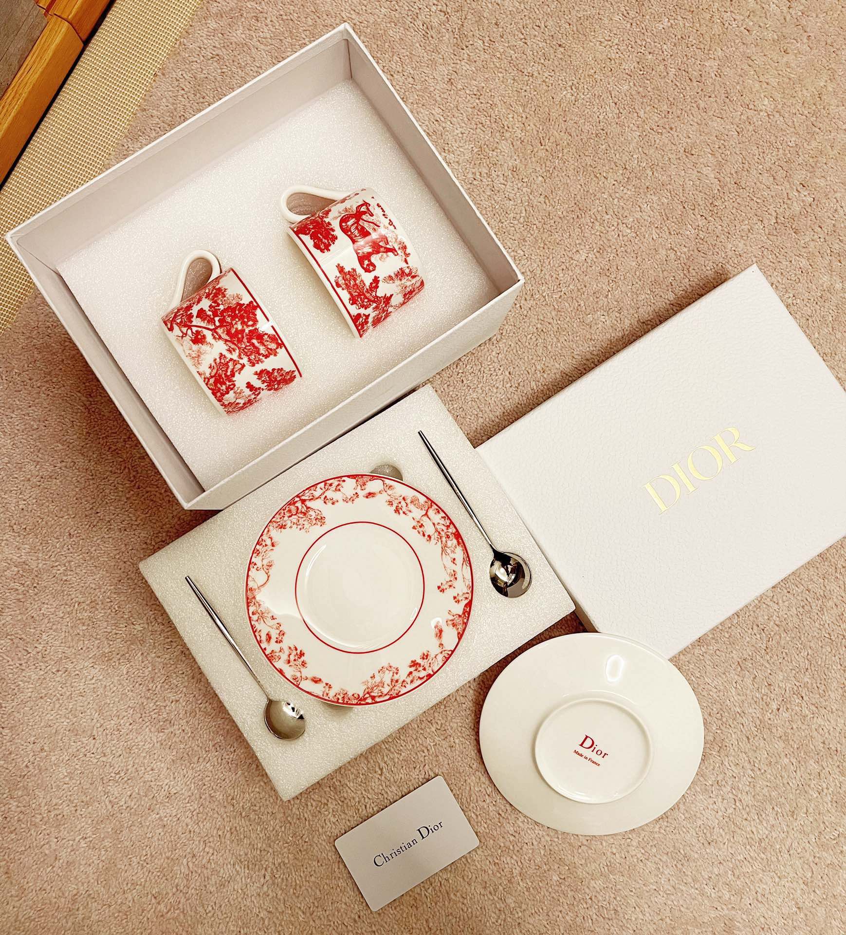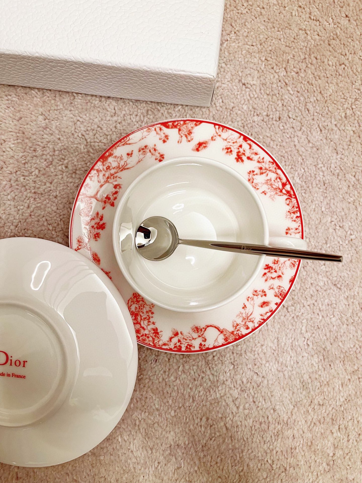 | Dior Red Jouy Bone China Mug/Ashtray/Double Cup & Saucer Set