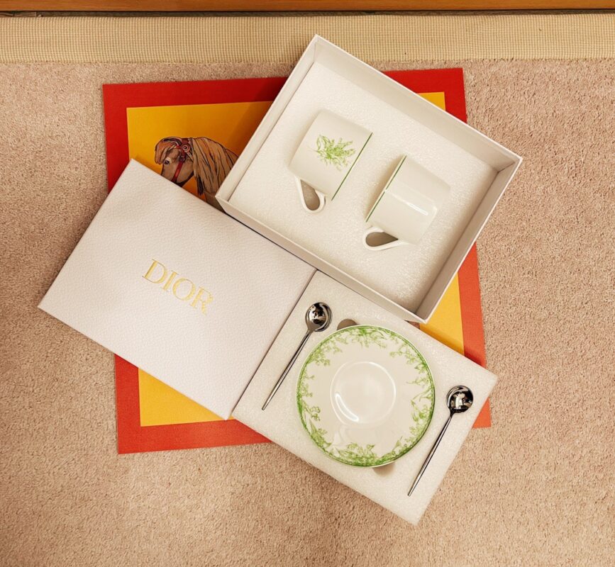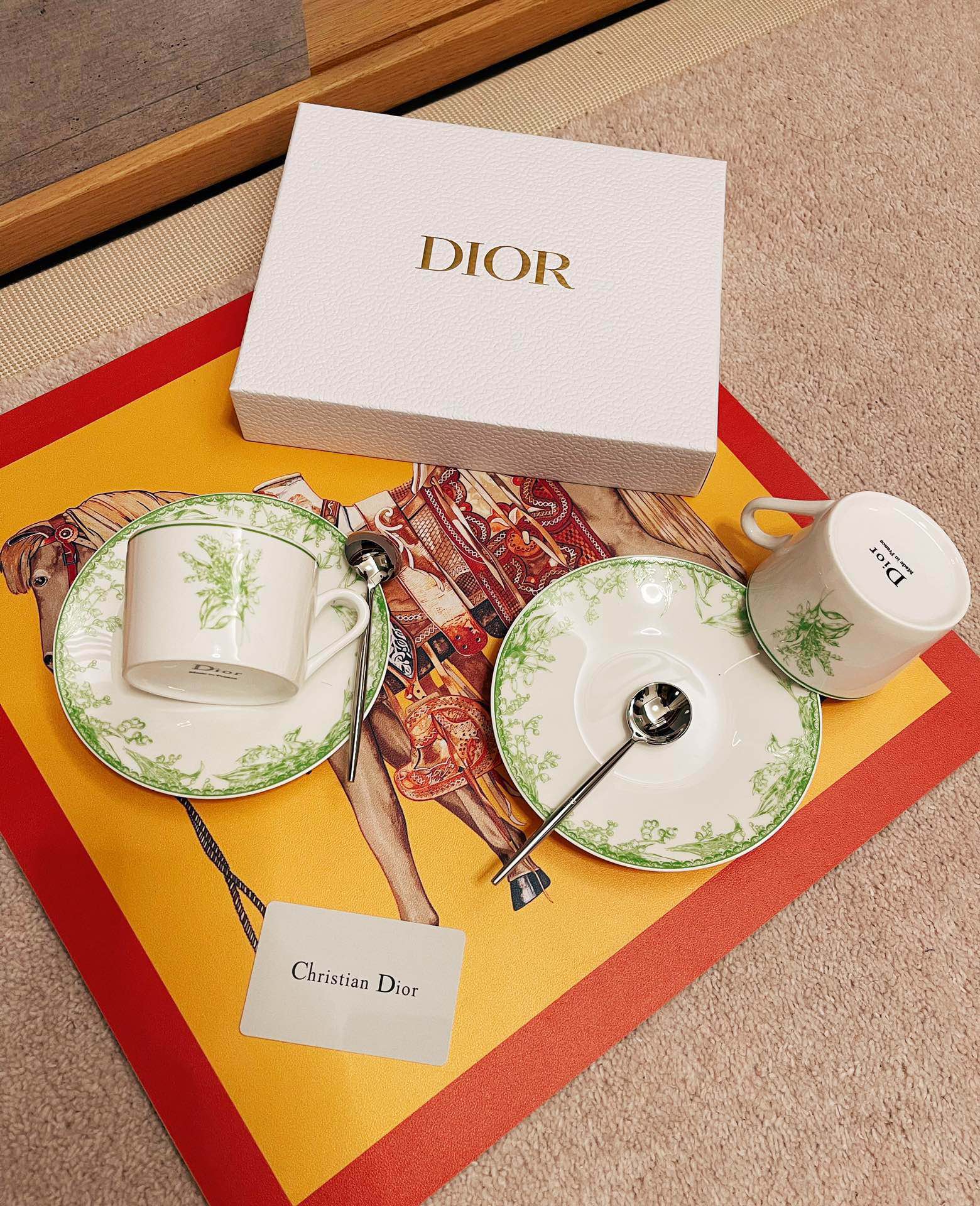 | Dior Lily of the Valley Bone China Mug/Ashtray/Double Cup & Saucer Set