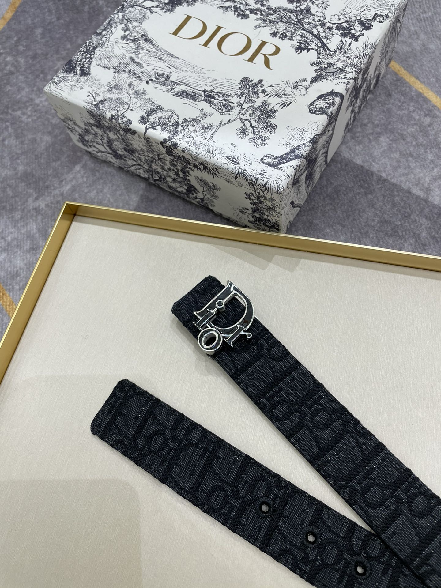 Dior Embroidered Leather Belt with Dior Letter Logo Buckle