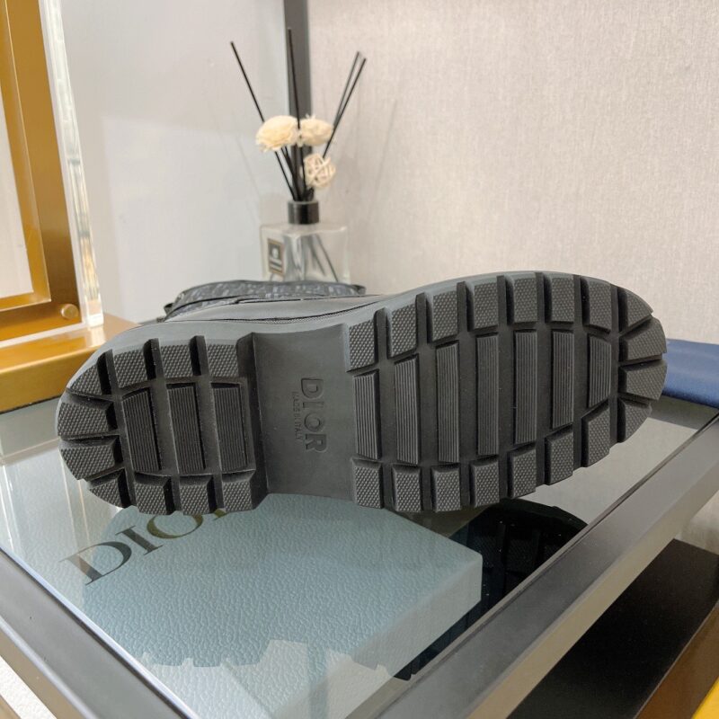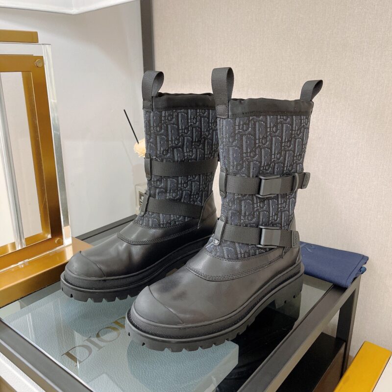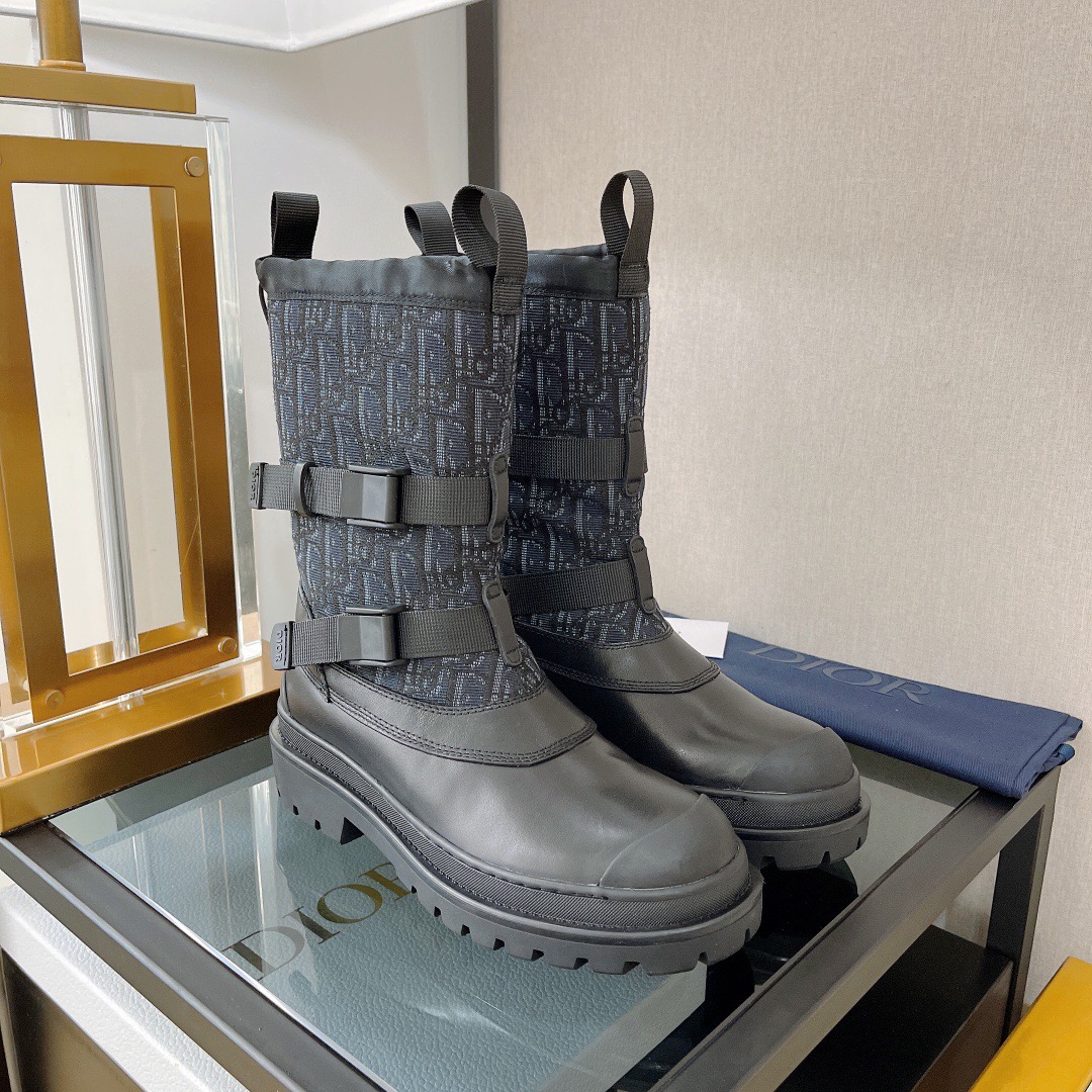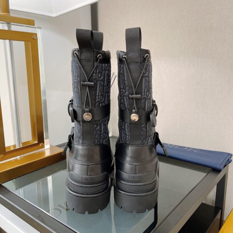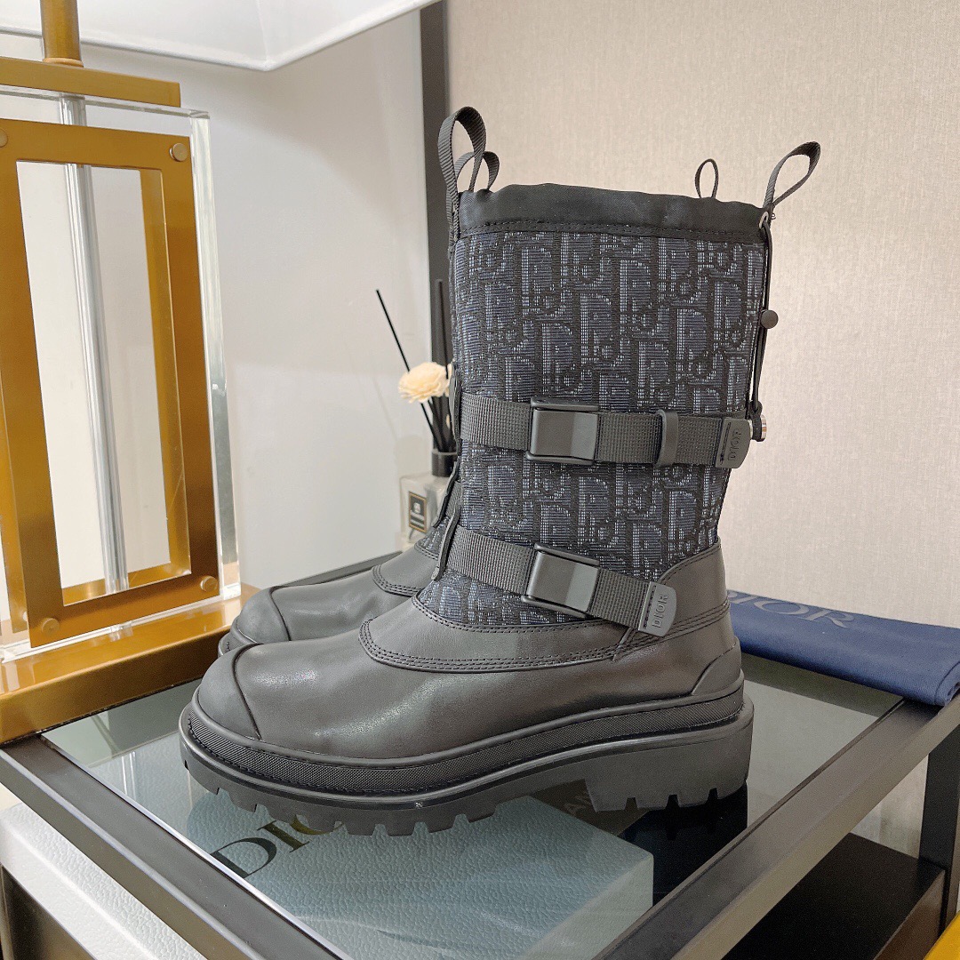 Dior Explorer Lace-up Wool Boots Crafted from black calfskin, these Dior Explorer ankle boots feature beige and black Oblique print panels on the sides. Fully lined in wool for a comfortable fit. Finished with a Dior logo patch, it is finished with a notched rubber sole and a tonal reinforced rubber toe cap for added sophistication. Wear it with everything this season for a stylish look. Upper: cowhide/jacquard Lining: wool lining Size: 35-39 (40/41 customized non-refundable)