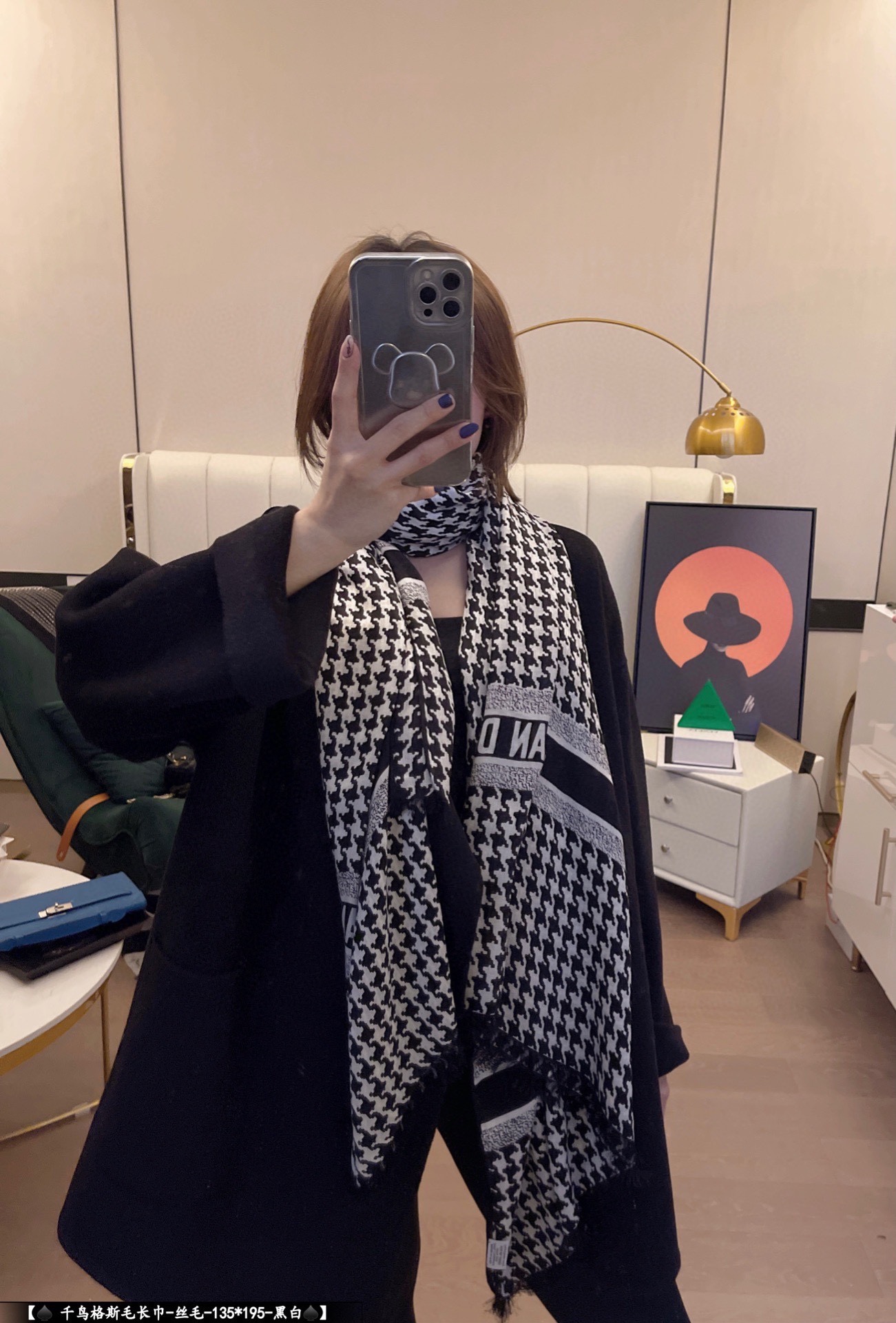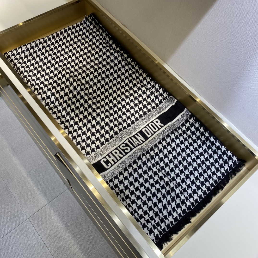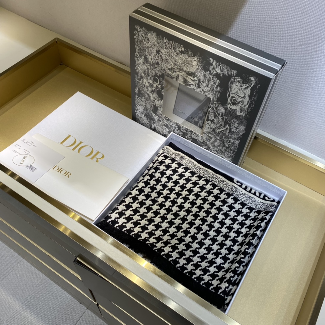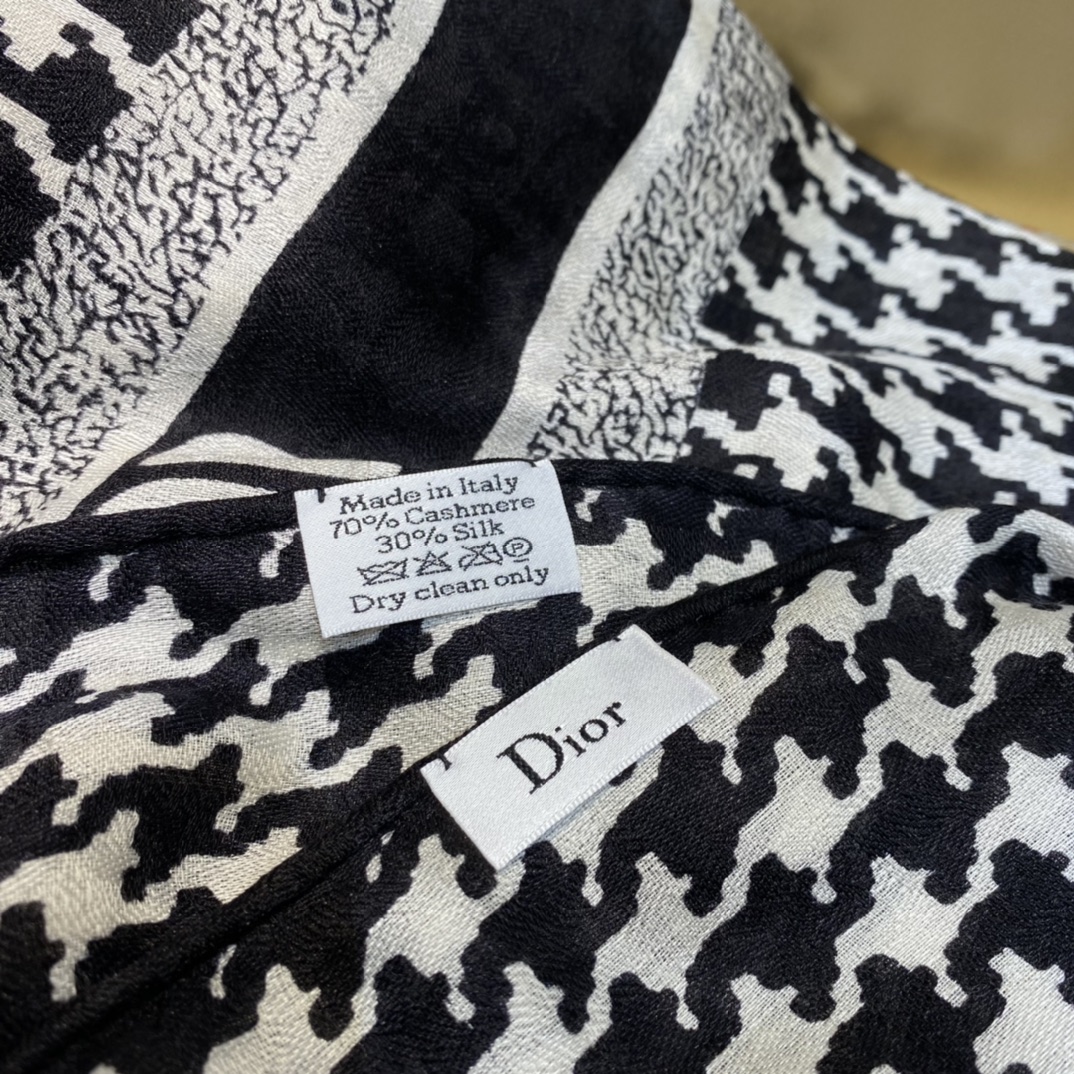 Dior houndstooth silk wool shawl. 195*135cm. 70% cashmere 30% silk