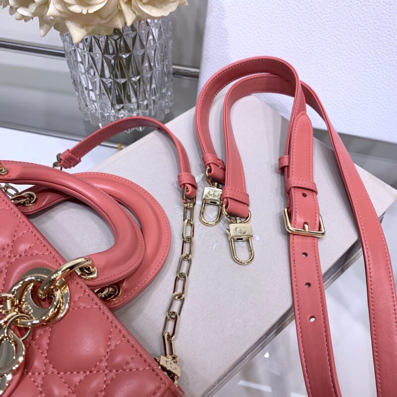 The Lady D-Joy bag embodies the signature minimalist aesthetic of the Lady collection, embodying a profound insight into elegance and beauty. Sophisticated and elegant, it’s crafted in calfskin with gray calfskin diamond-shaped cannage and enhanced with a tonal matte metal “charm” that adds movement to the delicate silhouette. Comes with a detachable chain shoulder strap. An adjustable and detachable leather shoulder strap can be carried by hand, over the shoulder or crossbody, ideal for everyday styling. Size: 26x6x14cm