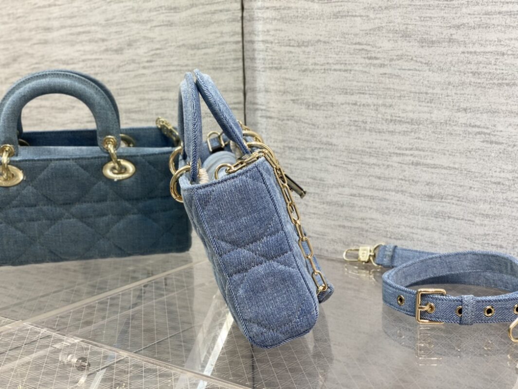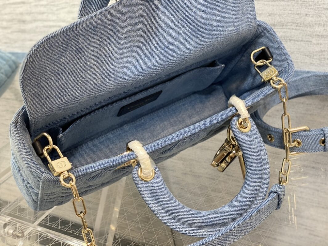 Lady D-joy denim series, a must-have item for summer, exquisite colorful letter charms, beautiful like a work of art, the bag comes with two shoulder straps, a variety of carrying methods, the upper body is beautiful. Sassy, cool girl exclusive bag. Size: 26*6*14cm