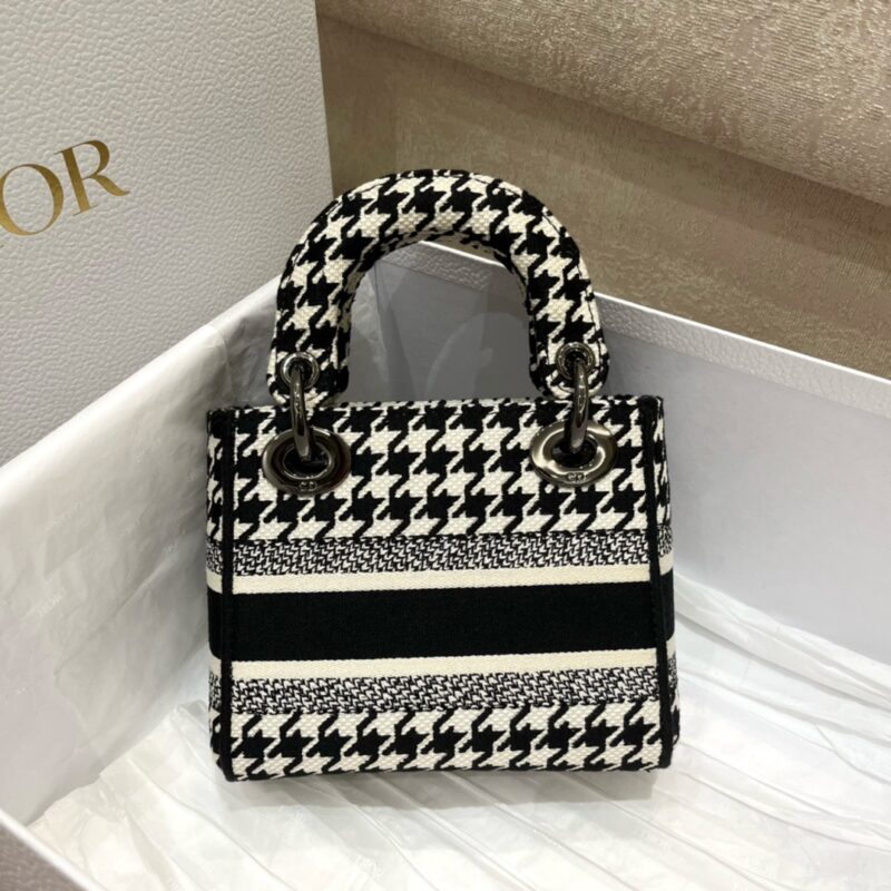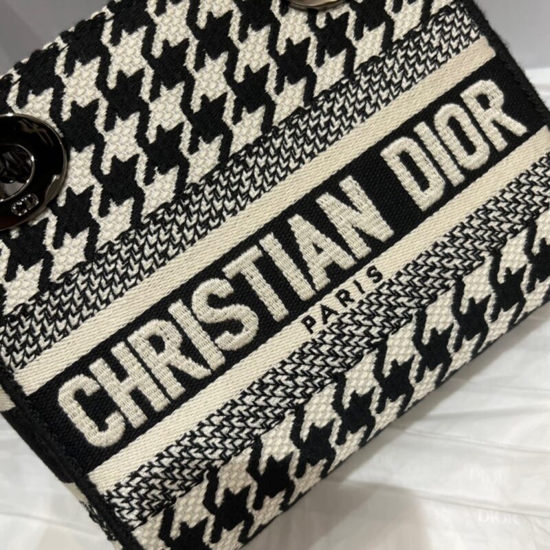 Dior top imported original embroidered Princess bag in stock️ Lady houndstooth series, the latest three-grid size, small and exquisite, perfect for practicality, classic houndstooth graphics, iconic large letter logo, simple black and white color matching , exquisite craftsmanship. Size:17*7*15cm