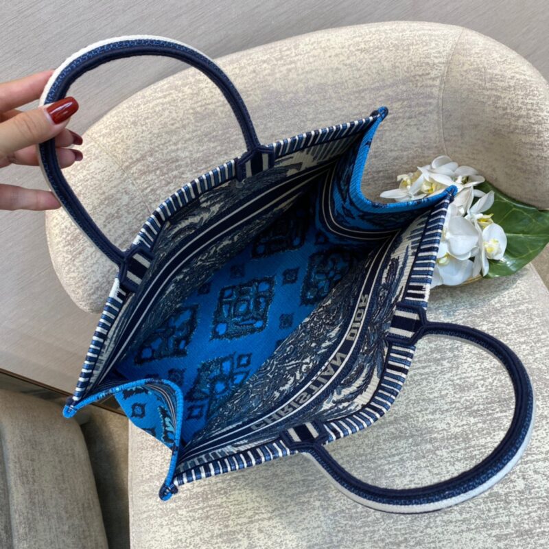Dior Large Book Tote Bag in Blue Coconut Tree