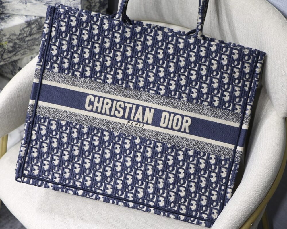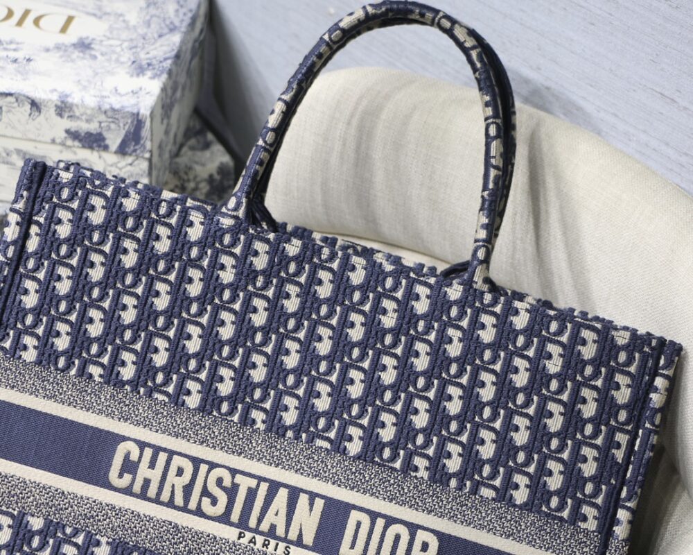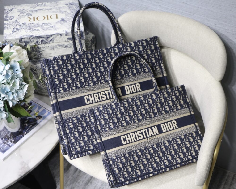 Large Dior Book Tote Presbyopia Series in Blue Wear it on your back and you will be fashionable and refined. It is really capable of holding. The super spacious content feels like it can hold the whole world.Small size: 36.5*28*17.5cm Large size: 41.5*38*18cm