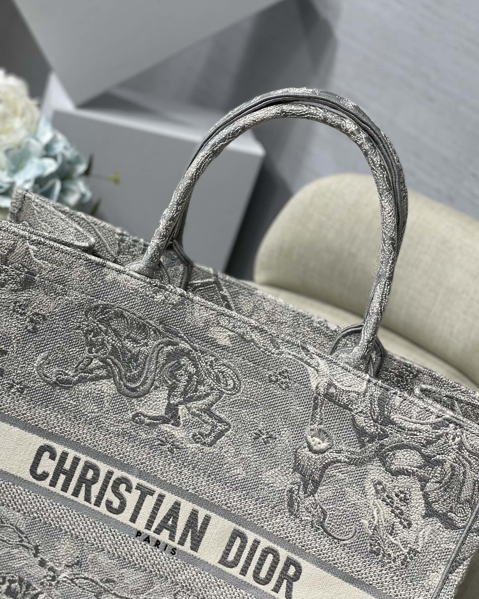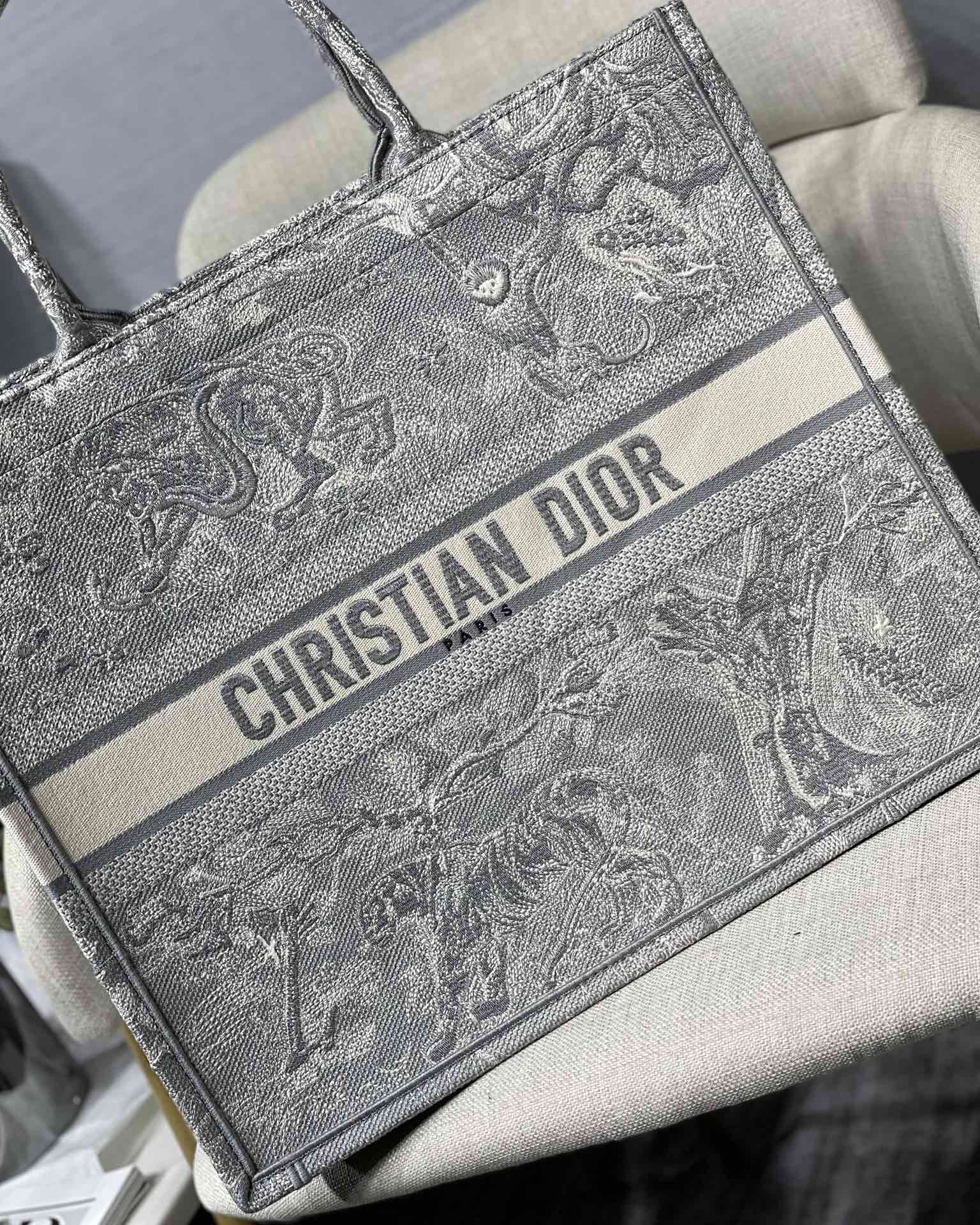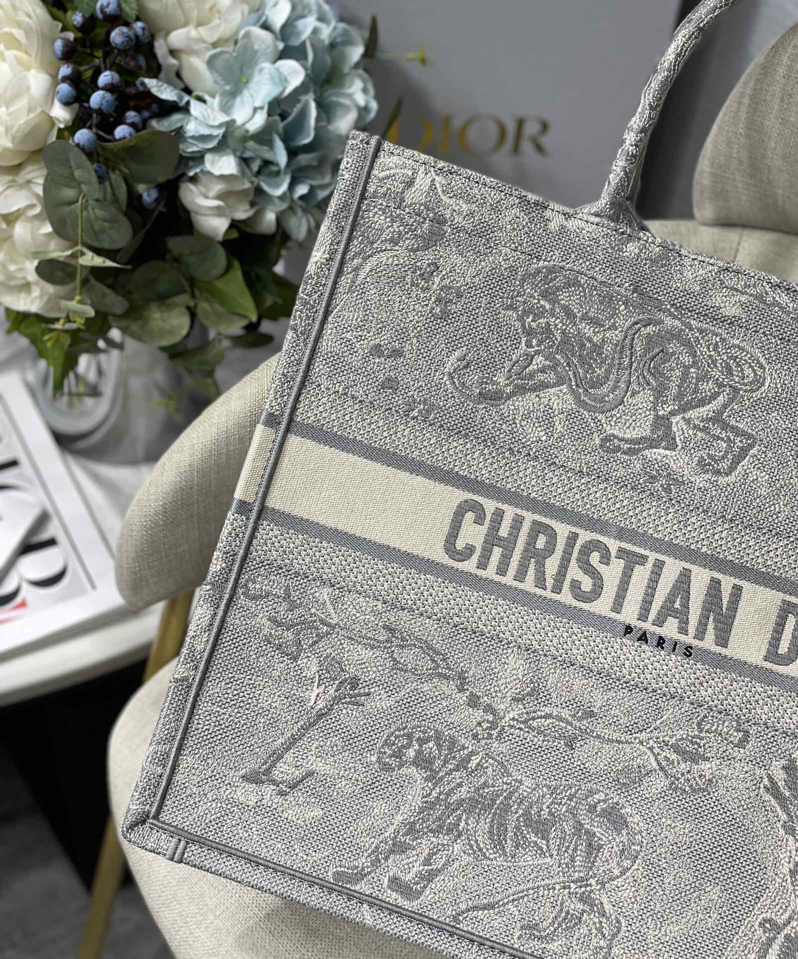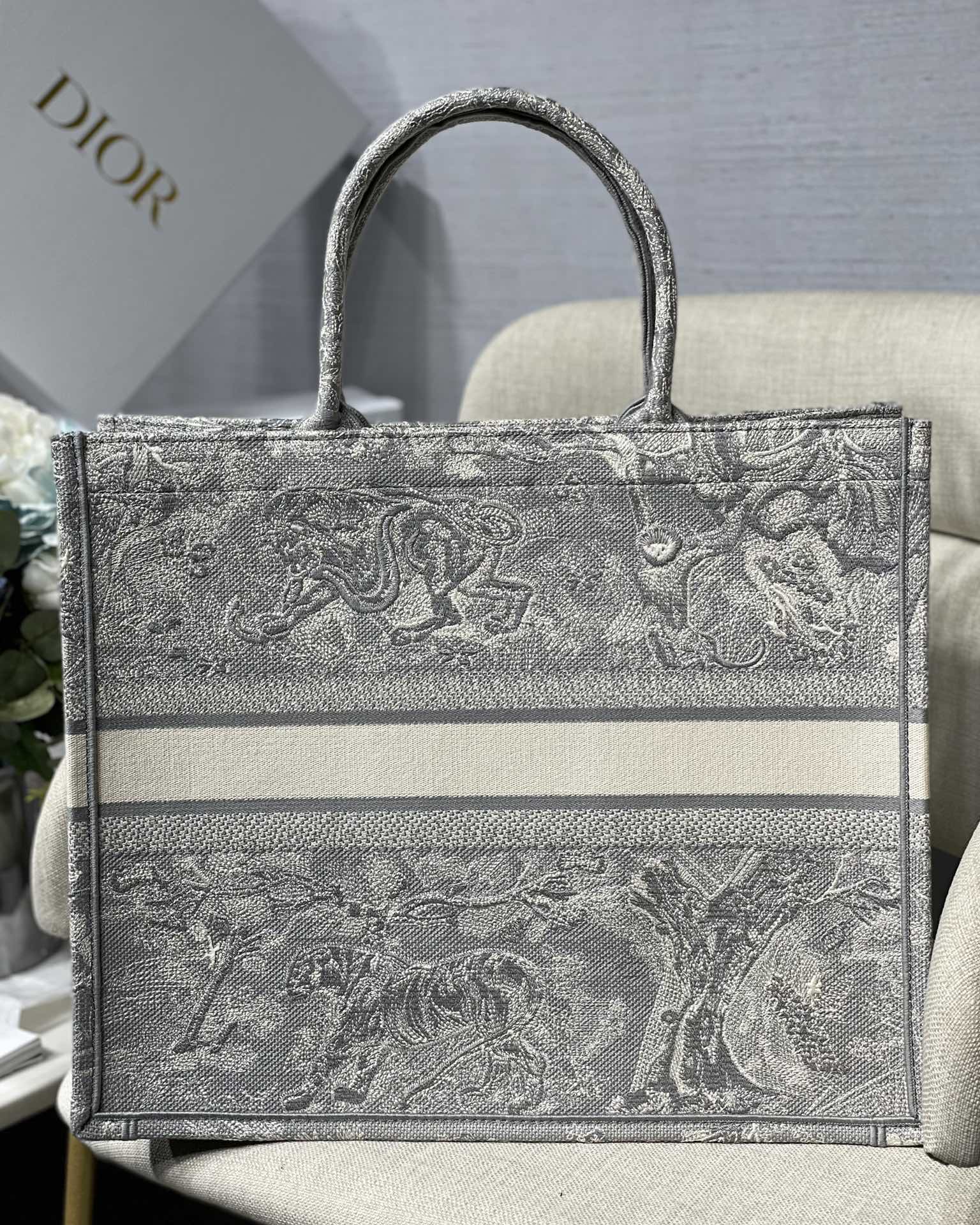 Large Dior Book Tote New Tiger Series in Grey Tiger Wear it on your back and you will be fashionable and refined. It is really capable of holding. The super spacious content feels like it can hold the whole world.Small size: 36.5*28*17.5cm Large size: 41.5*38*18cm