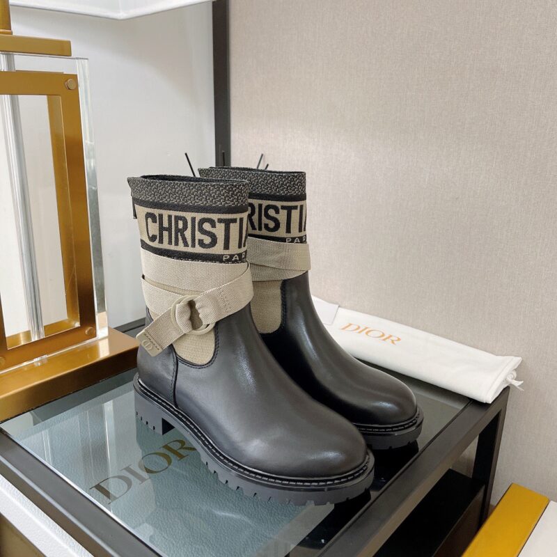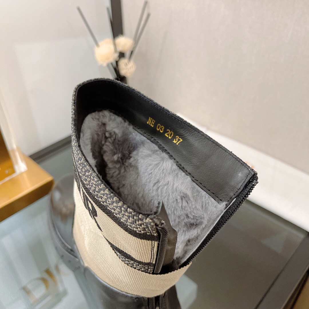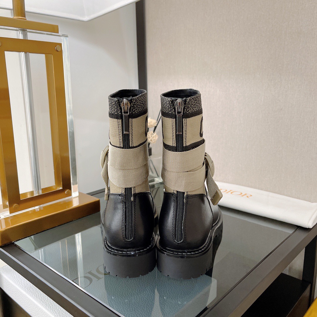 Dior-Major Dior Cropped Back Zip Booties These D-Major boots are elegant and full of personality. Crafted in technical fabric and black calfskin, it takes inspiration from the Book Tote bag and features the Christian Dior signature. CD initials accent the adjustable straps and notched sole, complete with a rear zip closure. Upper: technical fabric/leather Inner: Sheepskin inner Heel height: 3.5cm Tube height: about 20cm Size: 35-39 (40/41 customized non-refundable)