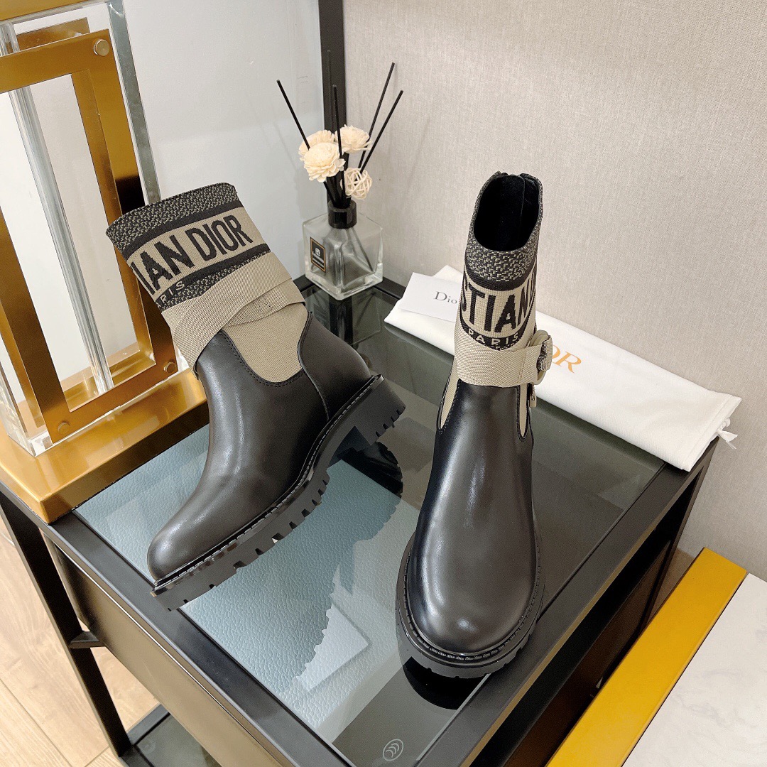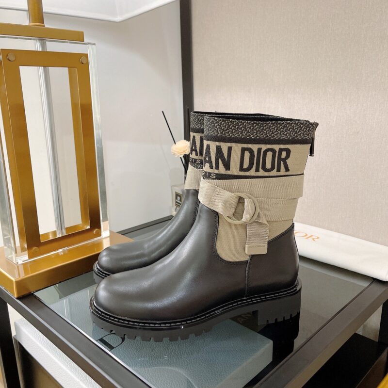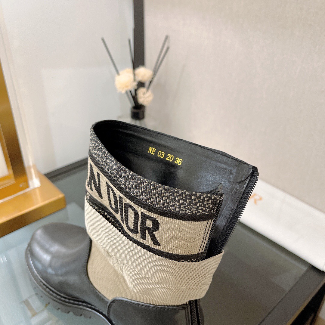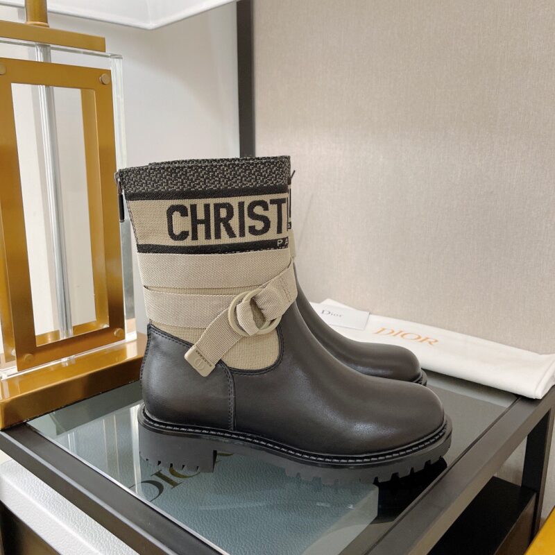 Dior-Major Dior Cropped Back Zip Booties These D-Major boots are elegant and full of personality. Crafted in technical fabric and black calfskin, it takes inspiration from the Book Tote bag and features the Christian Dior signature. CD initials accent the adjustable straps and notched sole, complete with a rear zip closure. Upper: technical fabric/leather Inner: Sheepskin inner Heel height: 3.5cm Tube height: about 20cm Size: 35-39 (40/41 customized non-refundable)