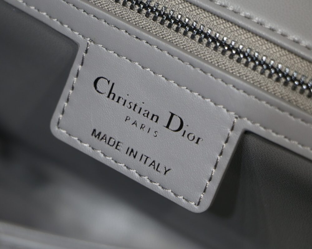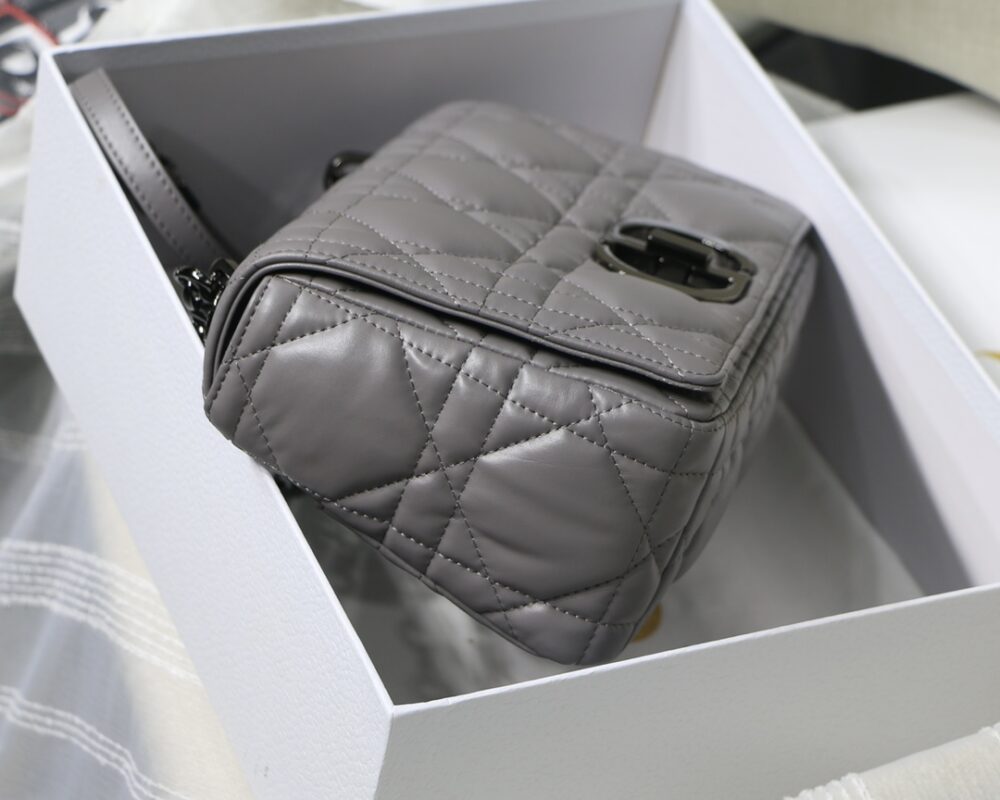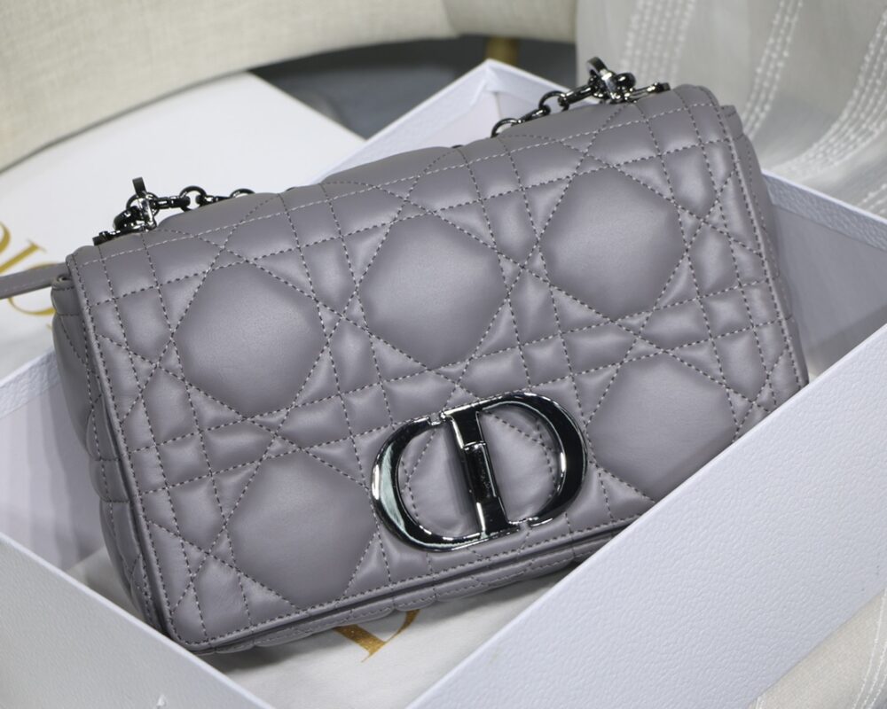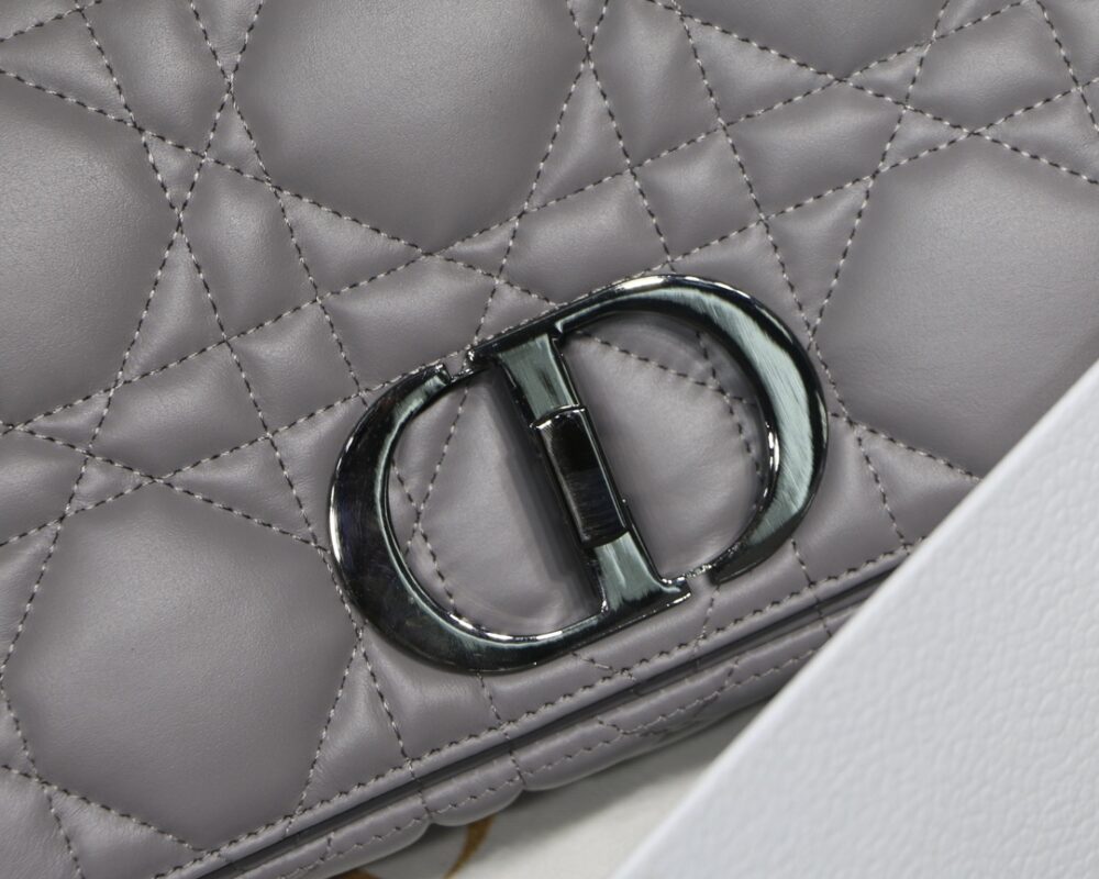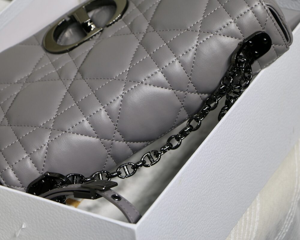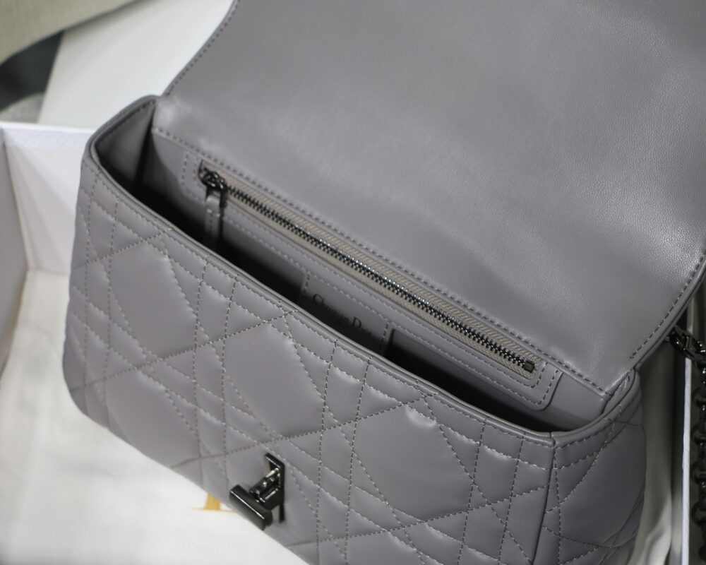 Dior Grey Caro Medium Rattan Plaid Series The Caro bag combines elegance and modernity. Meticulously crafted from calfskin, it features an original quilted-effect oversized cannage topstitching for a distinctive look. The flap is decorated with a metal clad knob “CD” clasp, inspired by the closure of a perfume bottle, with a detachable “CD” logo chain shoulder strap, which can be carried by hand or on the shoulder, or can be replaced with a wide shoulder strap embroidered with D for everyday looks or evening ensembles.Medium Size: 25x 15.5x 8 cm