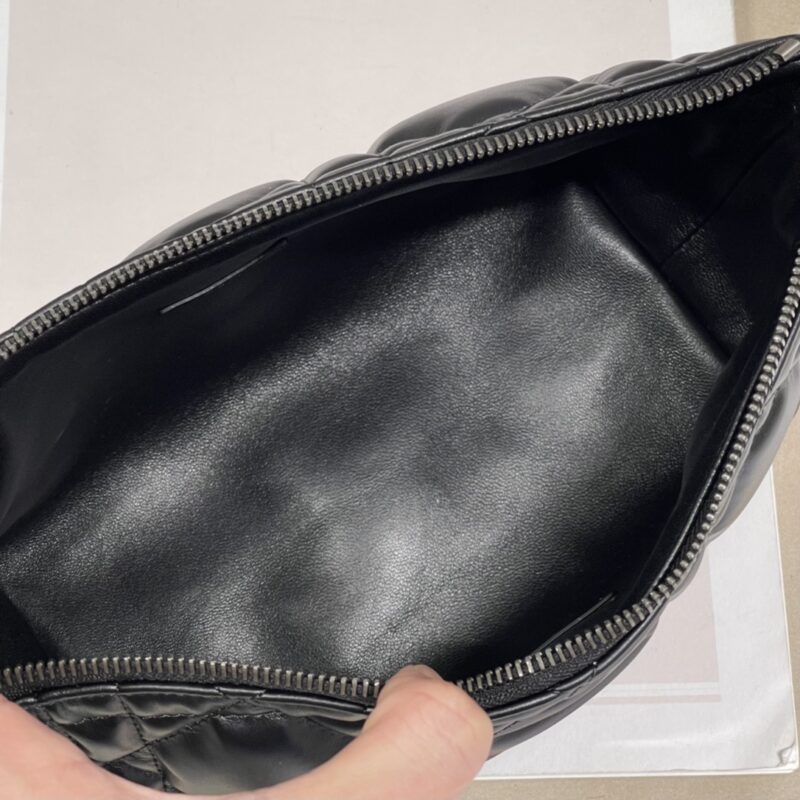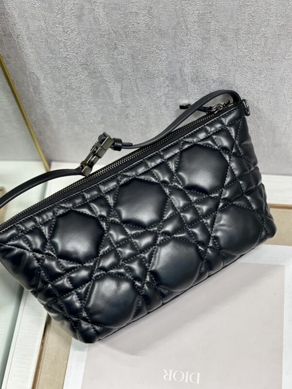 Dior Medium Travel Nomad Clutch This season’s new clutch bag is a stylish piece that combines many elements. Crafted in Black Calf Leather. Decorated with oversized cannage in a unique quilted effect. The space is spacious and the shape is flexible, which can store mobile phones and various small daily necessities. Easy to carry in the hand and on the shoulder, it has metal loops on the sides and can be worn with a Dior embroidered shoulder strap. Size: 22×13×9.5cm
