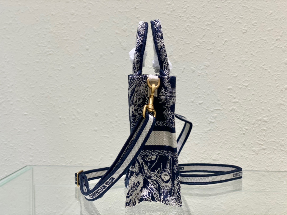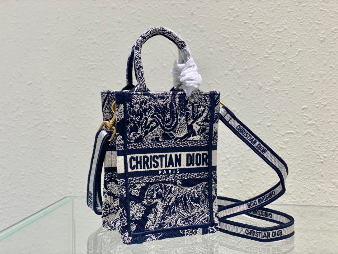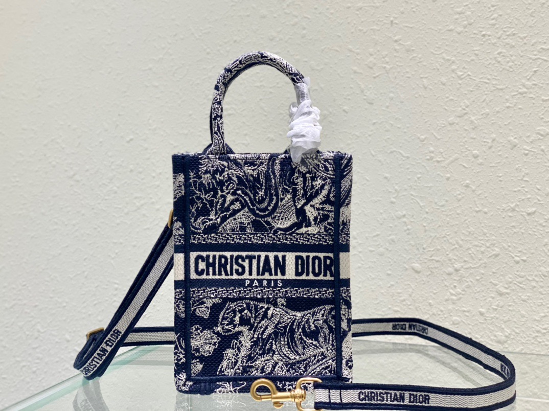 Dior Mini Tote (The latest vertical version)New Blue TigerTote’s latest vertical version of the mini, it’s so cute, this size is super suitable for summer, can accommodate mobile phones, lipsticks, keys. The adjustable shoulder straps are delivered, and the practicality of daily use is absolutely perfect. The exquisite embroidery, the iconic letters, and the sense of luxury are also full.Size: 13.5*5*18cm