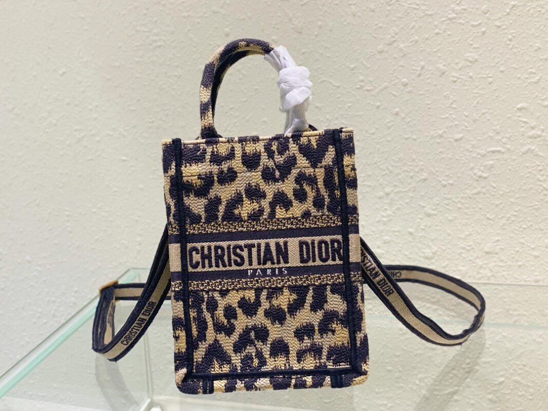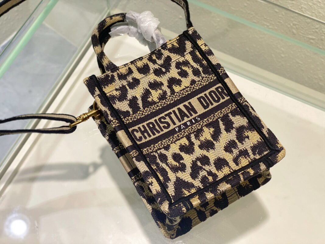Dior Mini tote (The latest vertical version)Leopard print Tote’s latest vertical version of the mini, it’s so cute, this size is super suitable for summer, can accommodate mobile phones, lipsticks, keys. The adjustable shoulder straps are delivered, and the practicality of daily use is absolutely perfect. The exquisite embroidery, the iconic letters, and the sense of luxury are also full.Size: 13.5*5*18cm