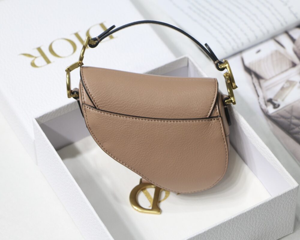 Dior Saddle Super Mini Series Size: 12cm*7.5*5cm This iconic saddle bag highlights Maria Grazia Chiuri’s ingenious design. Crafted in black sheepskin, the saddle flap features a stirrup ‘D’ charm and the handle has a ‘CD’ logo on both sides. The mini style can be worn with a variety of embroidered shoulder straps for a statement.