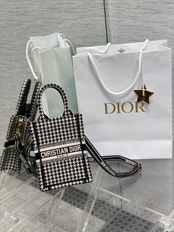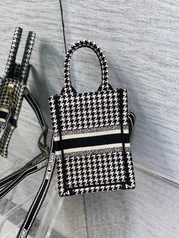 Tote houndstooth series vertical version mini, so cute, this size is super suitable for summer, it comes with adjustable shoulder straps, the practicality is absolutely perfect for daily use, exquisite embroidery, iconic letters, full of high-end sense. Size: 13.5*5*18cm