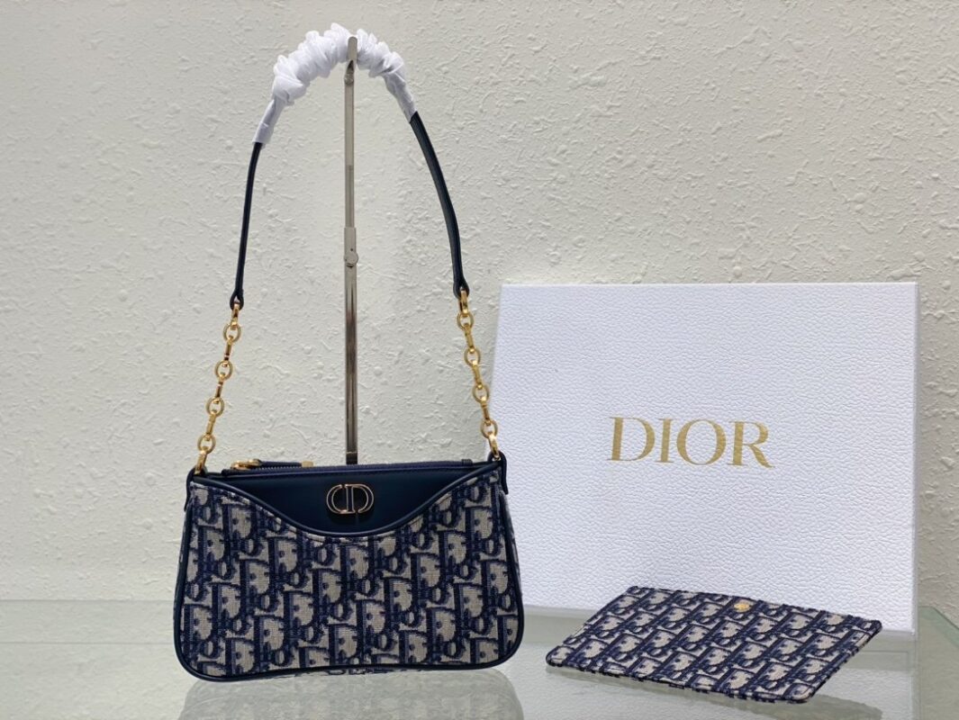New to the Fall 2023 ready-to-wear collection, the Hobo Avenue mini bag enriches the 30 Montaigne collection with vintage appeal. Crafted from blue Oblique print fabric, it features two detachable pouches for versatility. Elegantly designed with a leather and chain shoulder strap, it is finished with a CD link in tonal enamel. Carry it over the shoulder as a finishing touch to any look this season. Dimensions: 21 x 13 x 5 cm