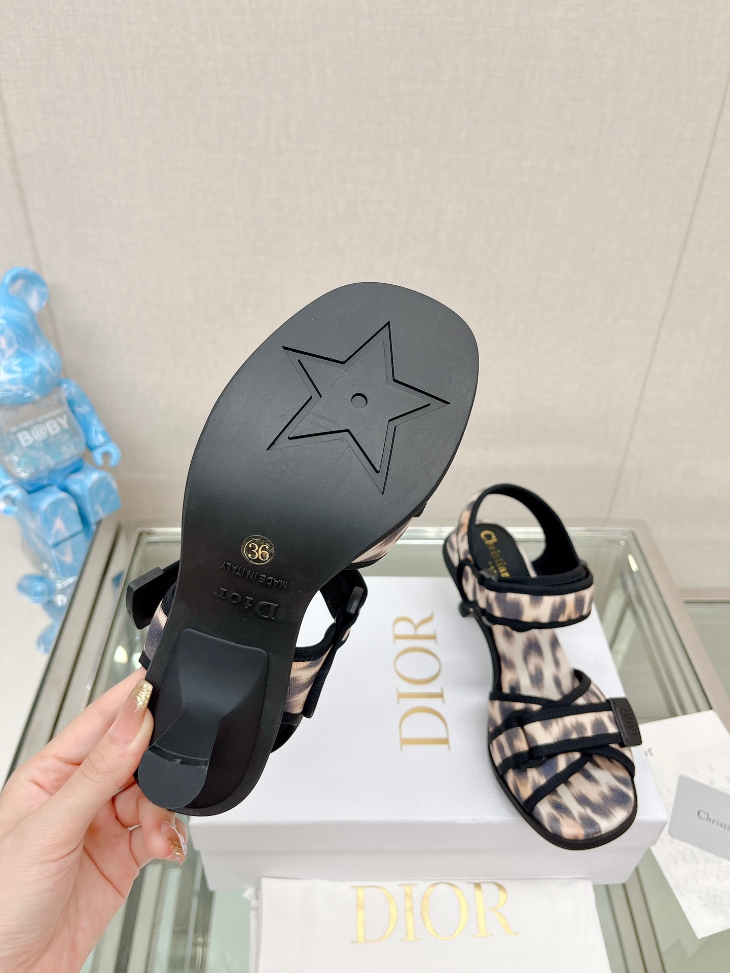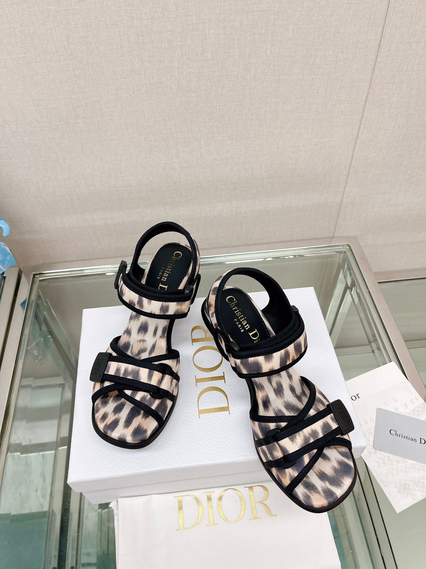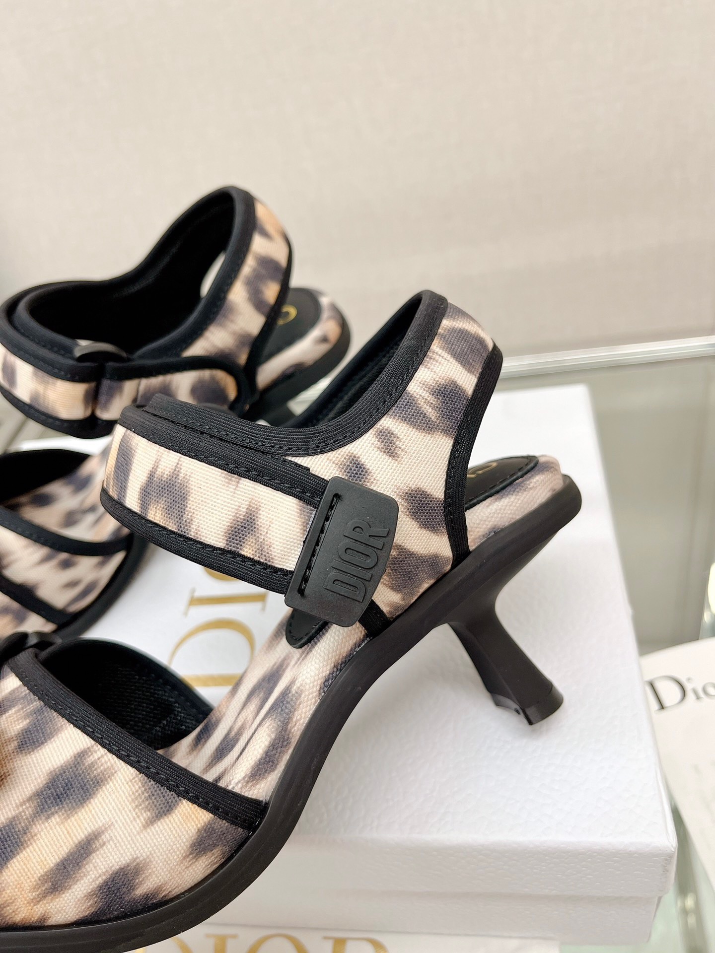 Dior 2023 New Leopard Velcro Heel Sandals