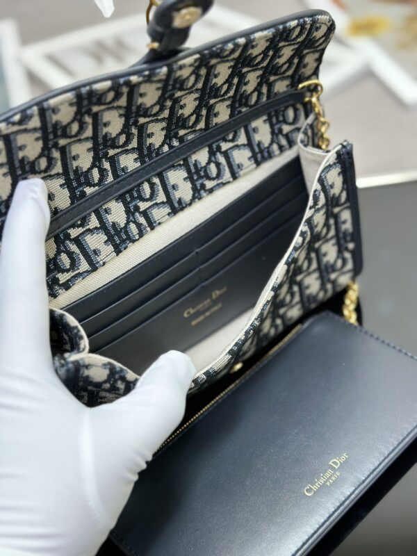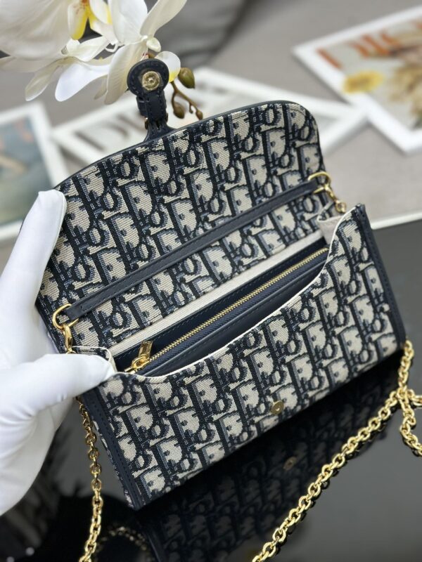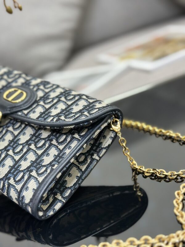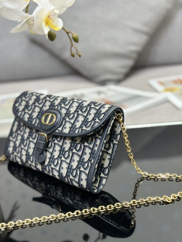 Dior Bobby East-West chain handbag is a new product for summer 2023, crafted in blue Oblique printed fabric, stylish and elegant. A decorative CD clasp enhances the flap, and a practical compartment contains a small, detachable zip pouch. With a detachable chain, it can be carried on the shoulder, cross-body or by hand. Dimensions: 21.5 x 12 x 4 cm