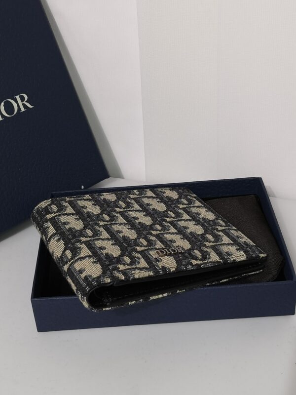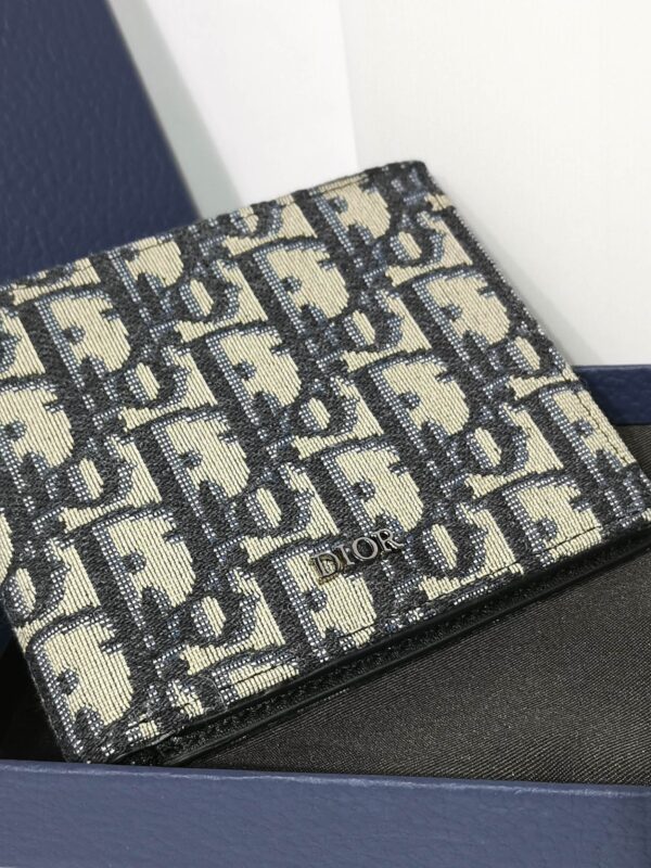 This wallet exudes elegance. Crafted in beige and black jacquard with Oblique print and metal-clad brass ‘DIOR’ signature on the front. Interior features 1 double cash compartment, 2 receipt compartments, and 8 card slots. The bi-fold design fits easily into a pocket or handbag and is on the go.