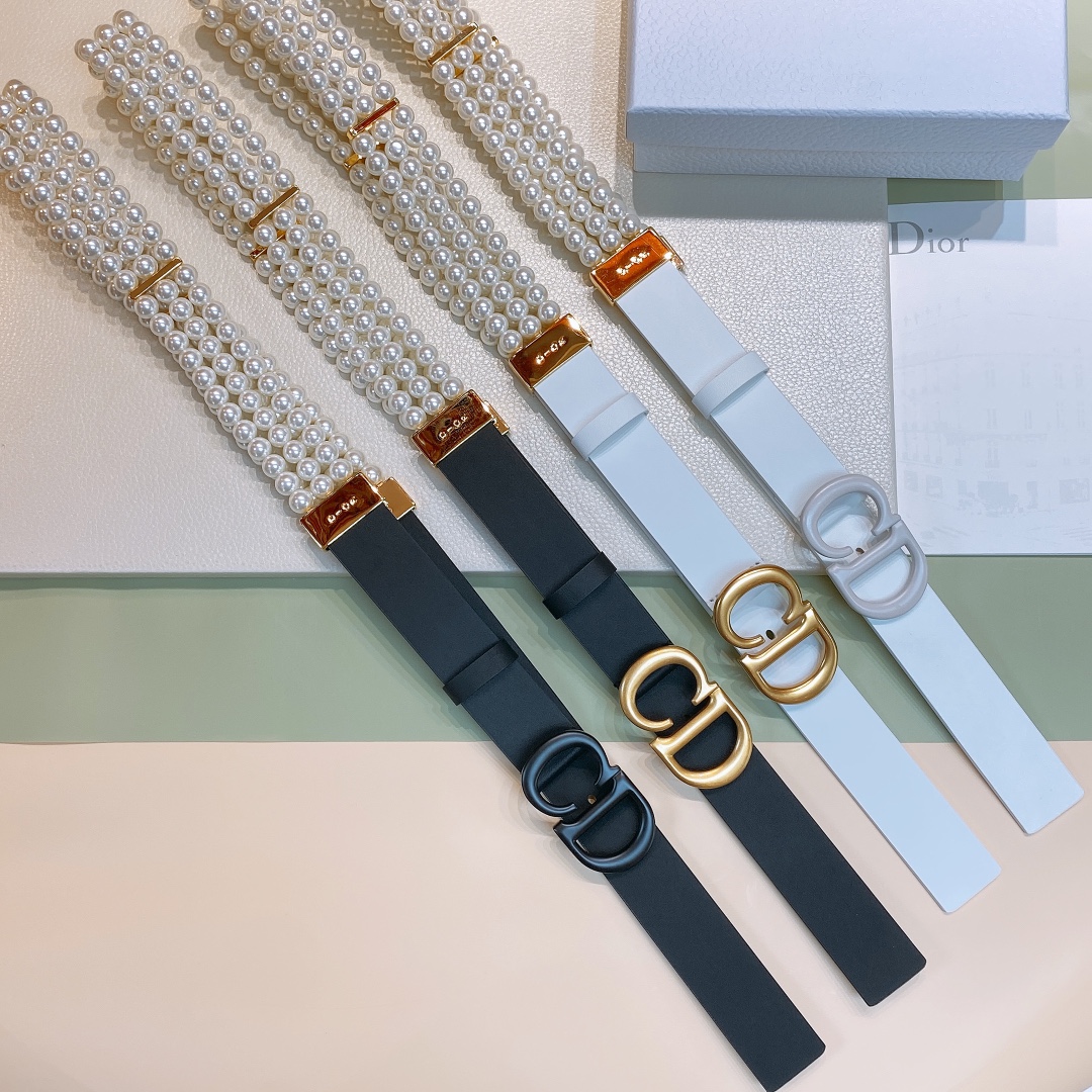 Dior Caro belt White glass beads smooth calfskin belt. Width: 2cm. Size: 75~95. 32088880