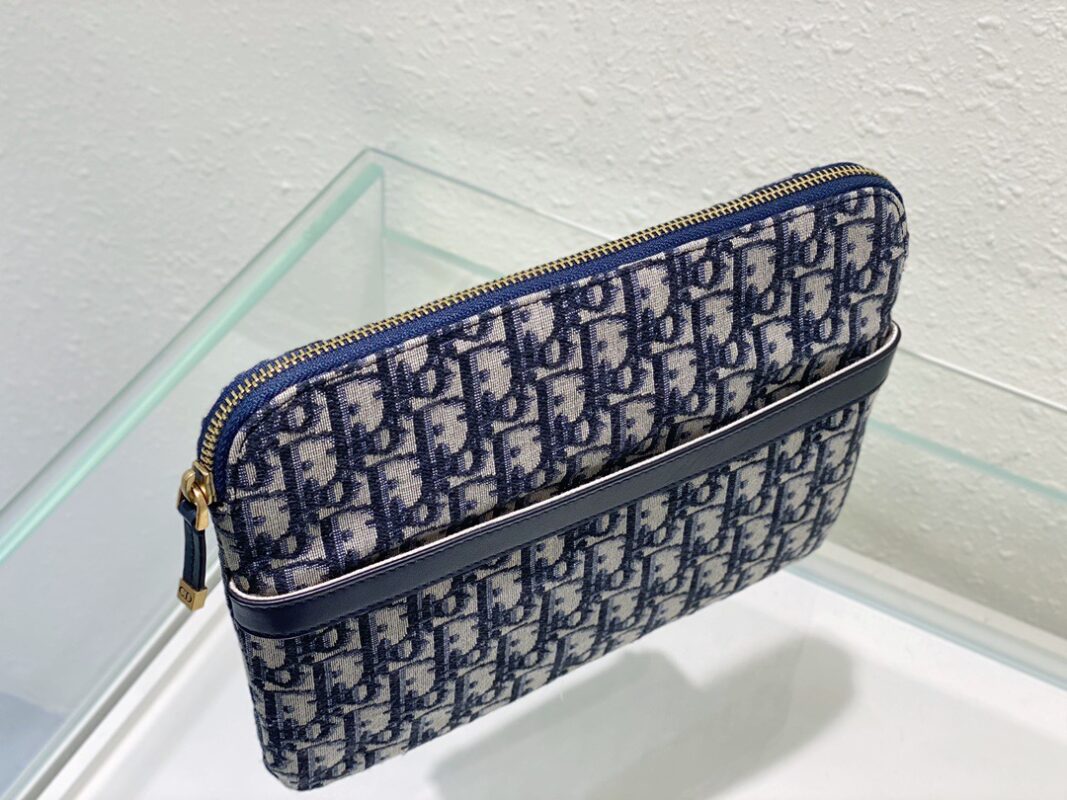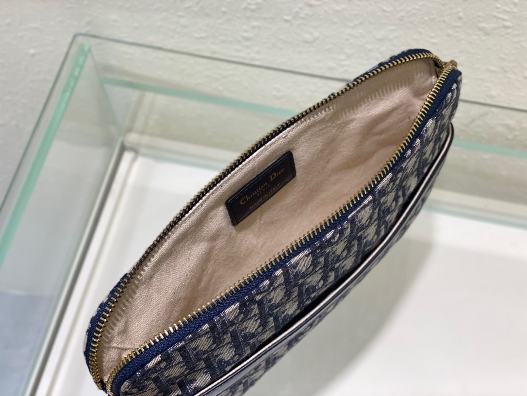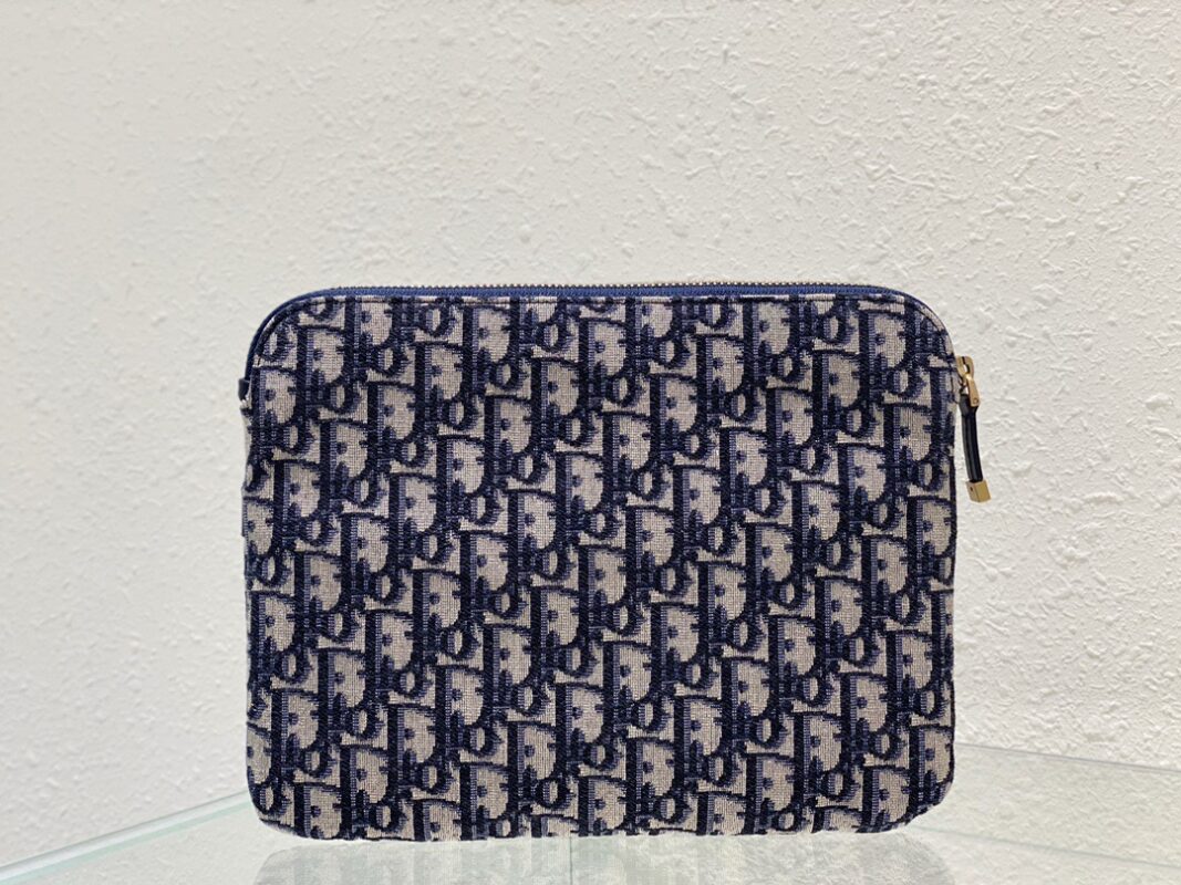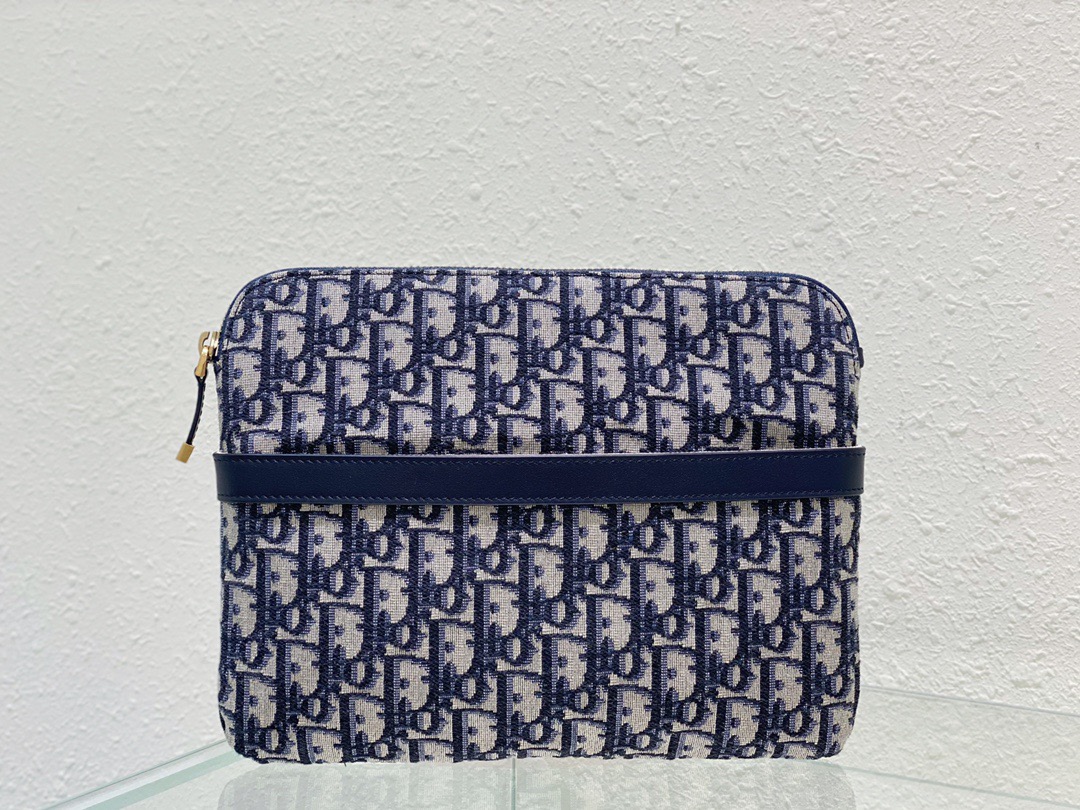 The DIOR Presbyopia Clutch is crafted in blue Oblique printed fabric, with a spacious interior compartment for daily essentials, structured and can be used as a clutch or in a Book Tote bag Dimensions: L 28 H 21 Number: 5511