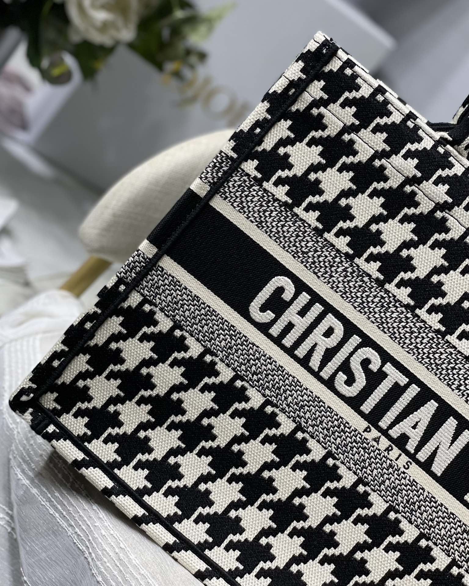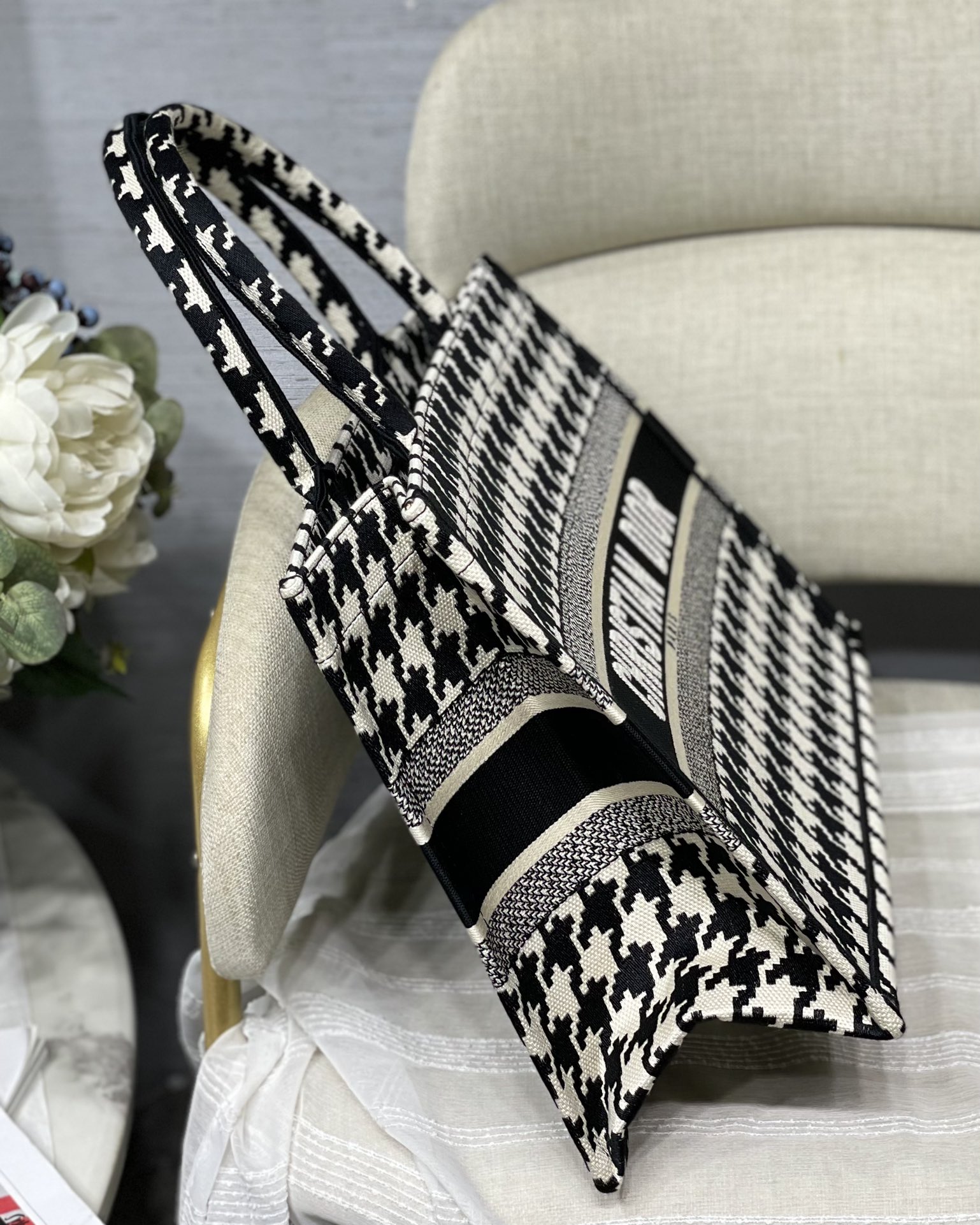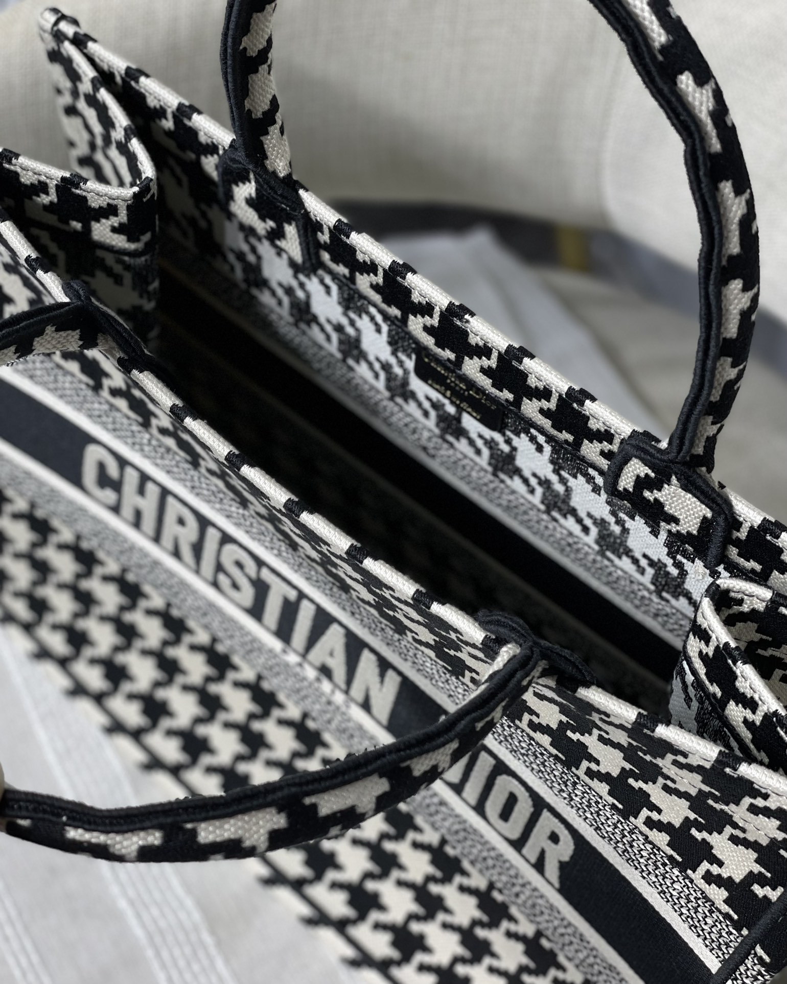 Small Dior Book Tote Houndstooth Series in Black & White Wear it on your back and you will be fashionable and refined. It is really capable of holding. The super spacious content feels like it can hold the whole world.Small size: 36.5*28*17.5cm Large size: 41.5*38*18cm