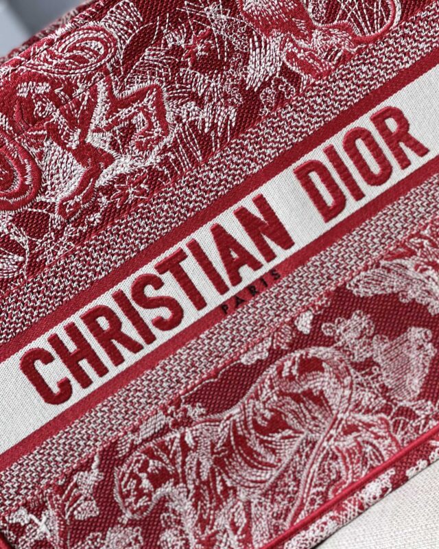 Dior Small Book Tote Bag in Red Tiger Embroidery