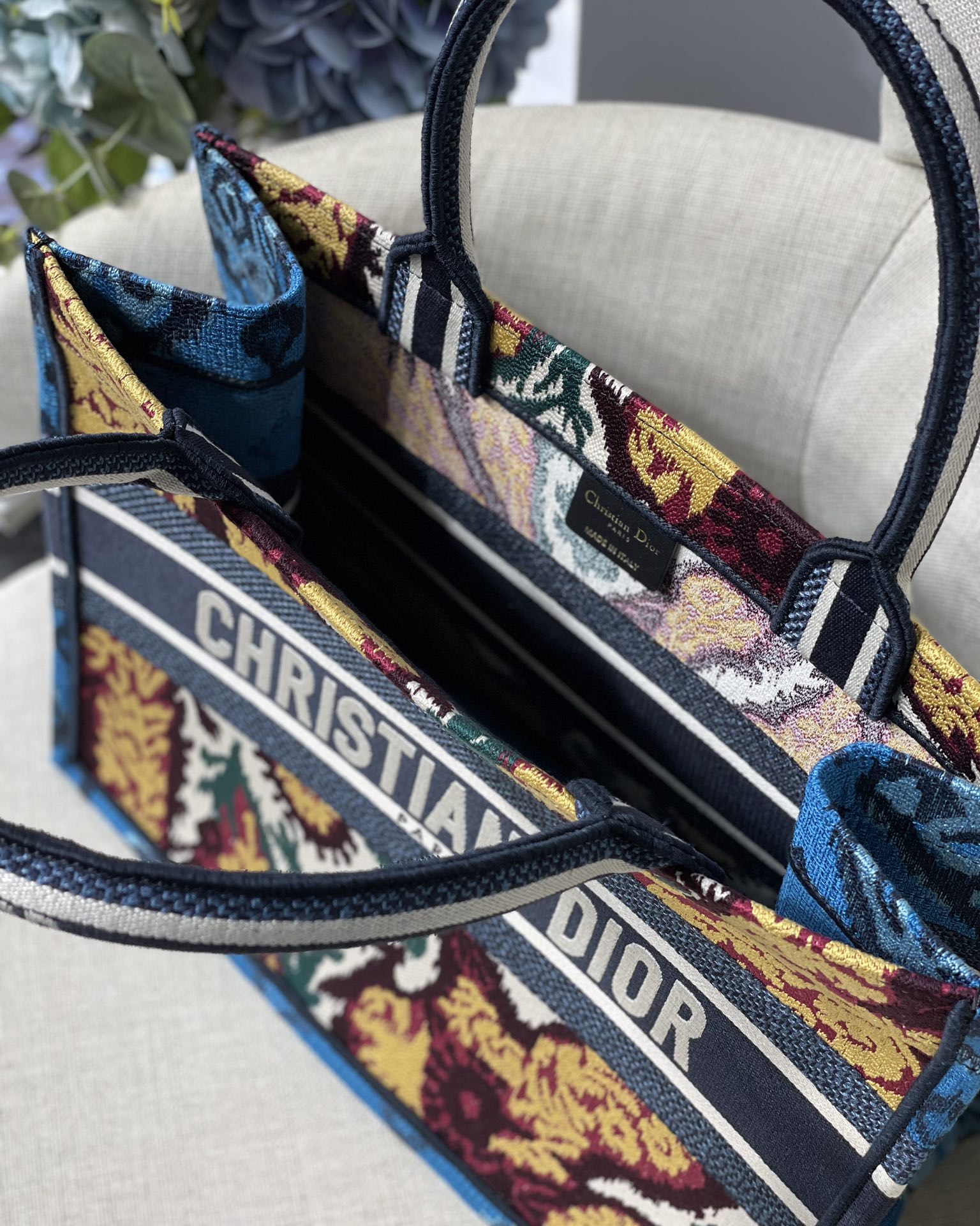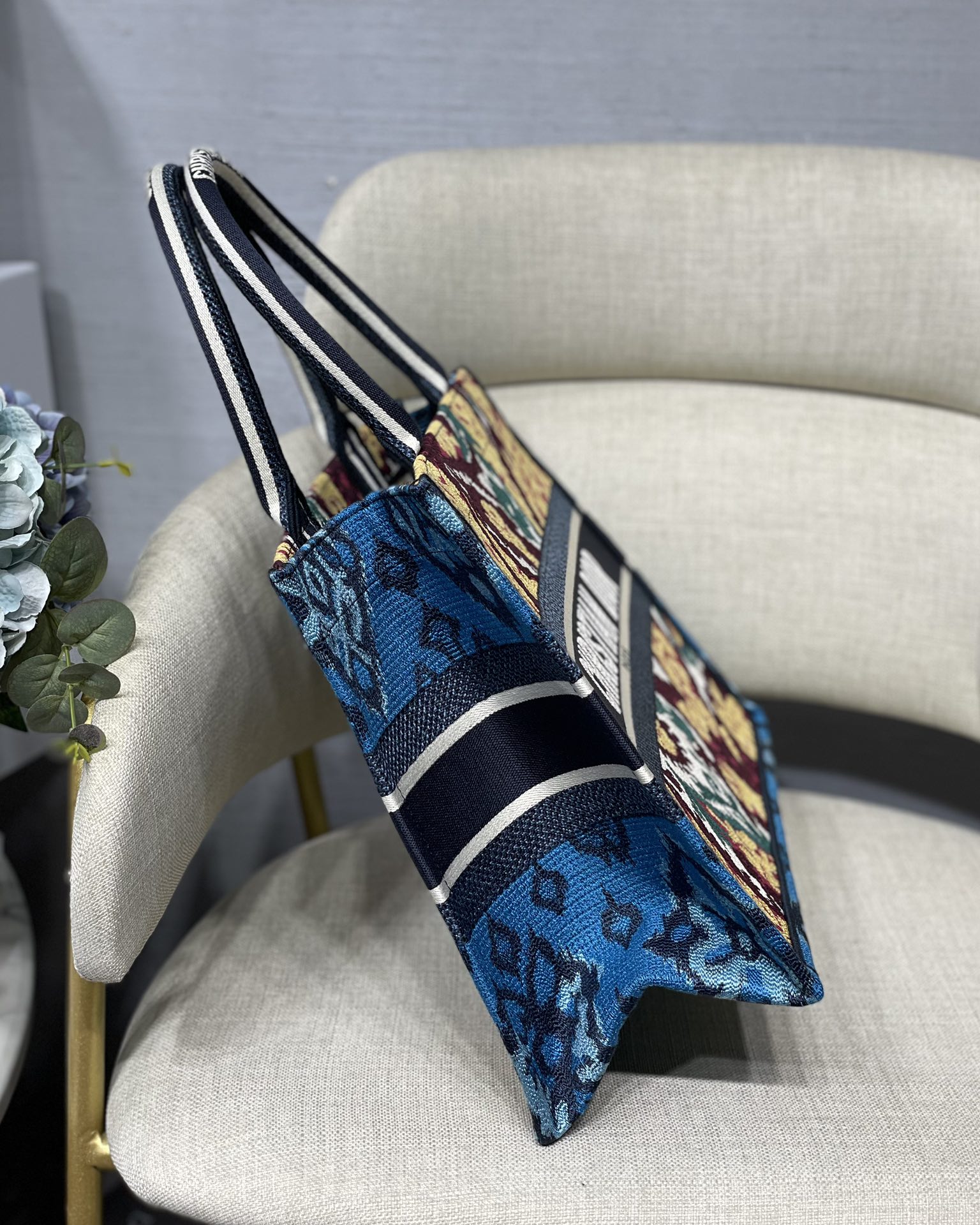 Small Dior Book Tote Stripe Series in Blue Maple Leaf Wear it on your back and you will be fashionable and refined. It is really capable of holding. The super spacious content feels like it can hold the whole world. Size: 36.5*28cm