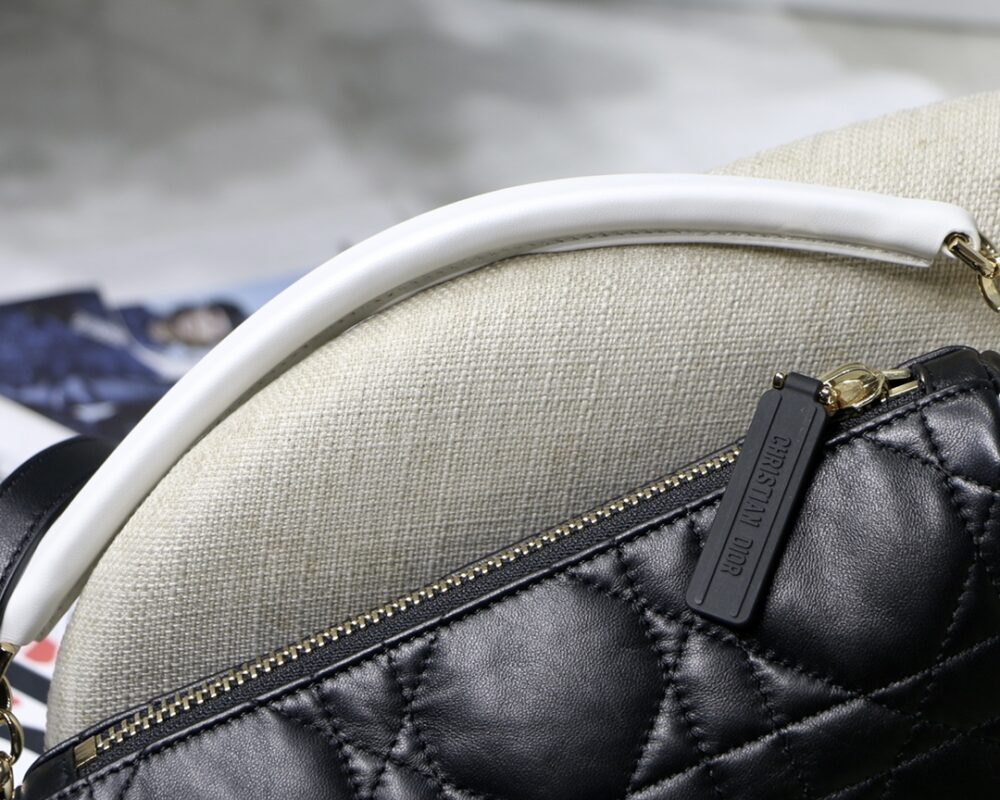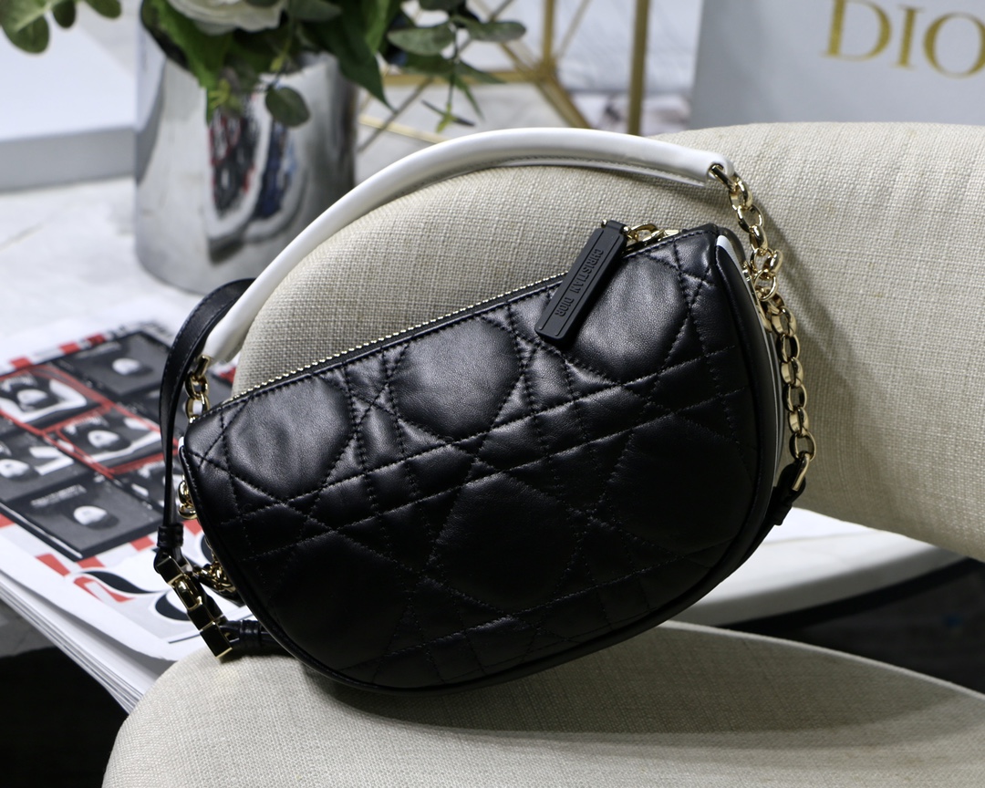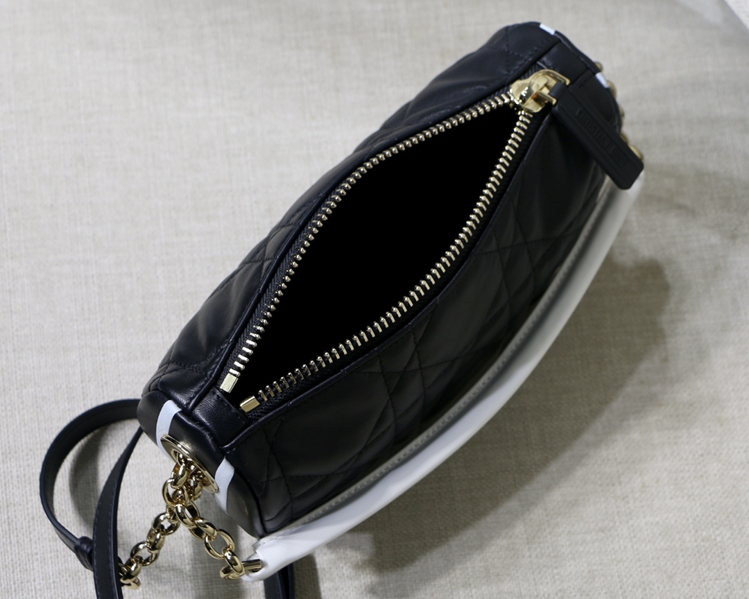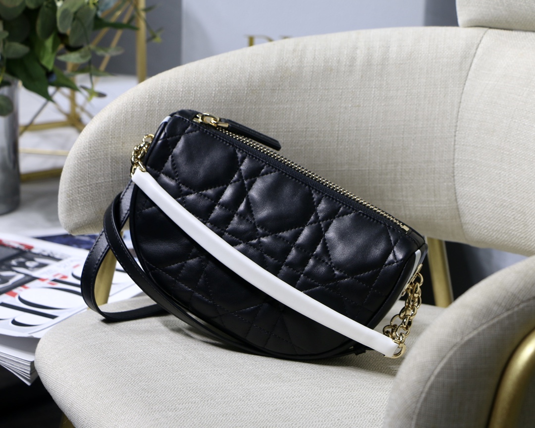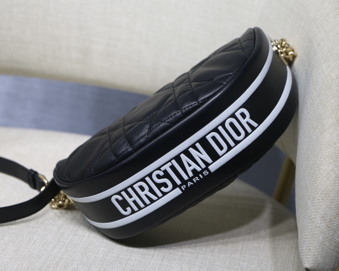 Dior Vibe Black 20cm Dimensions: 20 x 15 x 7 cm The stylish silhouette highlights the modern charm of the shoulder bag. Expertly crafted in black lambskin with cannage topstitching, suede lining for a softer feel, ‘CHRISTIAN DIOR PARIS’ signature at the bottom, and an interior flap pocket. Small in size, with handles and adjustable shoulder strap with military-style buckle, it can be carried by hand, over the shoulder or cross-body for everyday or sporty looks.