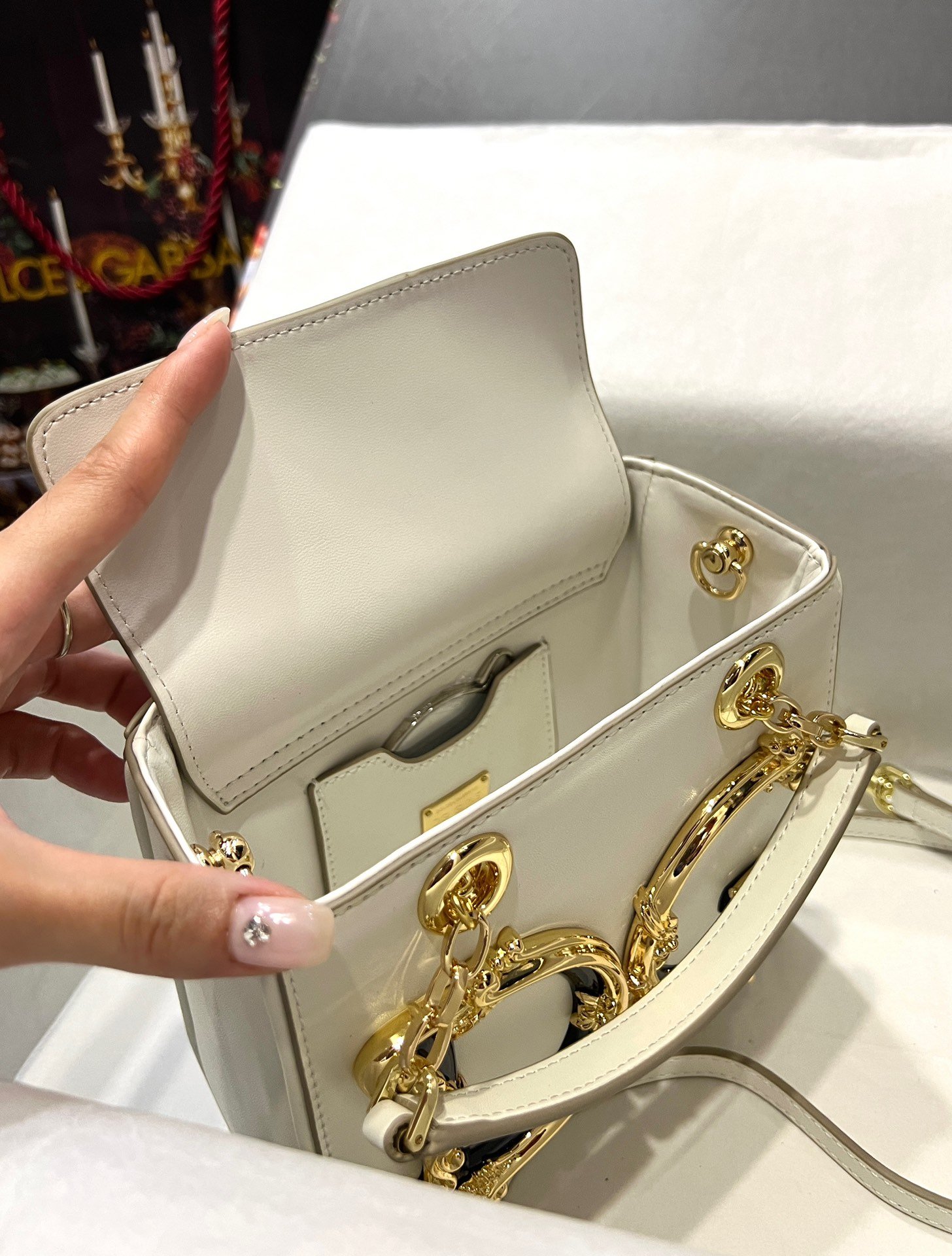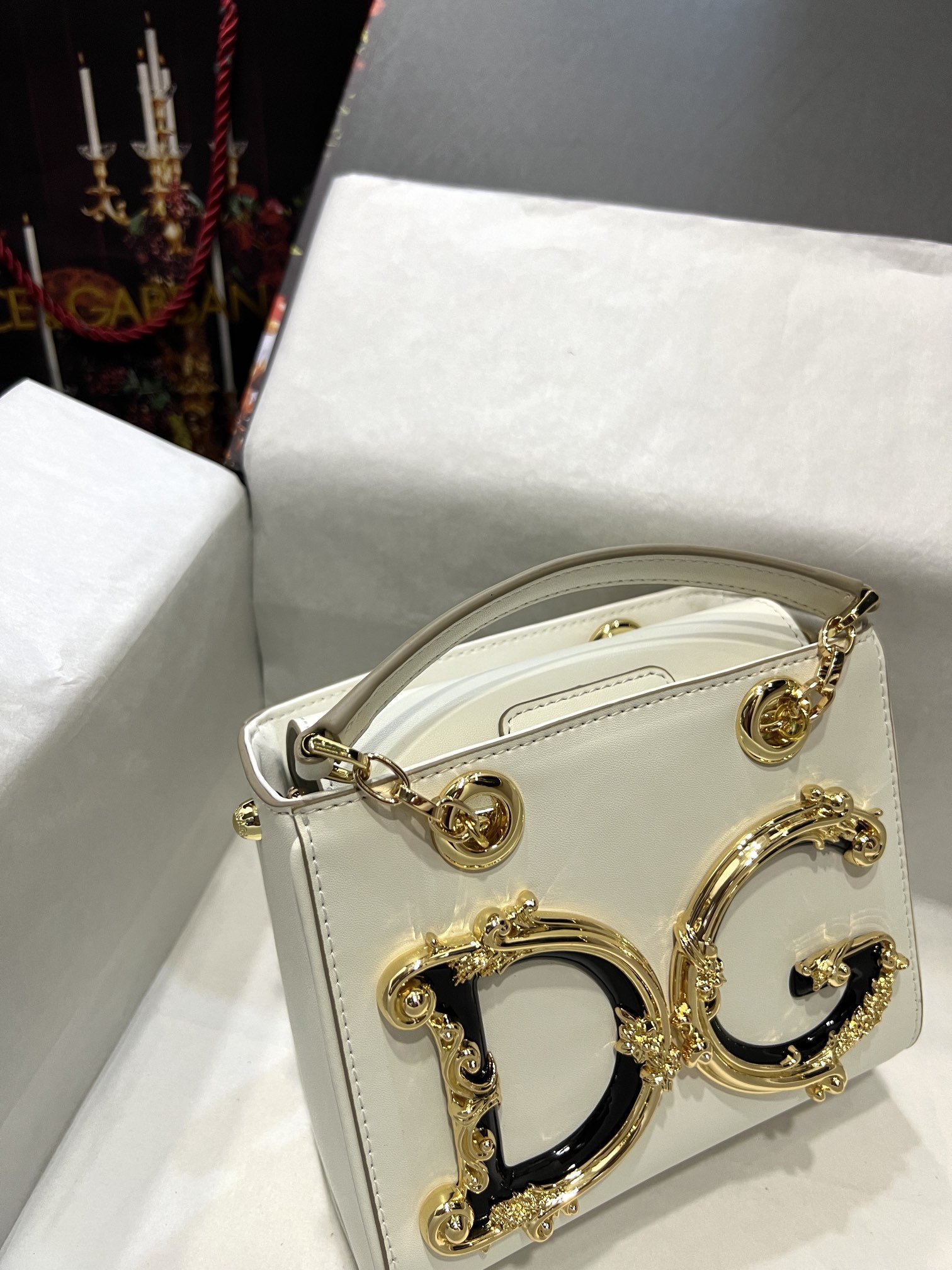 Dolce & Gabbana Hand crossbody bag. Made of imported raw materials, the front is embellished with a real gold DG logo on the resin bottom. The front flap adopts a hidden magnetic buckle to open and close, and the ruthenium-plated chain is fixed. Internal metal logo plate size 20*8.5*15cm