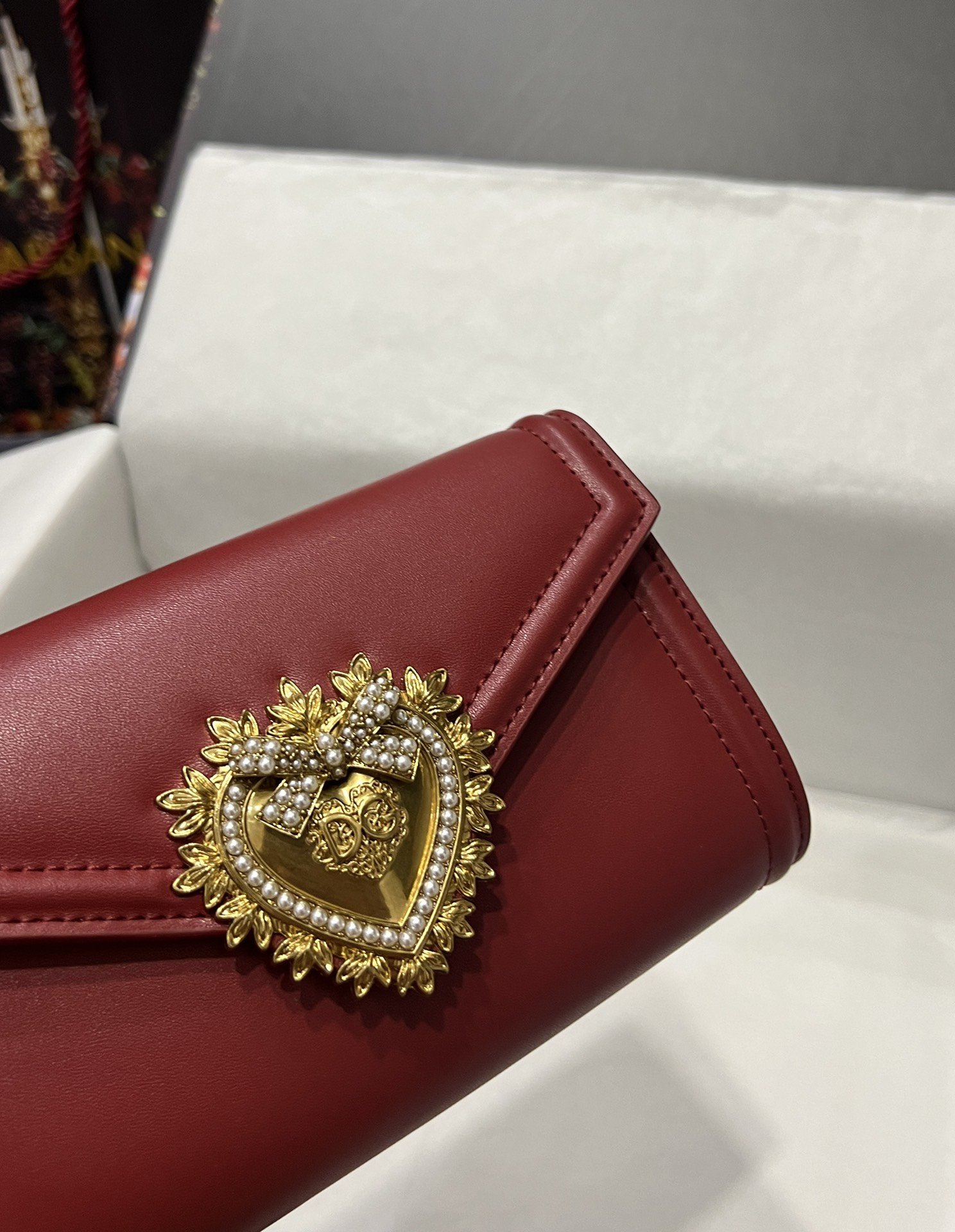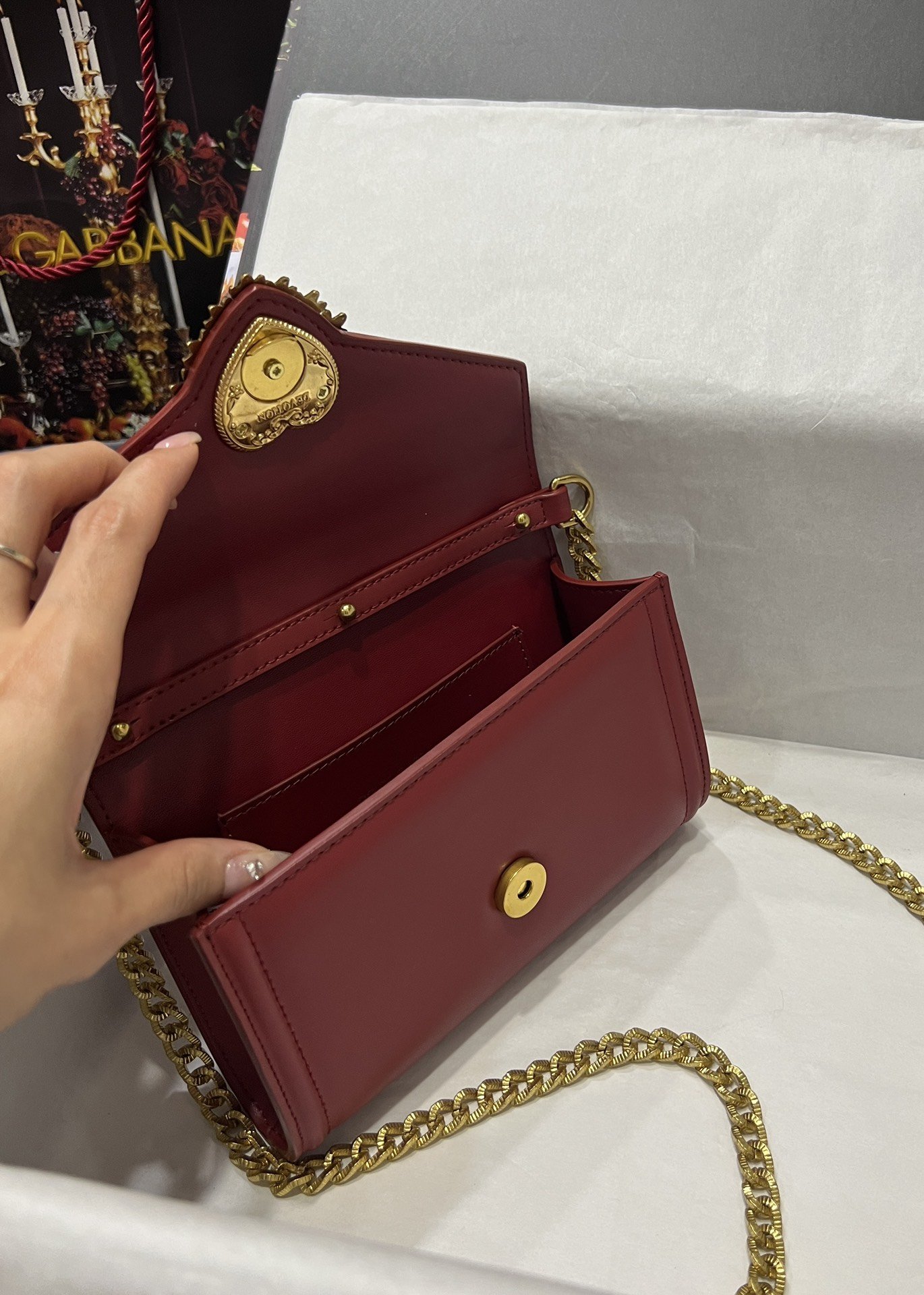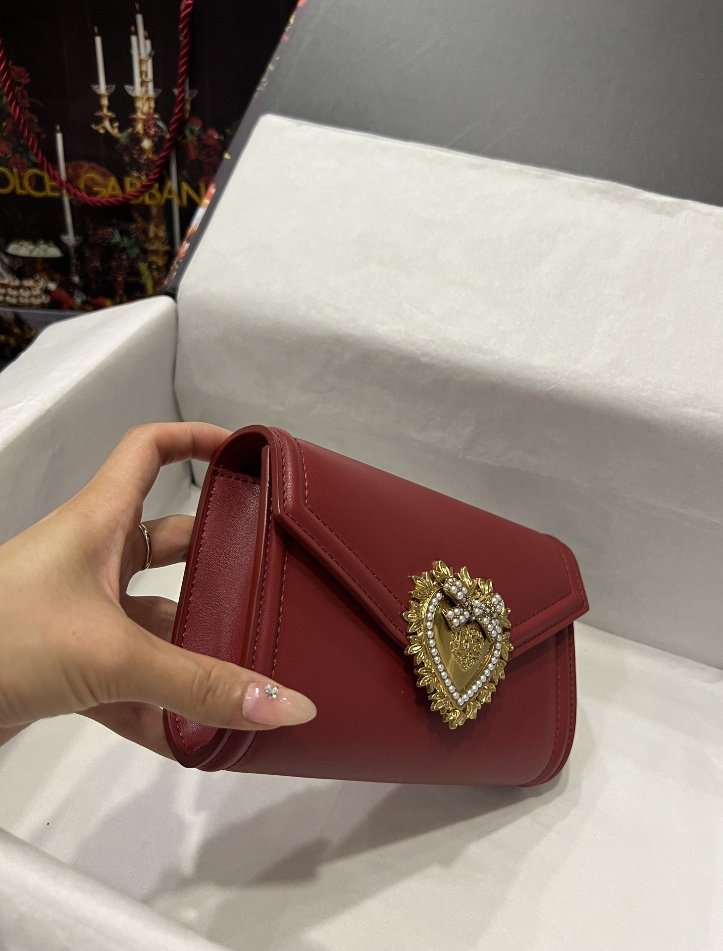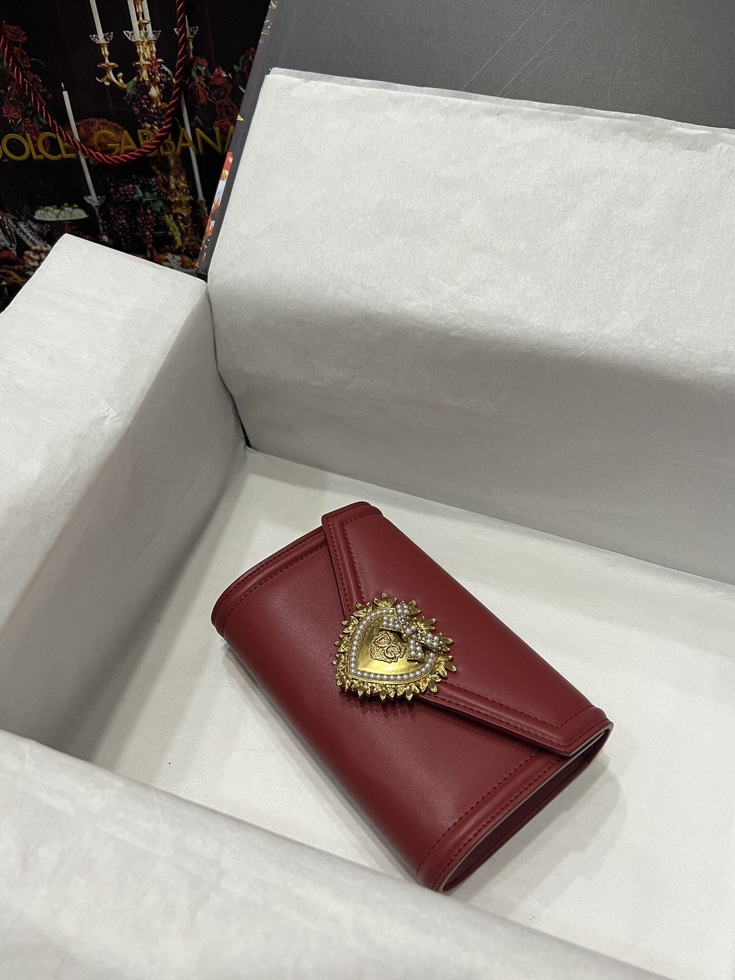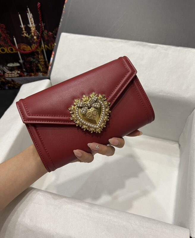 Top-level original Dolce&Gabbana Double-use crossbody clutch. Simple and fashionable, using imported cowhide raw material butterfly gold-plated DG logo inlaid with pearls. The front flap adopts a hidden magnetic buckle closure, and the internal metal logo plate size11.5 *18.5*3.5cm with packing box.
