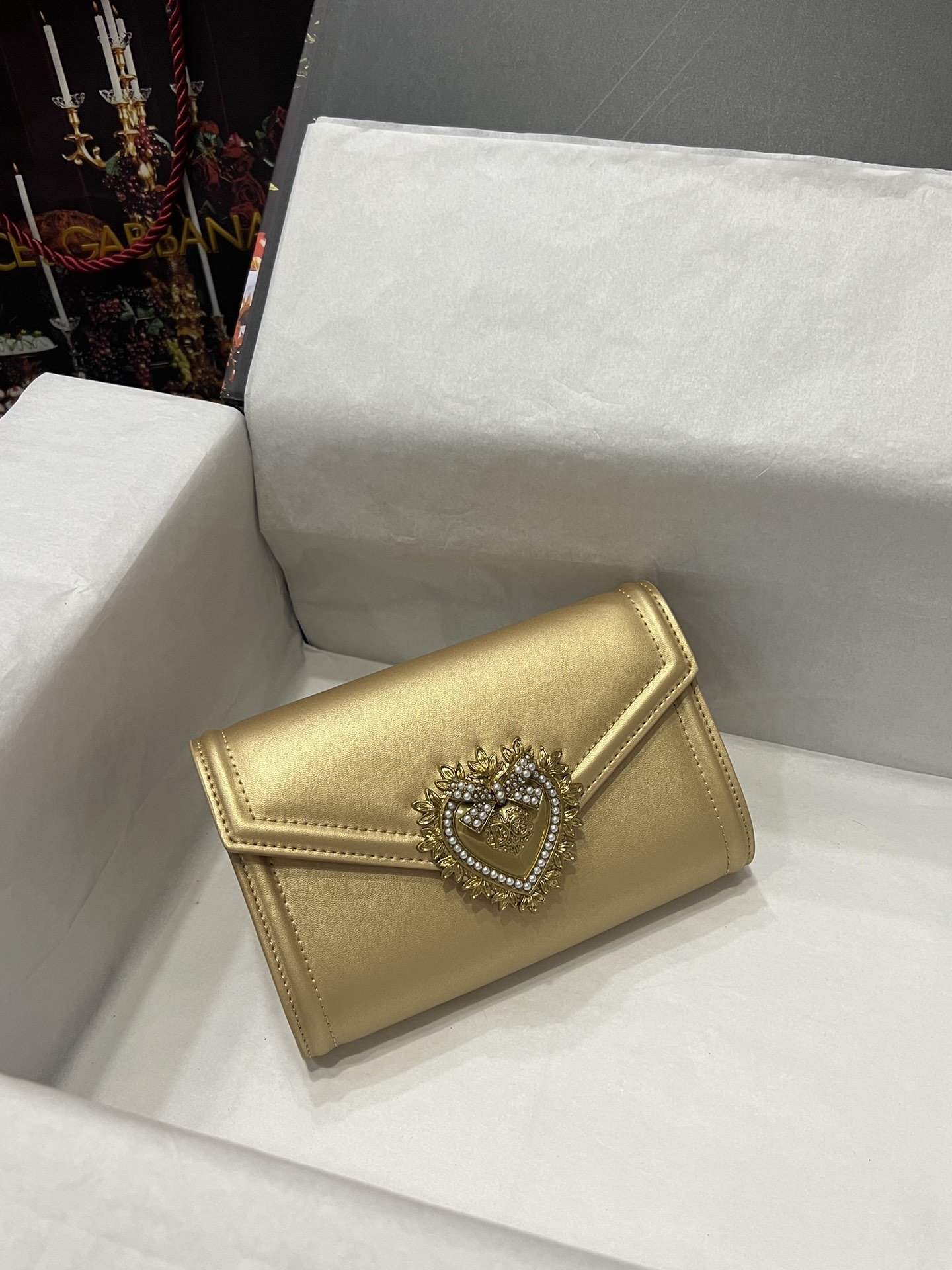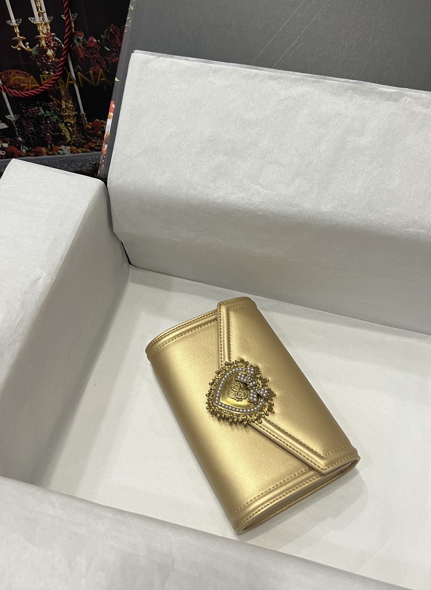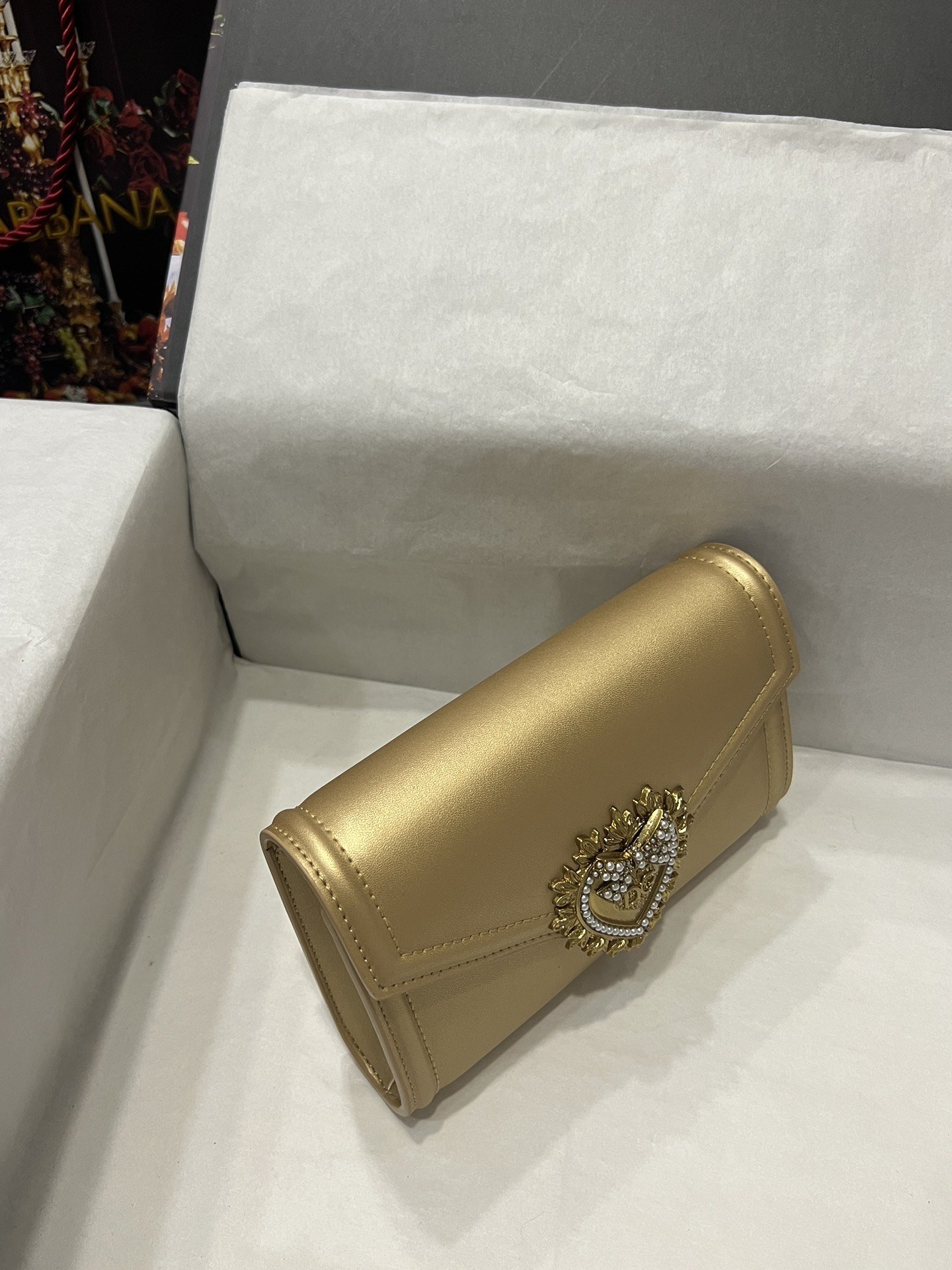Top-level original Dolce&Gabbana Double-use crossbody clutch. Simple and fashionable, using imported cowhide raw material butterfly gold-plated DG logo inlaid with pearls. The front flap adopts a hidden magnetic buckle closure, and the internal metal logo plate size11.5 *18.5*3.5cm with packing box.