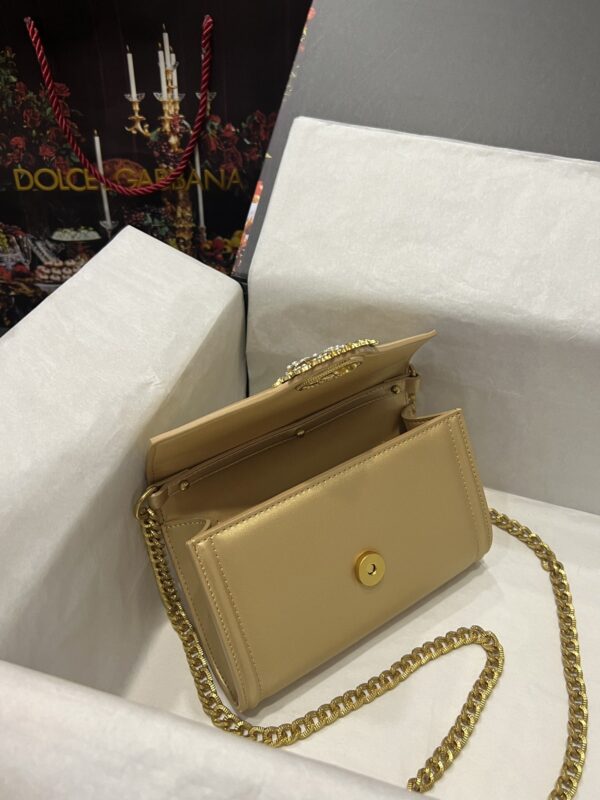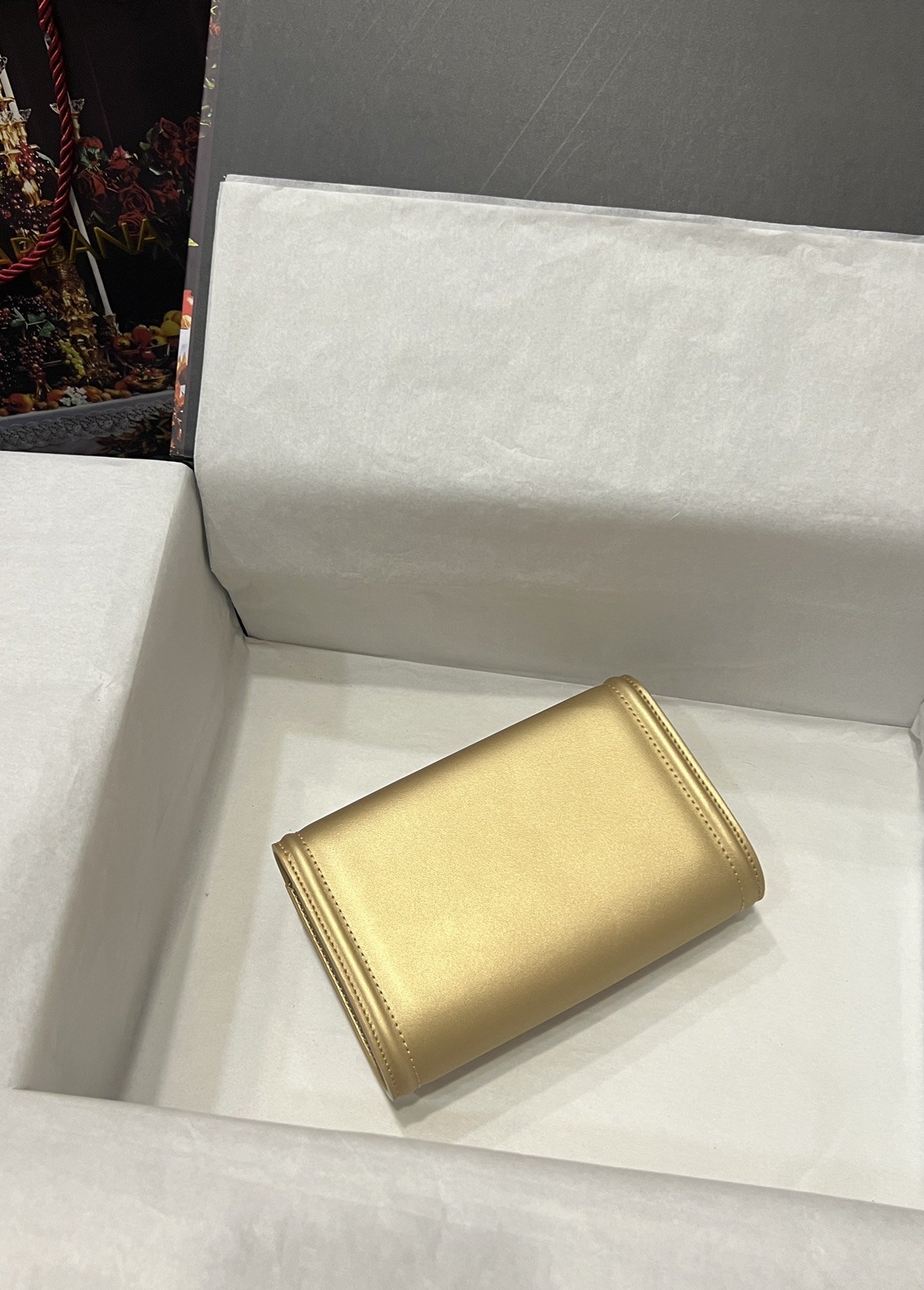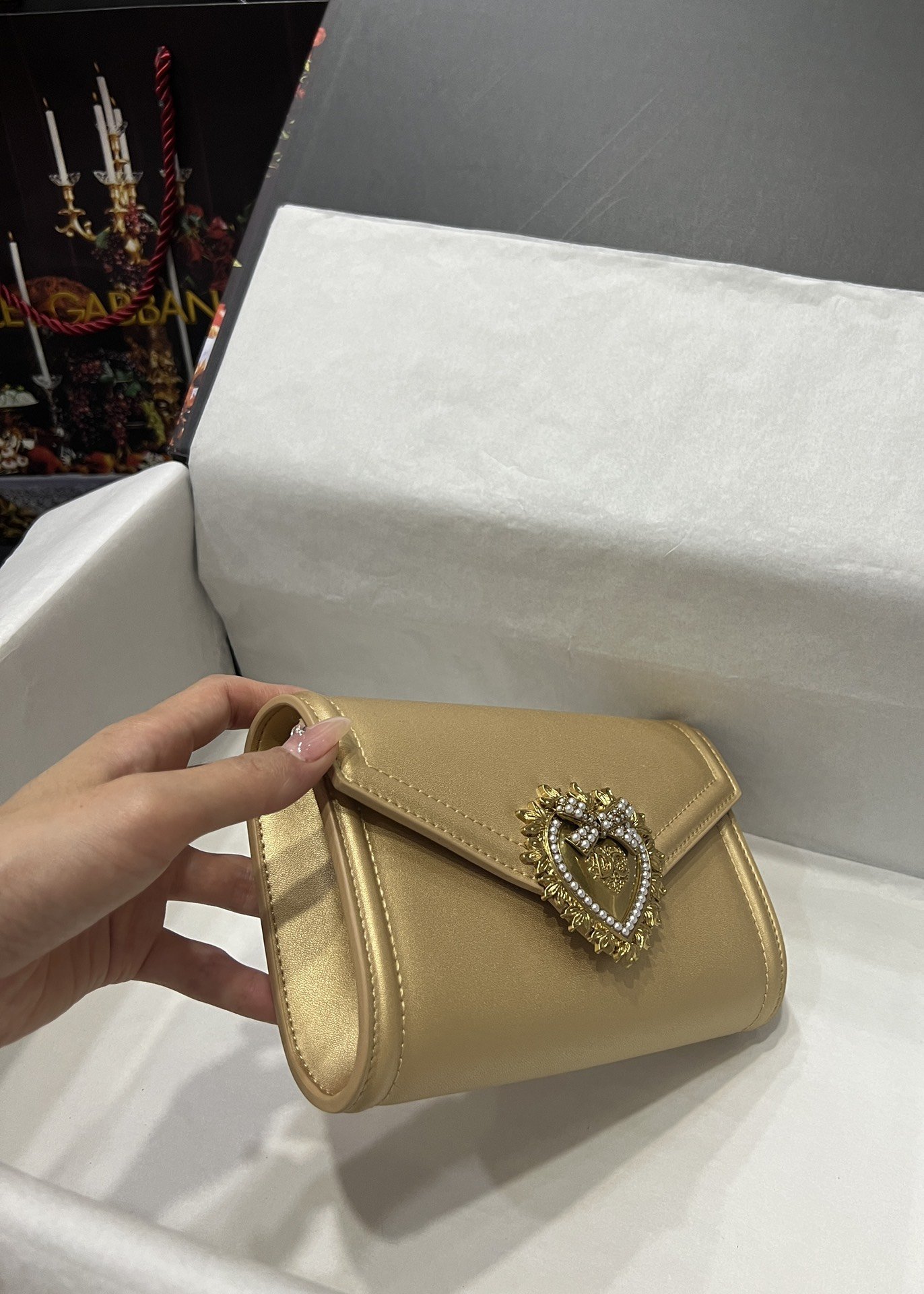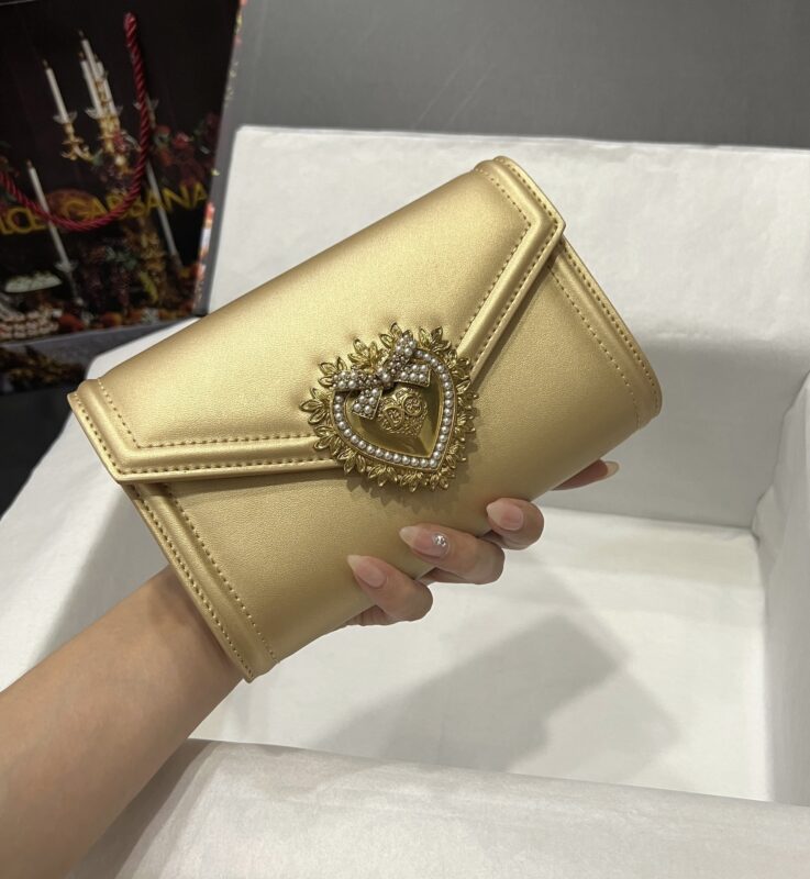 Top-level original Dolce&Gabbana Double-use crossbody clutch. Simple and fashionable, using imported cowhide raw material butterfly gold-plated DG logo inlaid with pearls. The front flap adopts a hidden magnetic buckle closure, and the internal metal logo plate size11.5 *18.5*3.5cm with packing box.