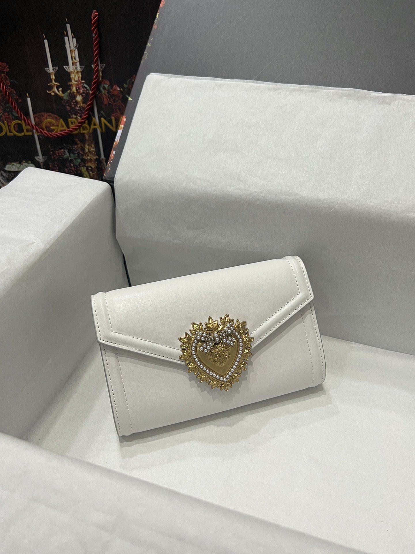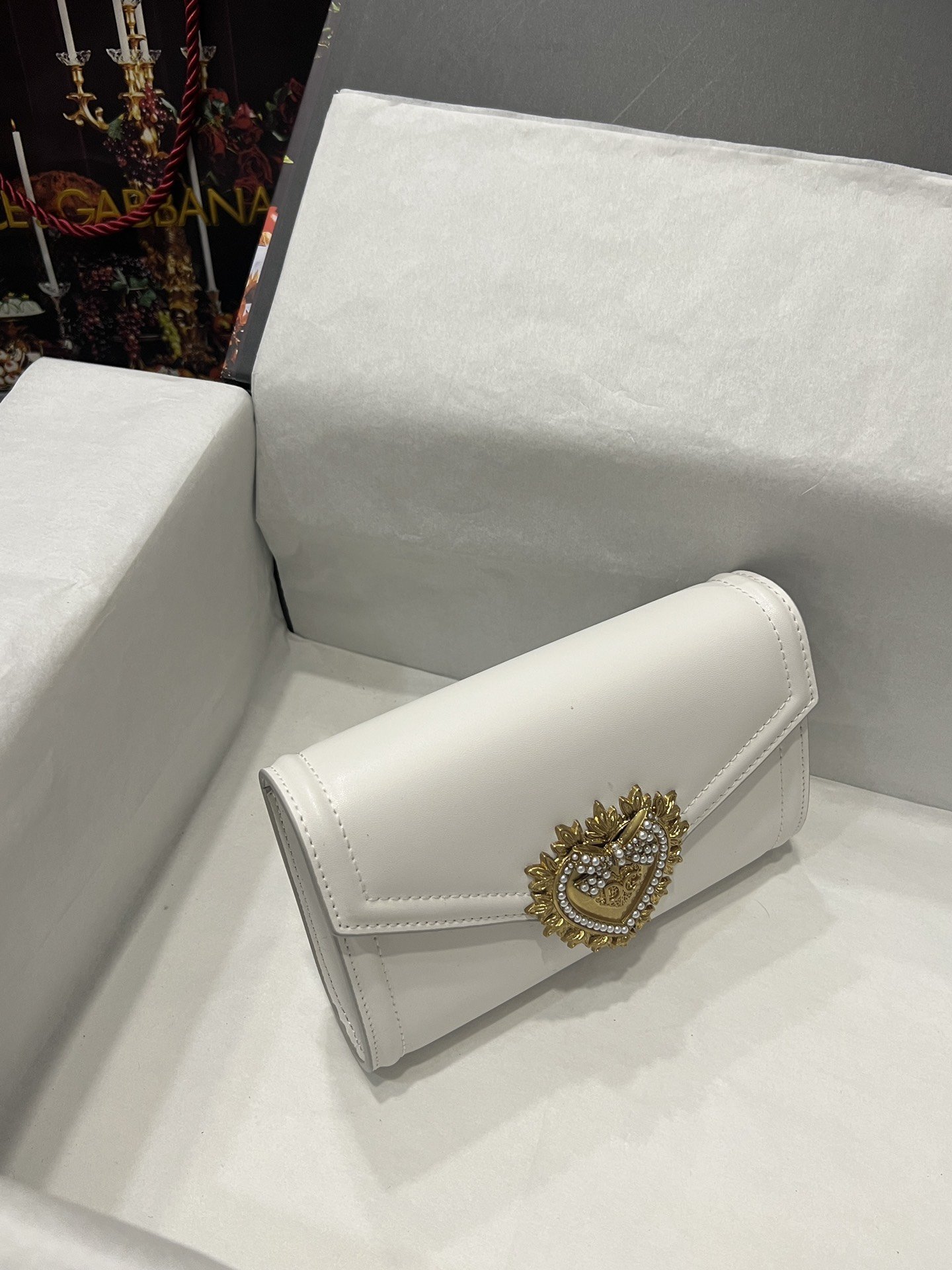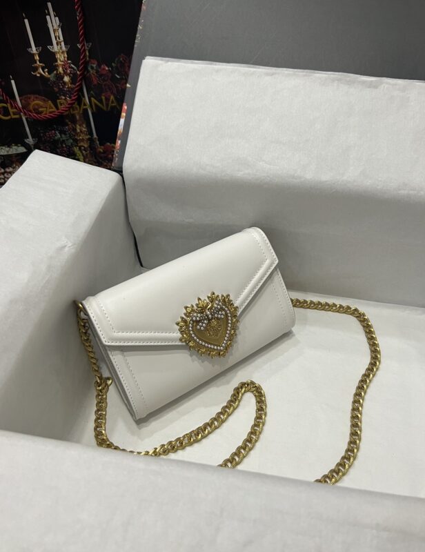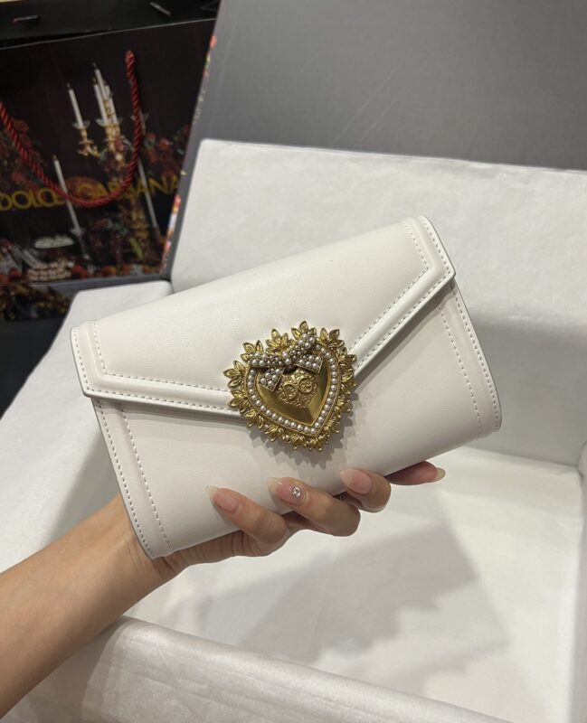 Top-level original Dolce&Gabbana Double-use crossbody clutch. Simple and fashionable, using imported cowhide raw material butterfly gold-plated DG logo inlaid with pearls. The front flap adopts a hidden magnetic buckle closure, and the internal metal logo plate size11.5 *18.5*3.5cm with packing box.