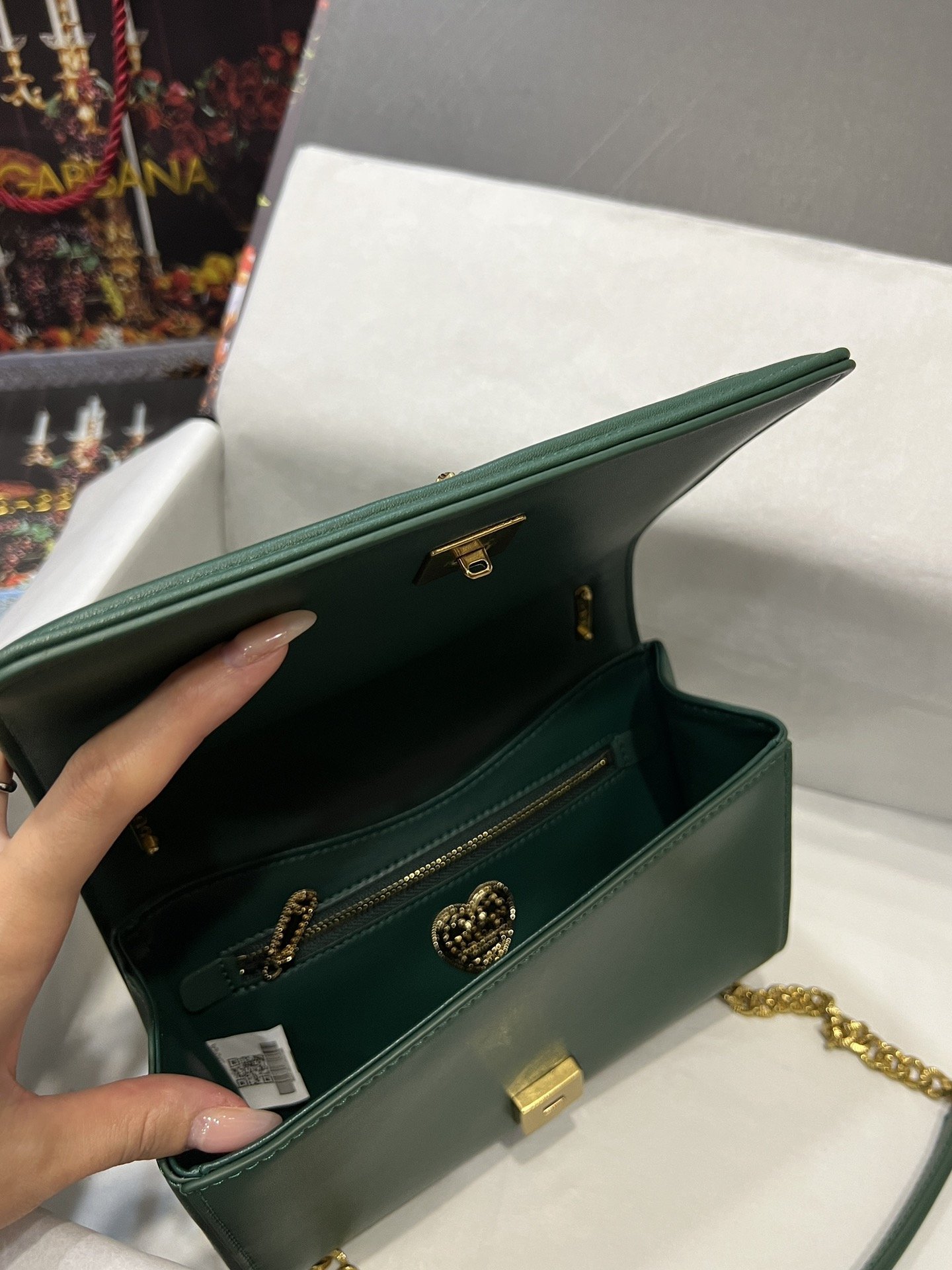 Re-engraved Dolce&Gabbana overseas purchasing special handbag 👜Simple and fashionable, the most popular crossbody bag is made of imported raw materials butterfly gold-plated DG logo inlaid with pearls 👑The front flap adopts hidden magnetic buckle closure and fixed electroplated ruthenium chain decoration Internal metal logo plaque size21 *14.5*3cm