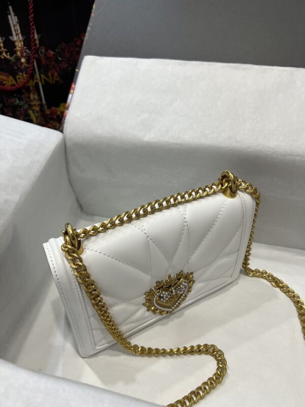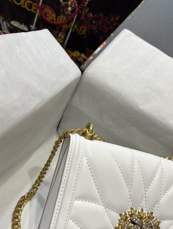 Re-engraved Dolce&Gabbana overseas purchasing special handbag 👜Simple and fashionable, the most popular crossbody bag is made of imported raw materials butterfly gold-plated DG logo inlaid with pearls 👑The front flap adopts hidden magnetic buckle closure and fixed electroplated ruthenium chain decoration Internal metal logo plaque size21 *14.5*3cm