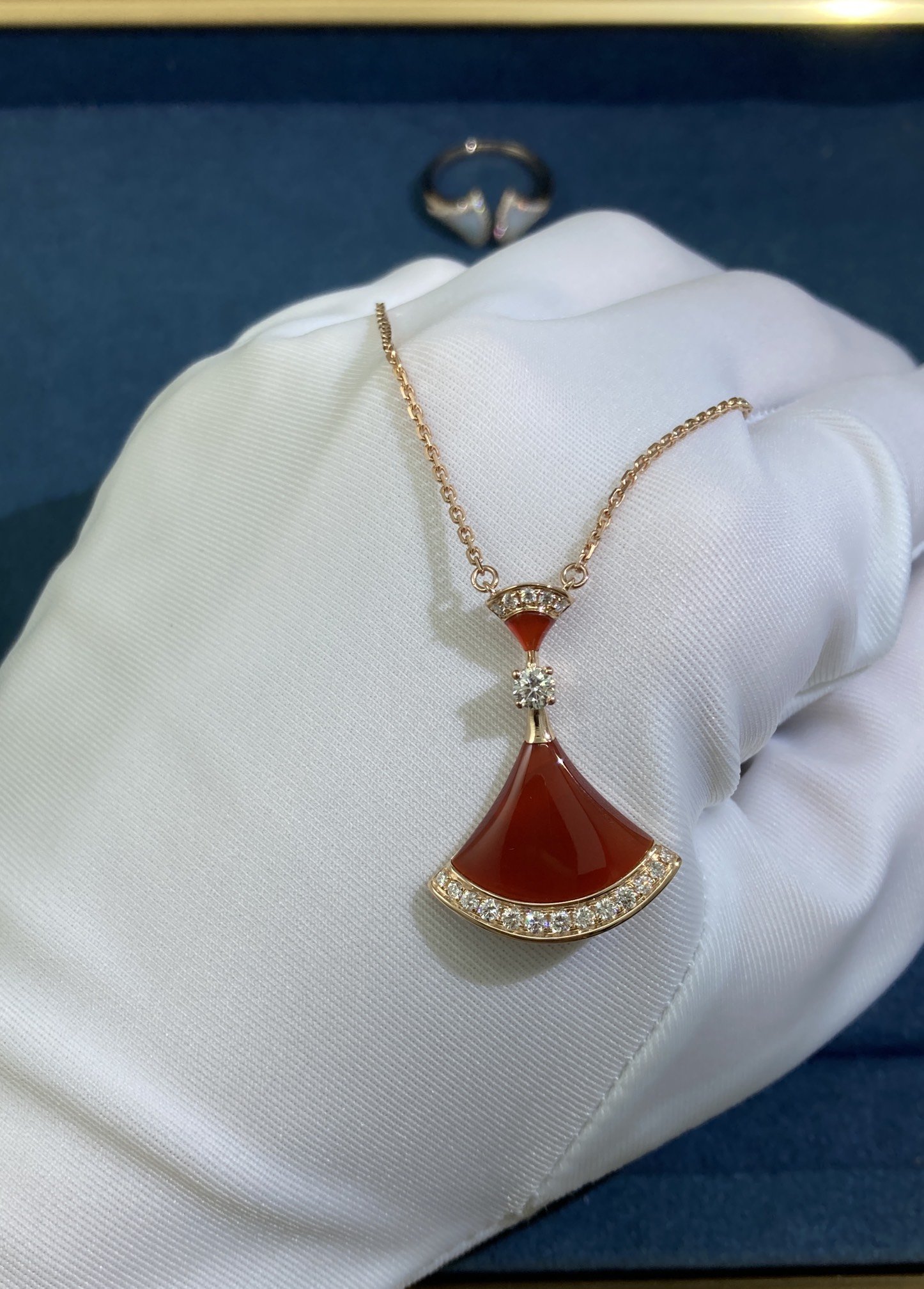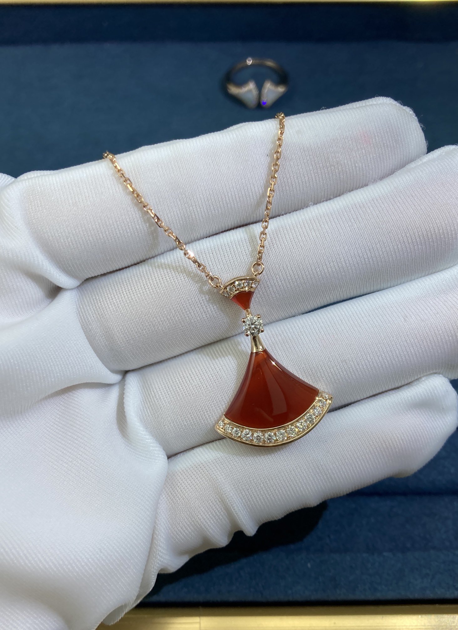 Double Fan Carnelian Skirt Necklace, Rose Gold