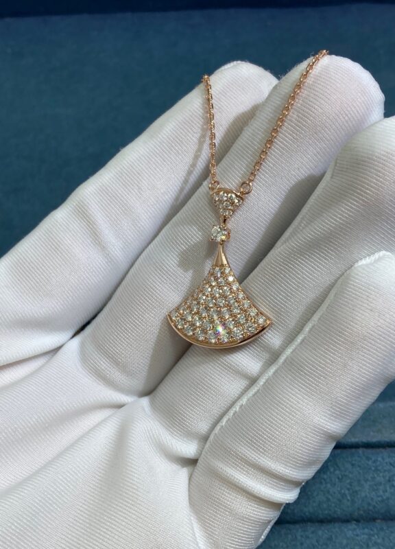 Bvlgary Double Fan Full Diamond Skirt Necklace, Rose Gold