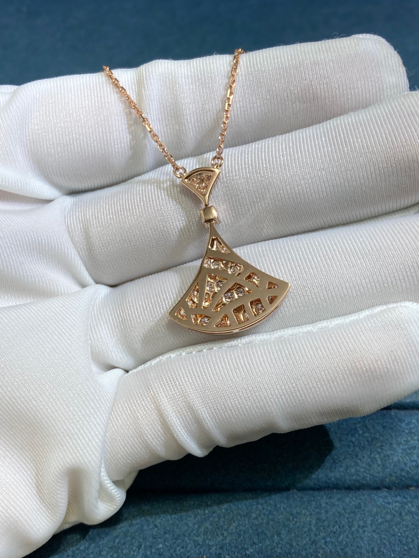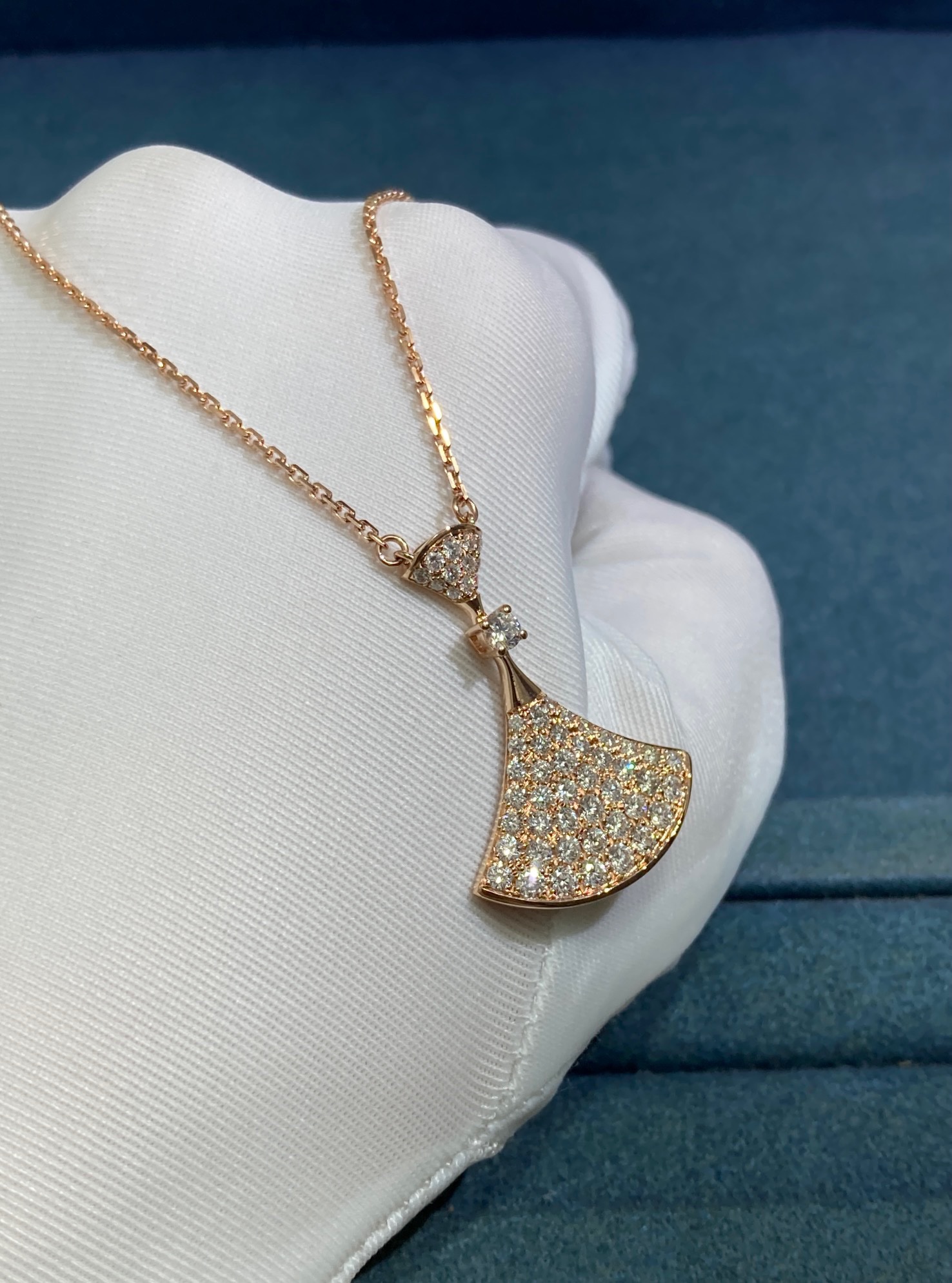 Bvlgary Double Fan Full Diamond Skirt Necklace, Rose Gold