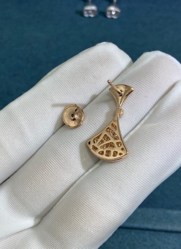 Bvlgari Double Fan Skirt Stud Earrings with Diamonds, Rose Gold